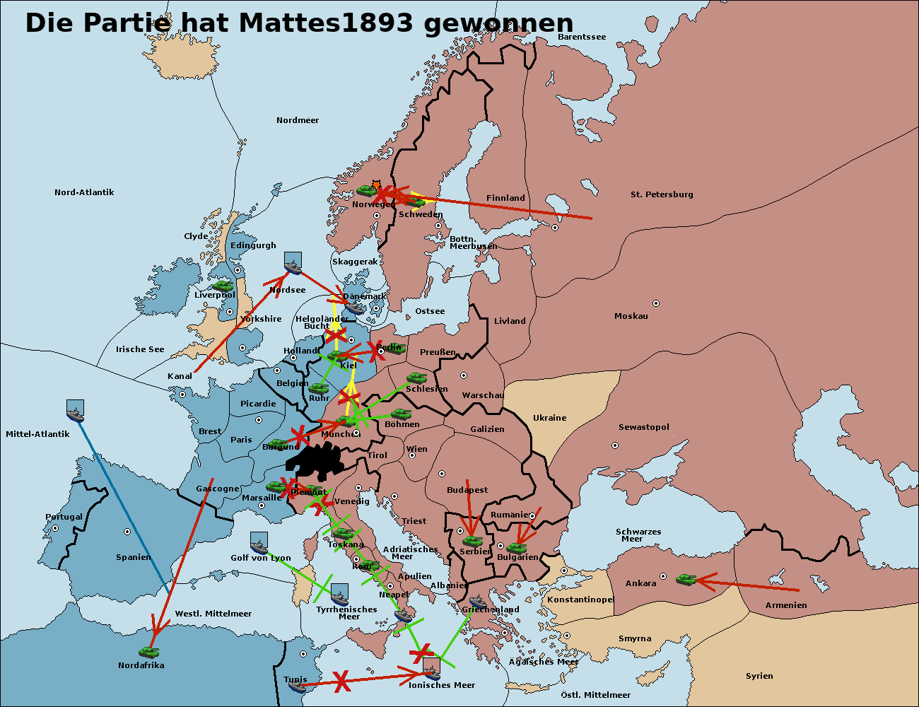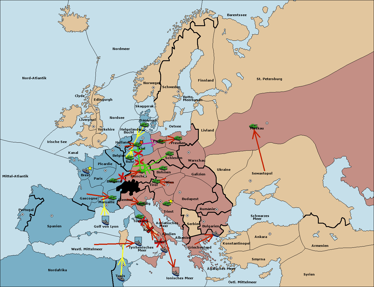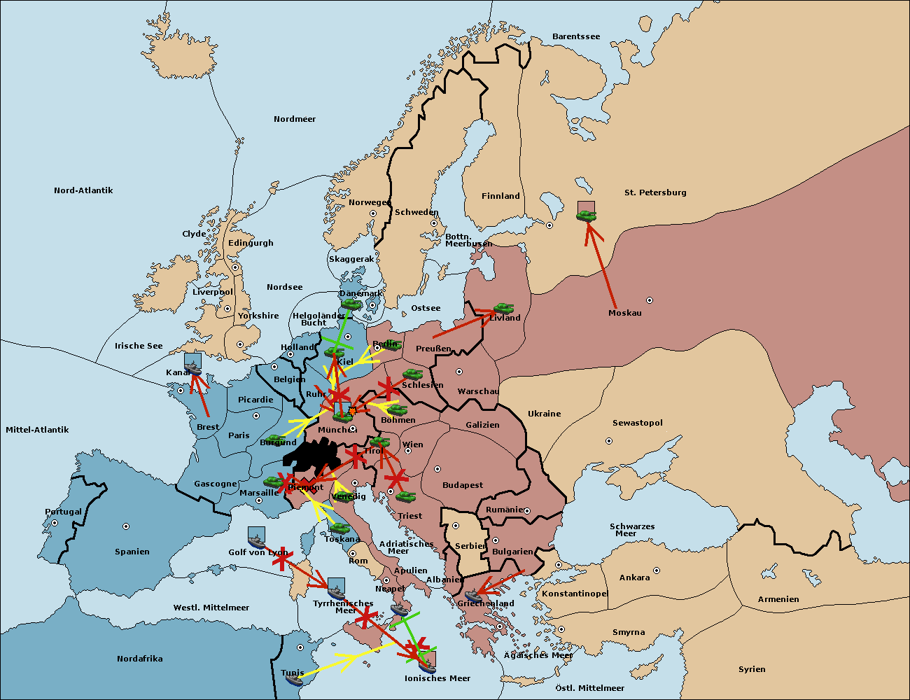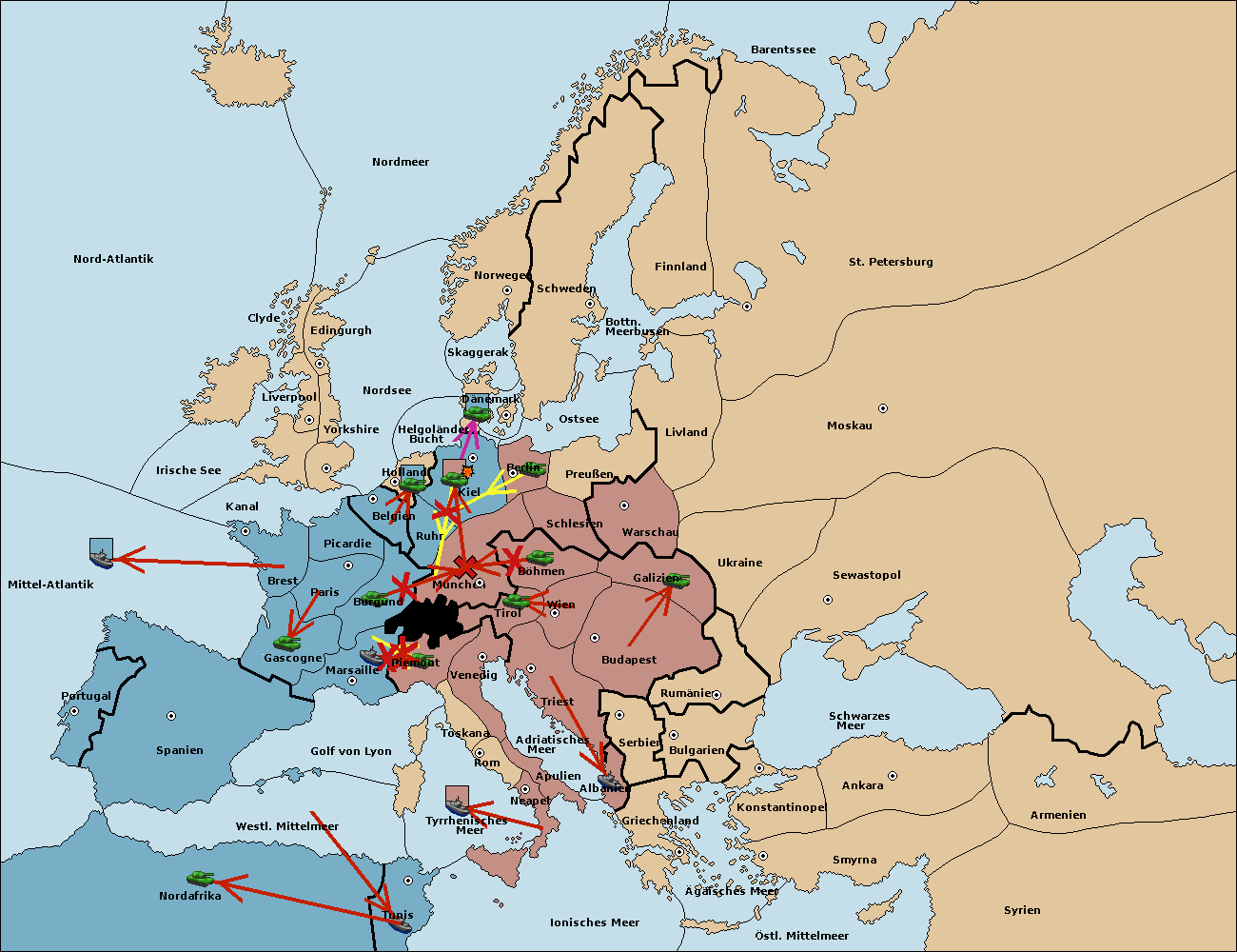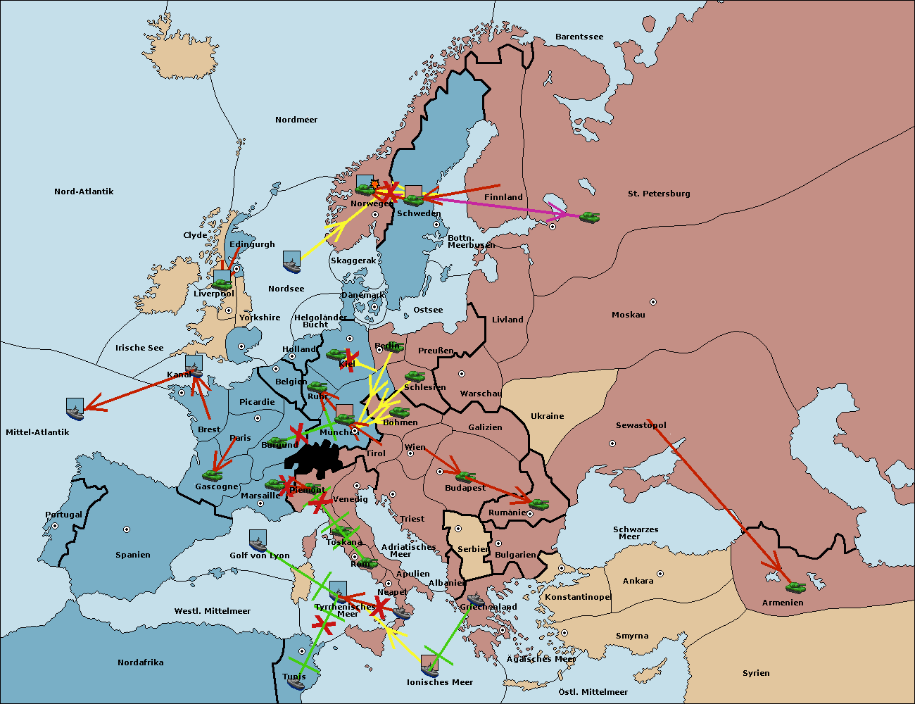 • Die Armee in Kiel support move nach München von Burgund. (gescheitert) (verdrängt)