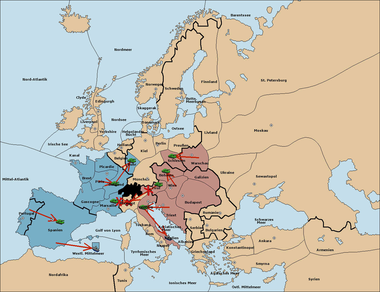 • Die Flotte in Spanien (Südküste) move nach westl. Mittelmeer.
