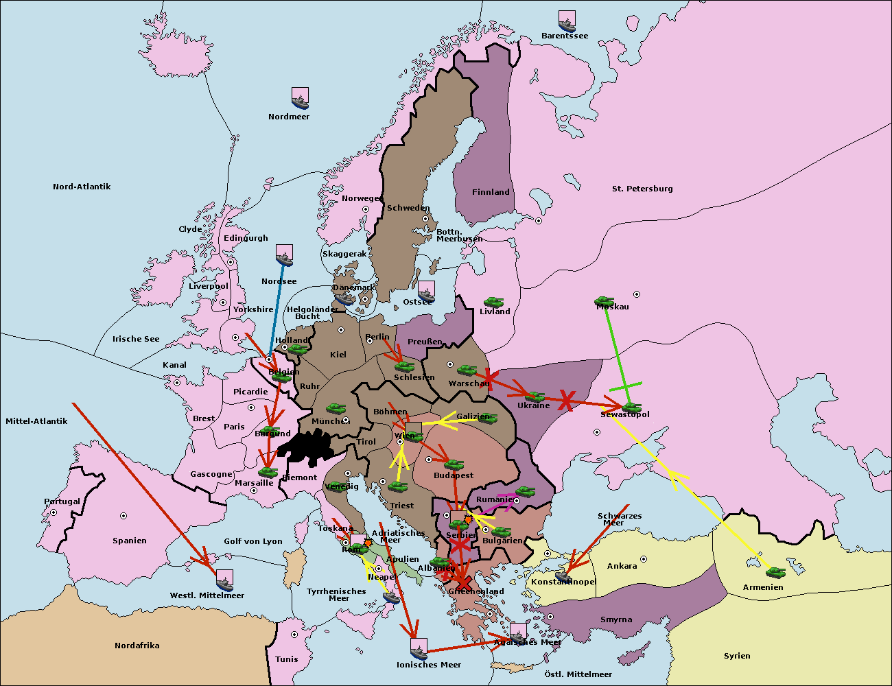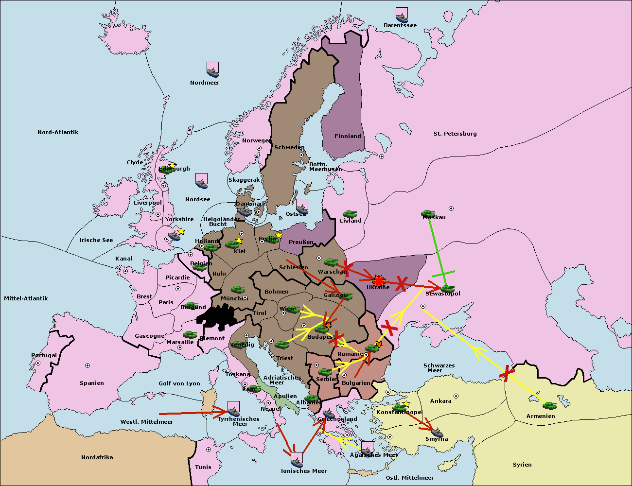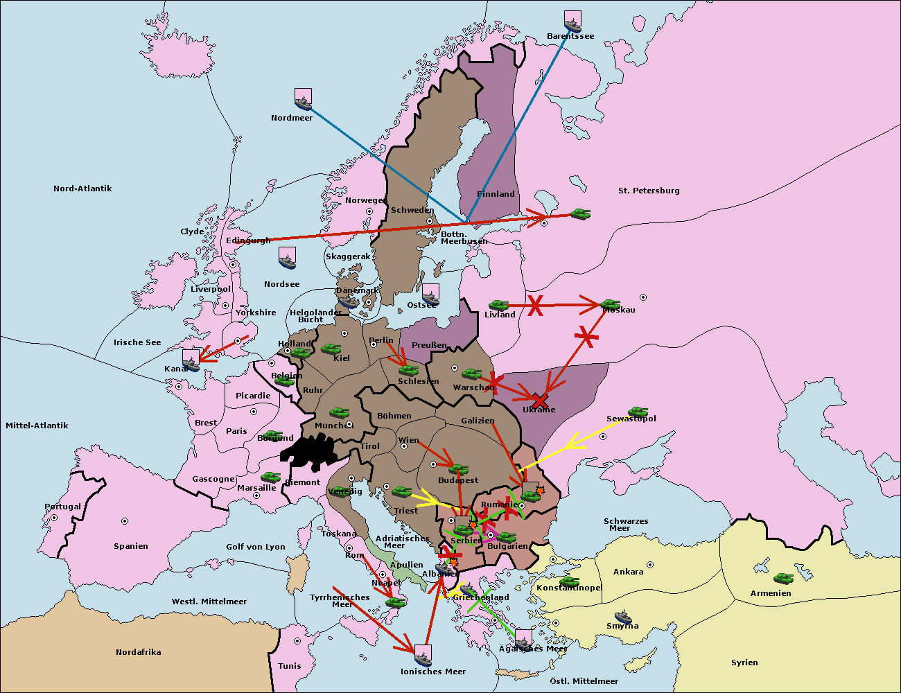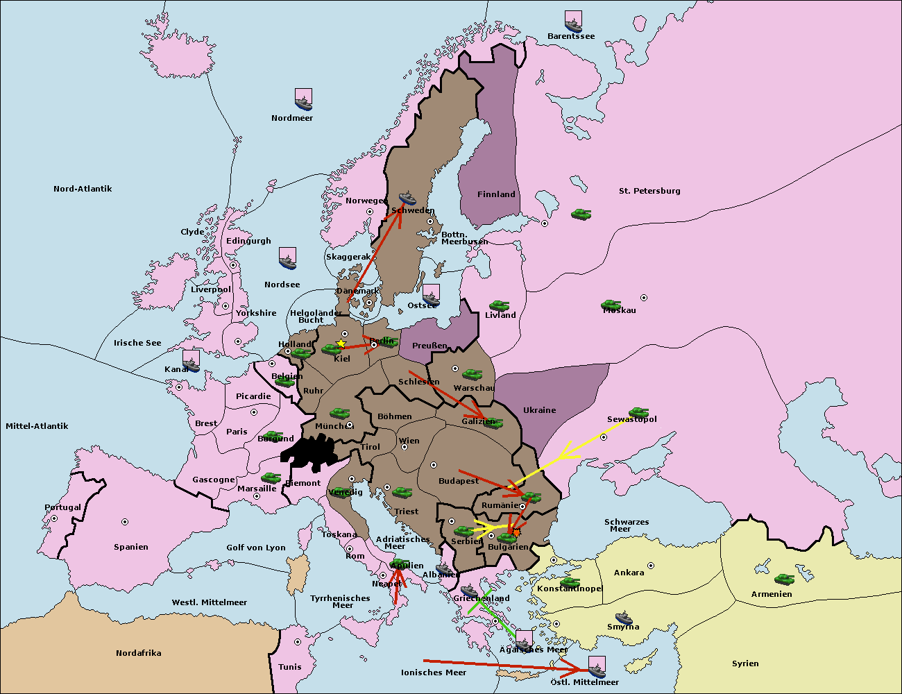 • Die Armee in Bulgarien wird zerstörtFlotte in Bulgarien gebaut.