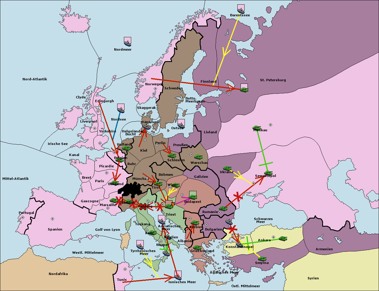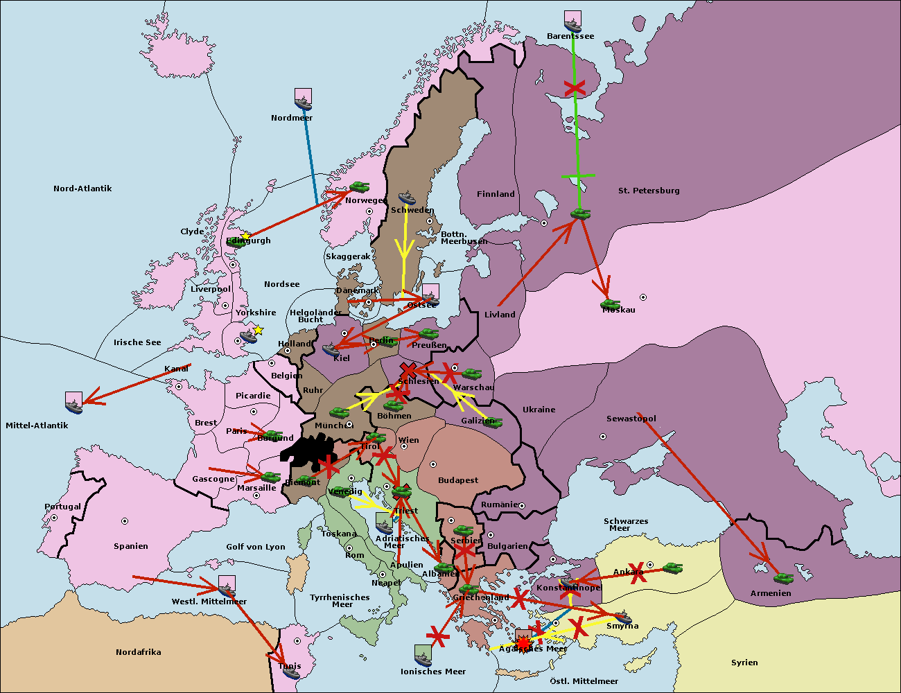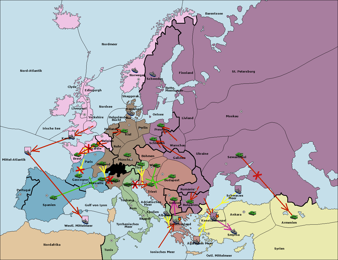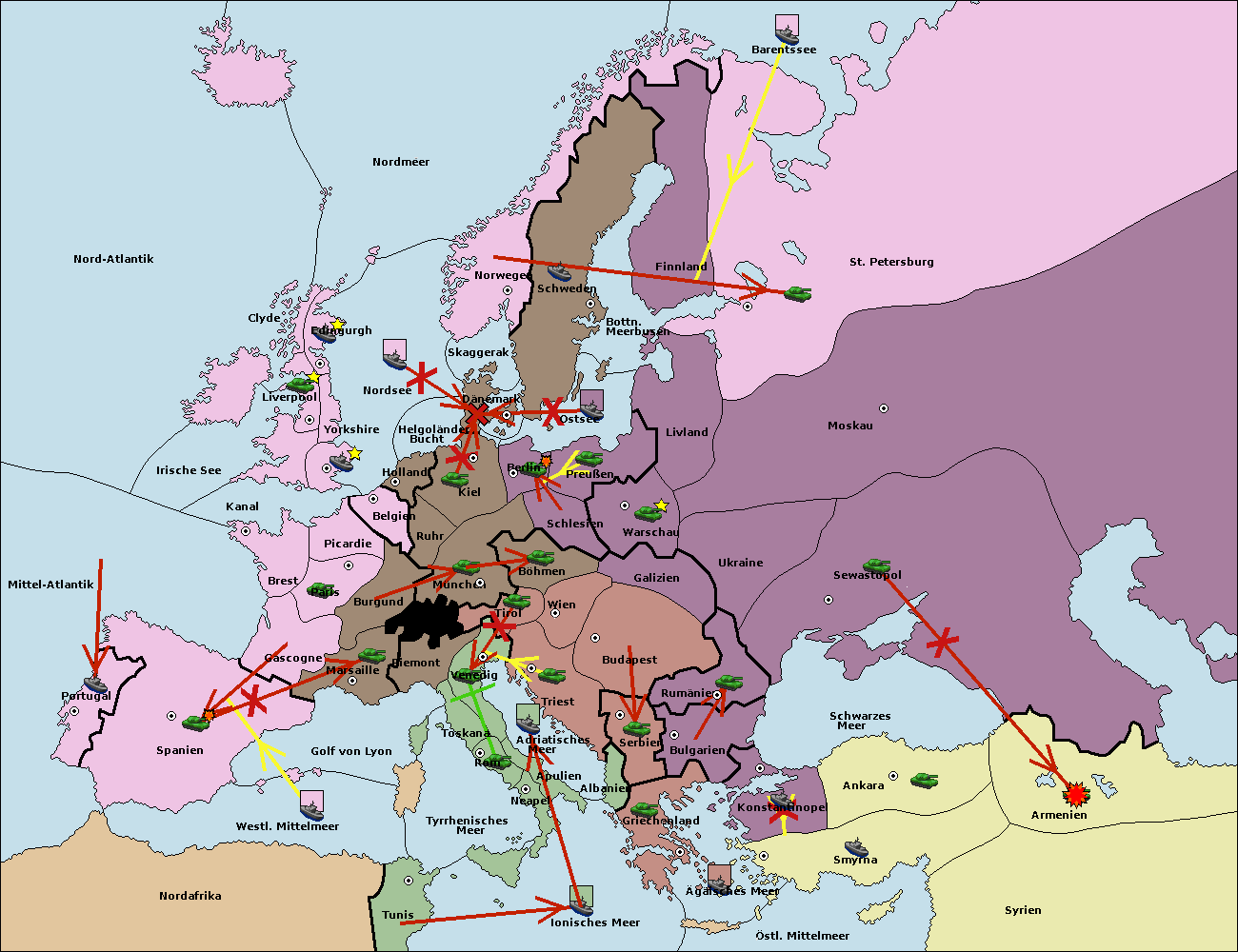 • Die Armee in Bulgarien wird zerstörtFlotte in Bulgarien gebaut.