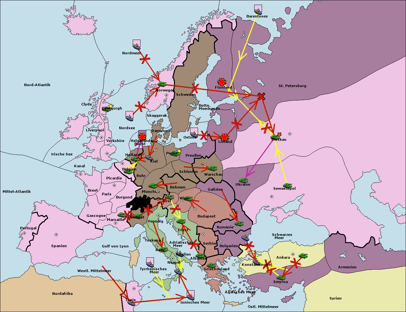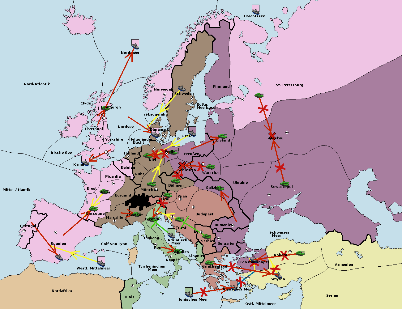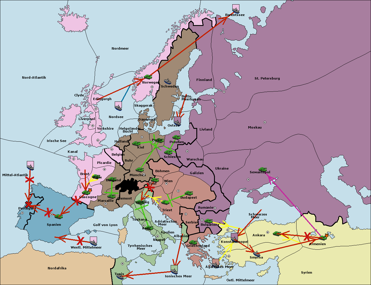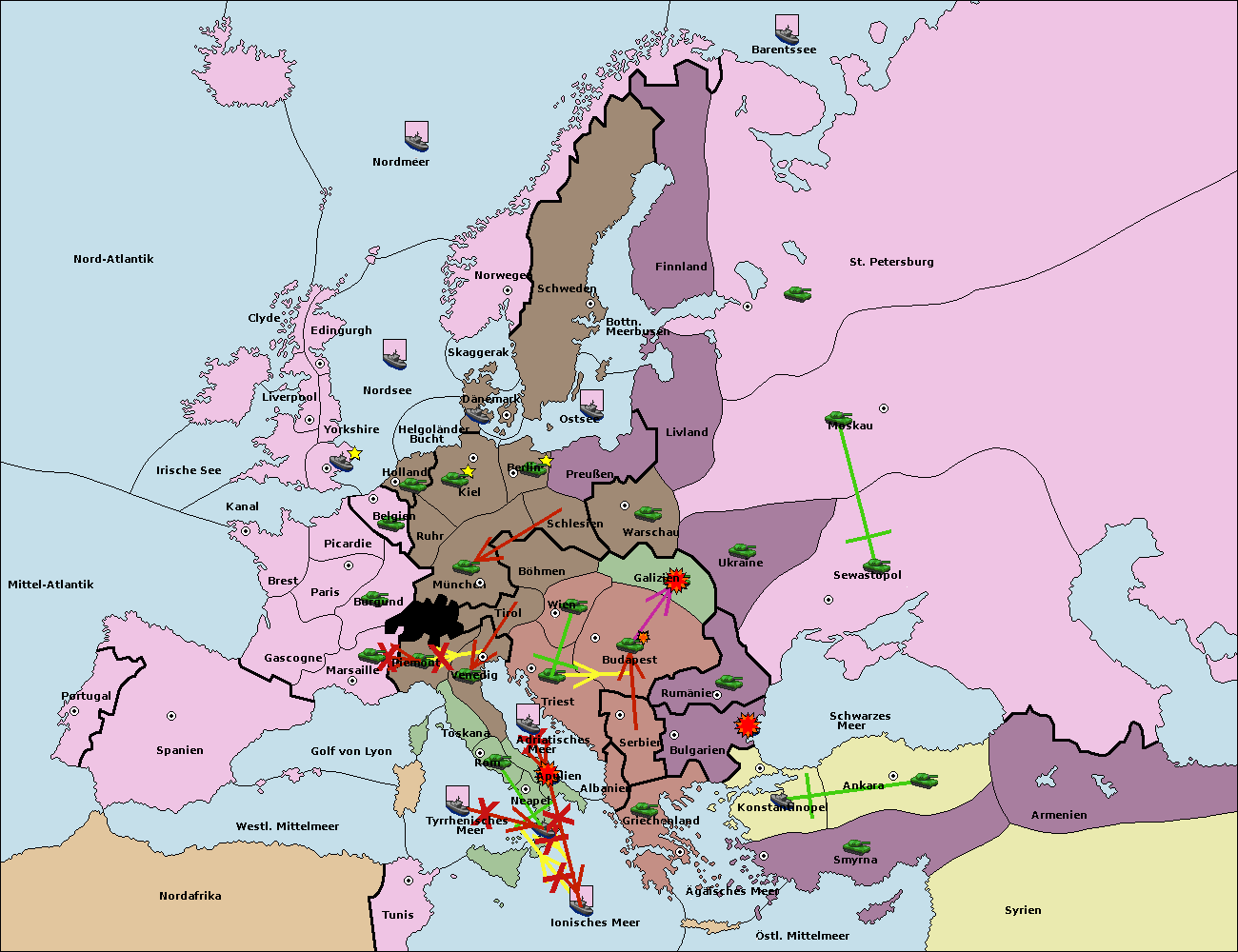 • Die Armee in Bulgarien wird zerstörtFlotte in Bulgarien gebaut.