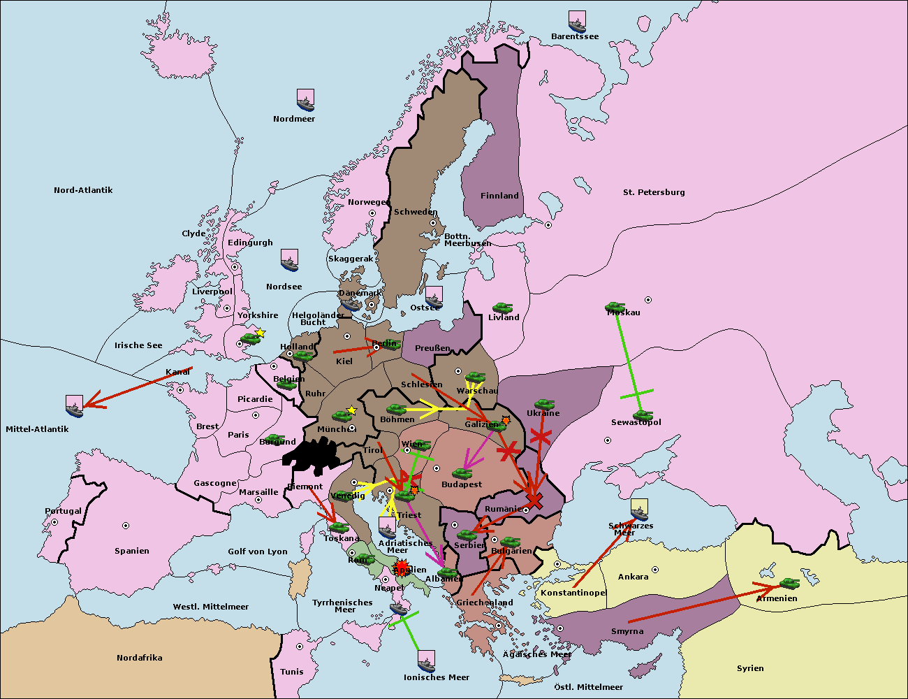 • Die Armee in Triest move nach Serbien. (gescheitert) (verdrängt)
