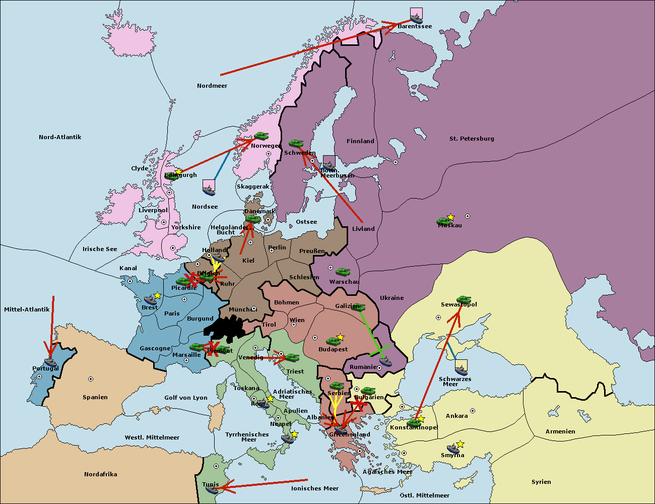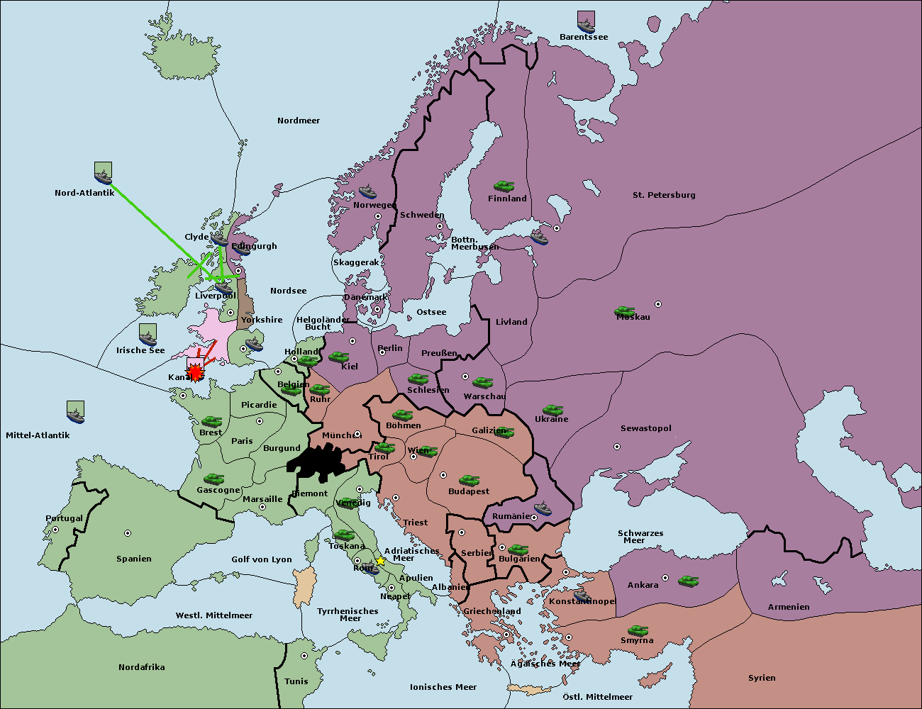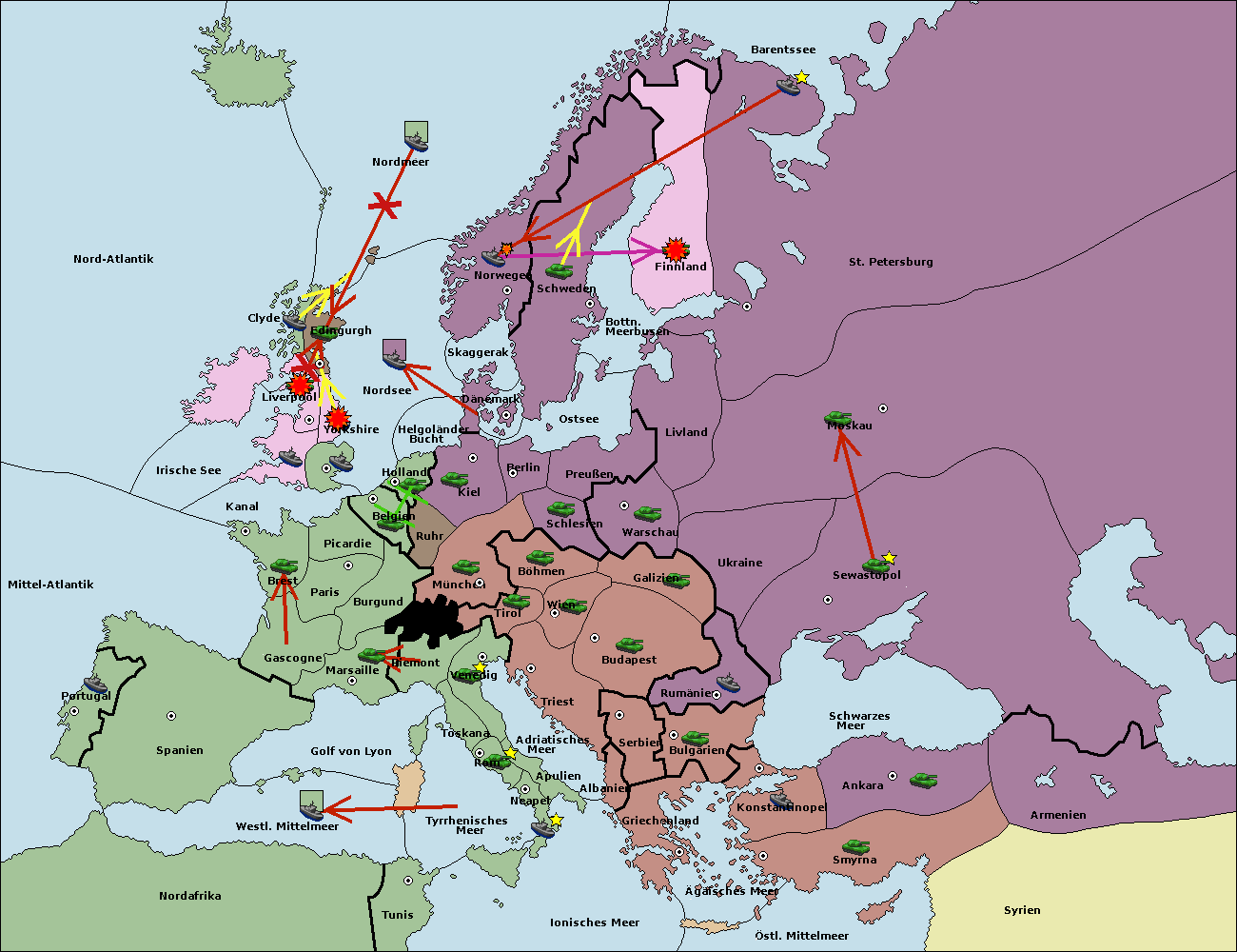 • Die Flotte in St. Petersburg (Nordküste) move nach Barentssee.