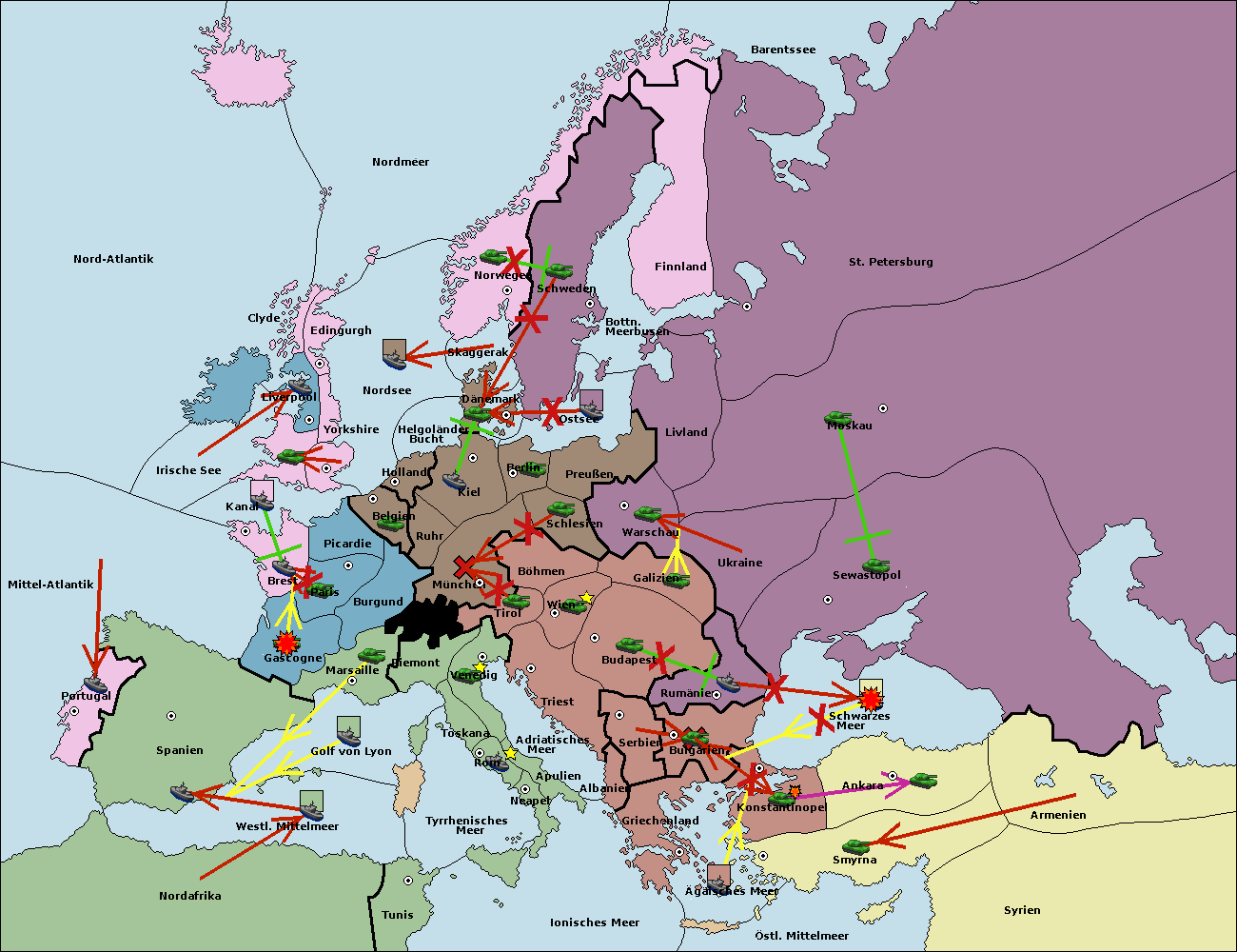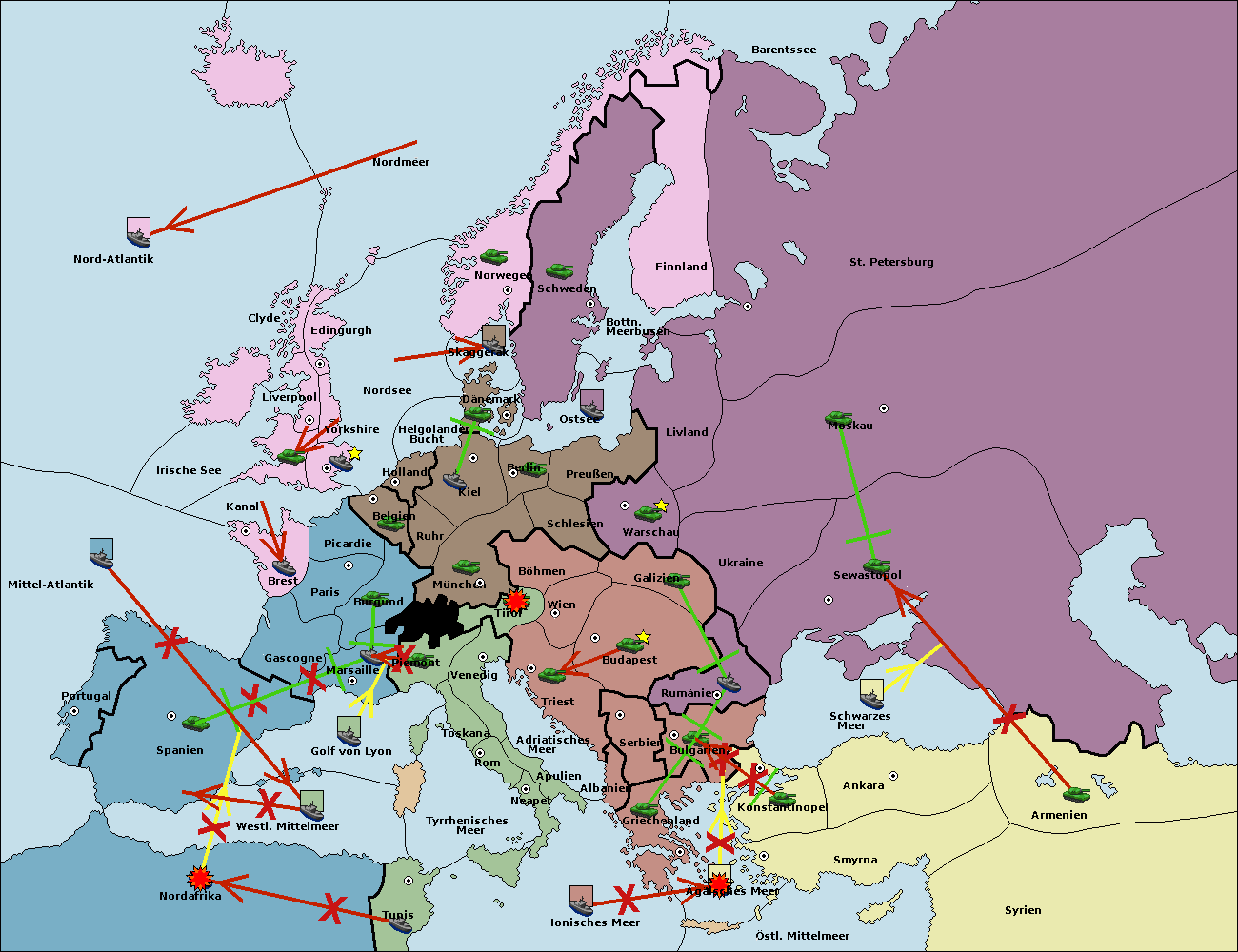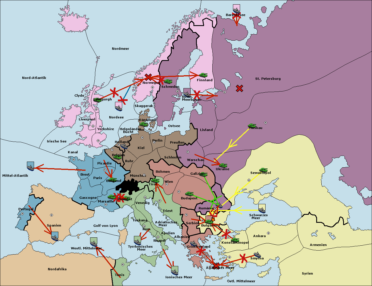 • Die Armee in Bulgarien wird zerstörtFlotte in Bulgarien gebaut.