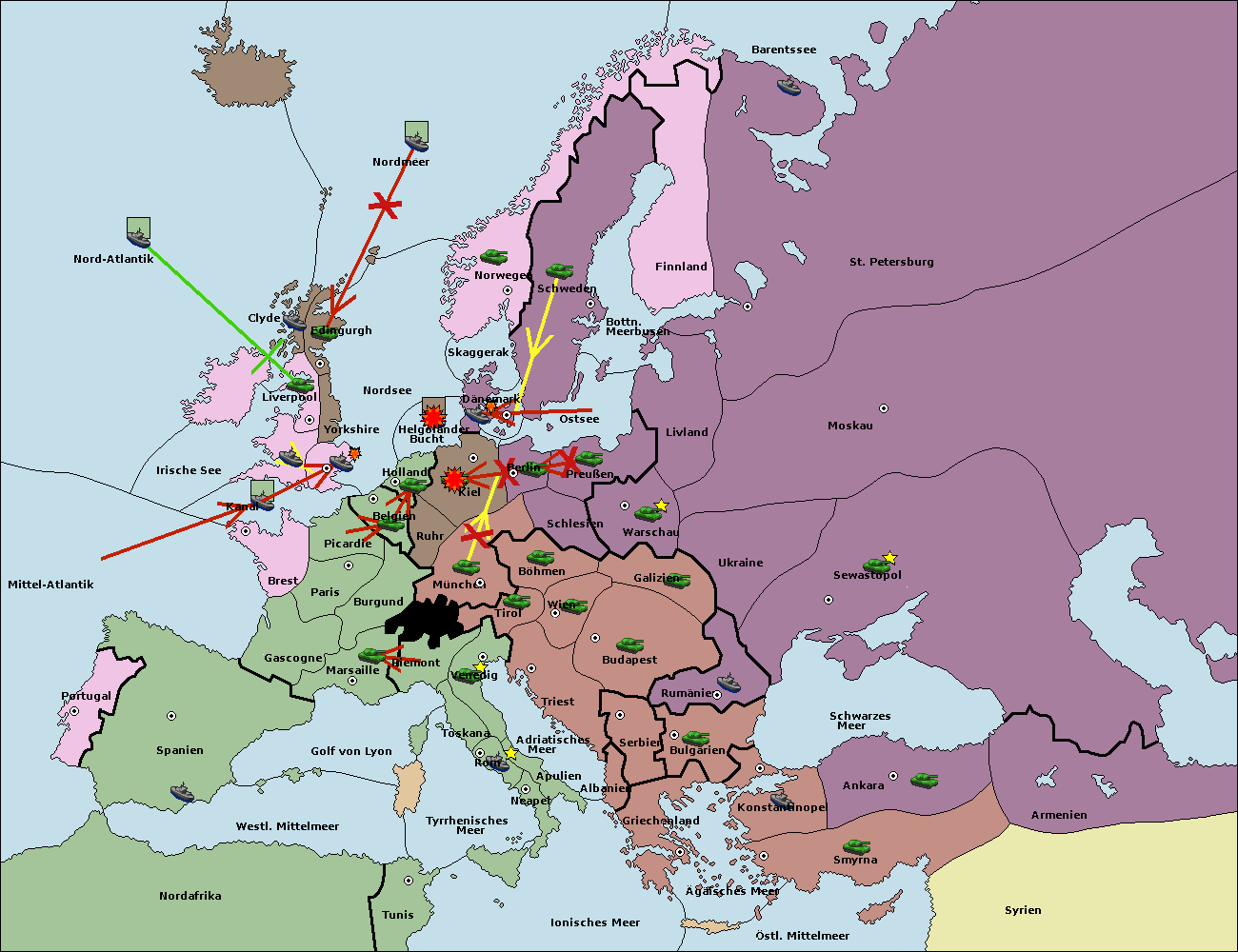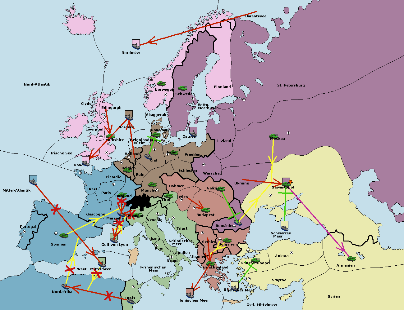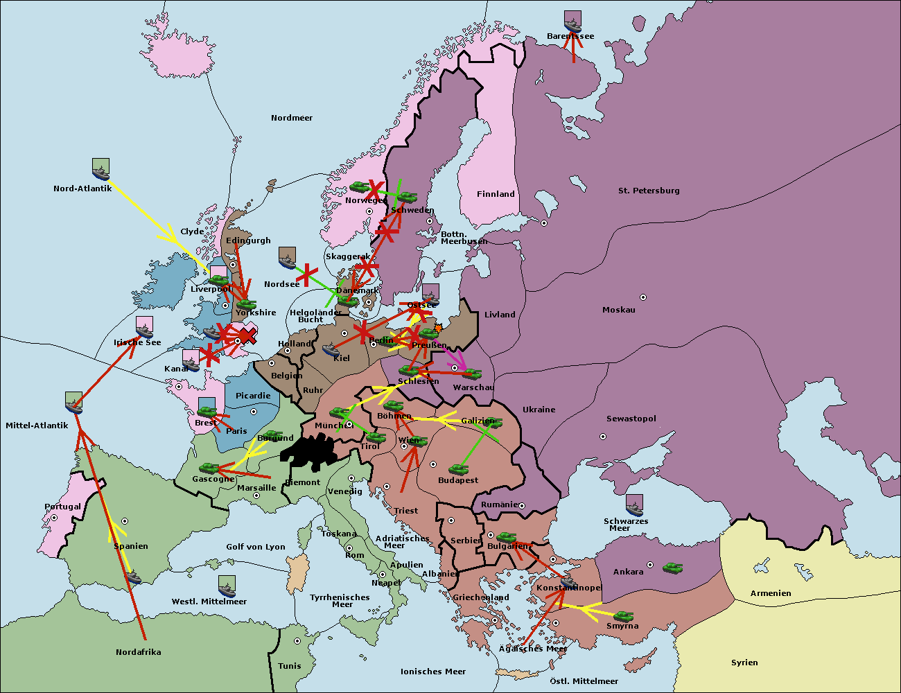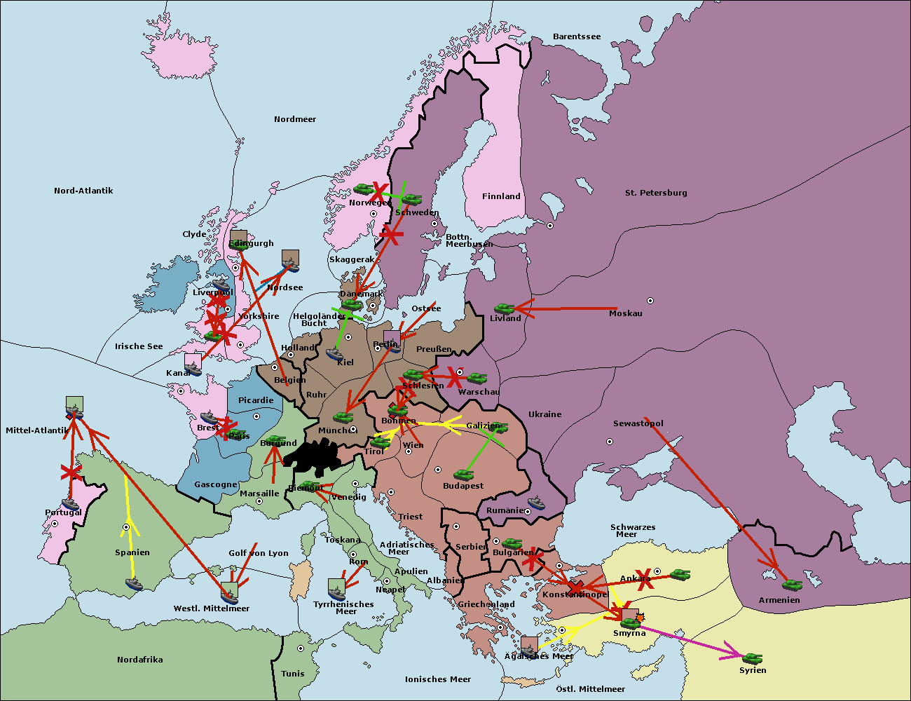 • Die Armee in Bulgarien wird zerstörtFlotte in Bulgarien gebaut.
