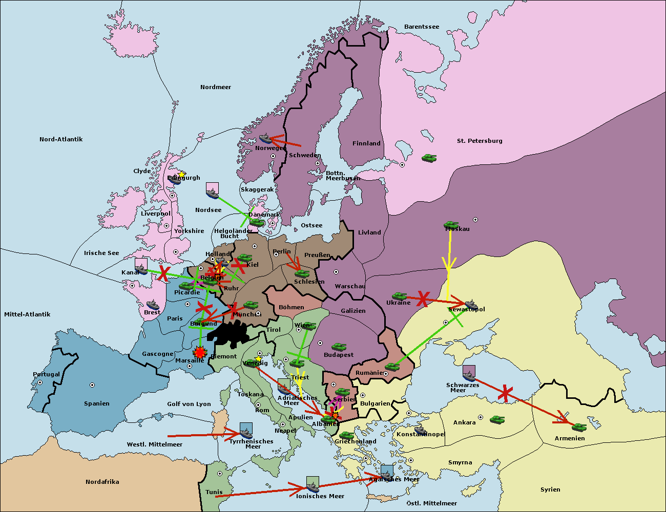 • Die Armee in Ruhr support move nach Burgund von München. (gescheitert)