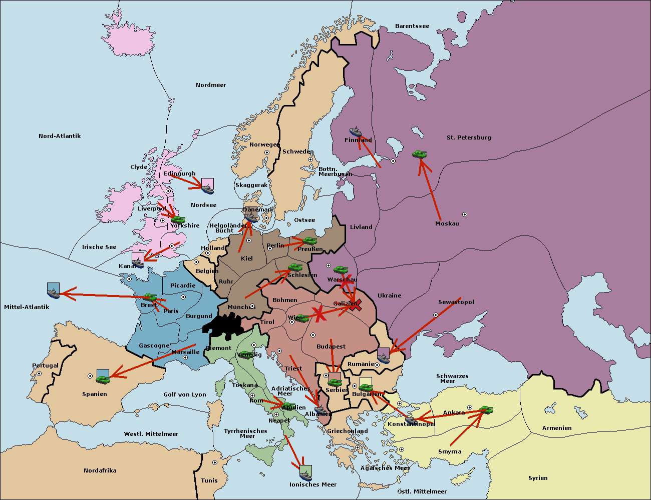 • Die Armee in Konstantinopel support hold nach Bulgarien.