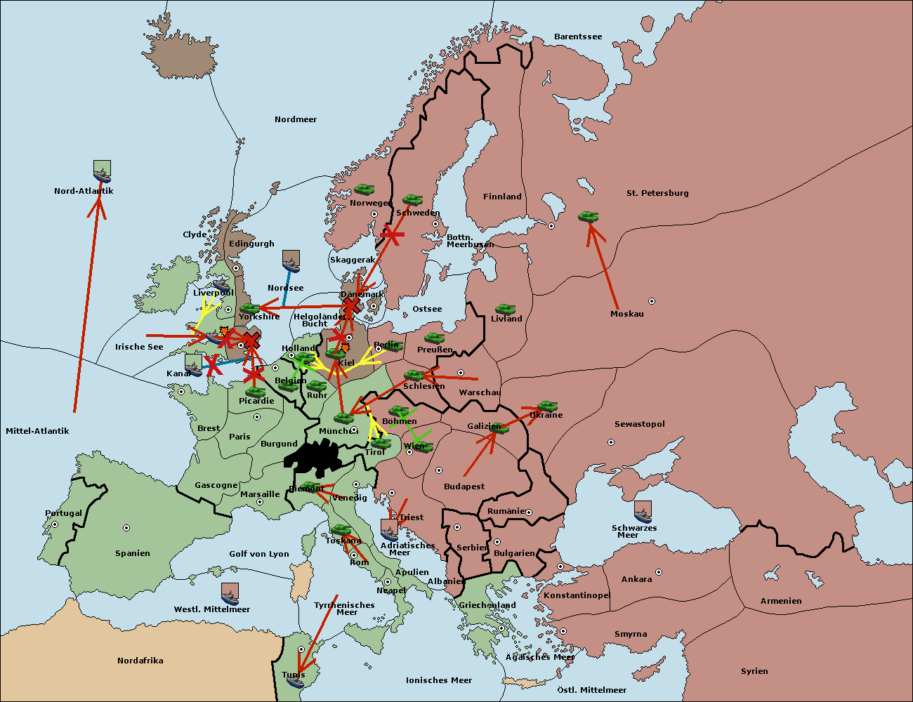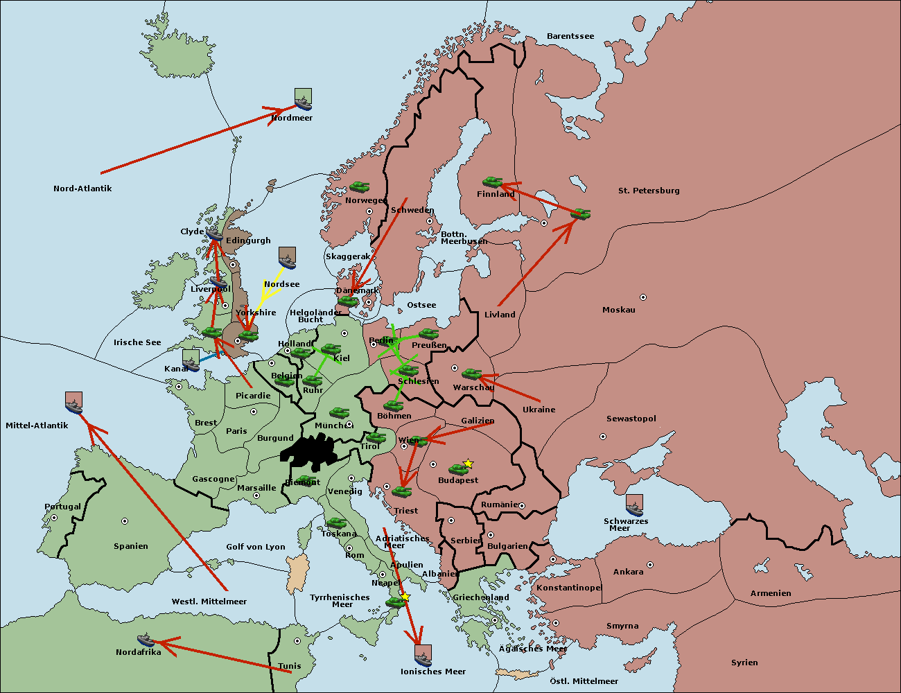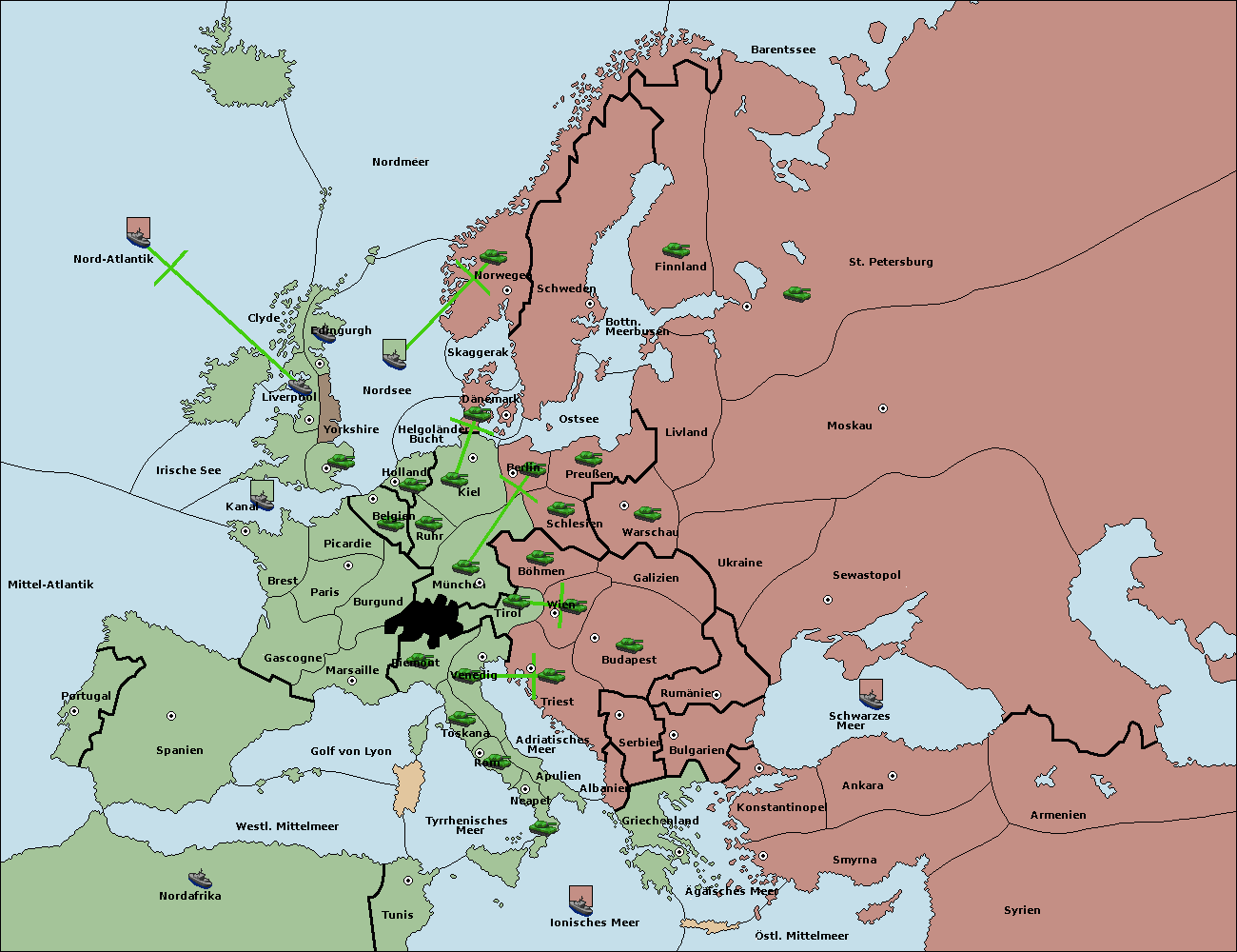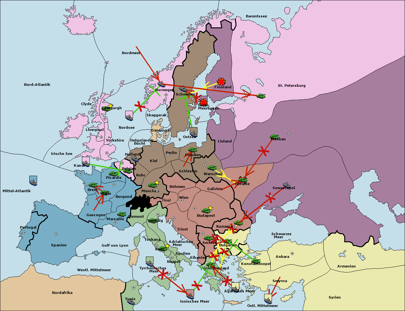 • Die Flotte in St. Petersburg (Südküste) move nach Finnland.