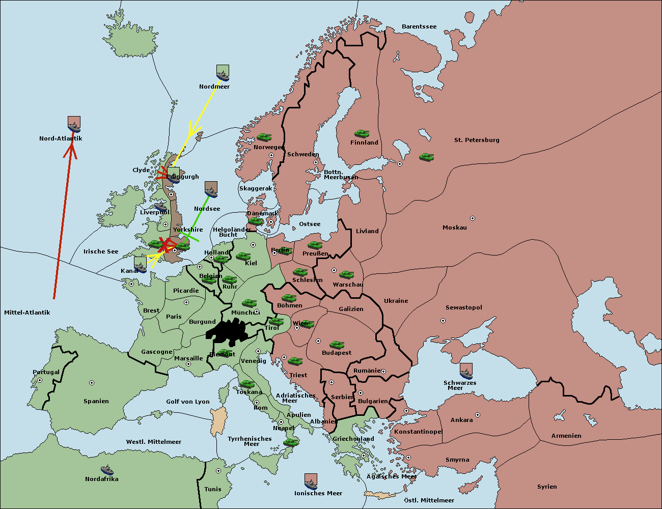 • Die Flotte in Mittel-Atlantik move nach Nord-Atlantik.