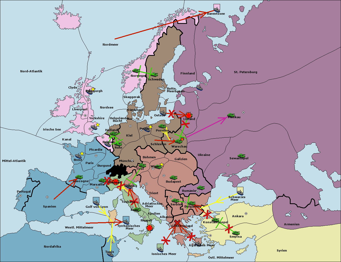 • Die Flotte in Spanien (Südküste) move nach westl. Mittelmeer.