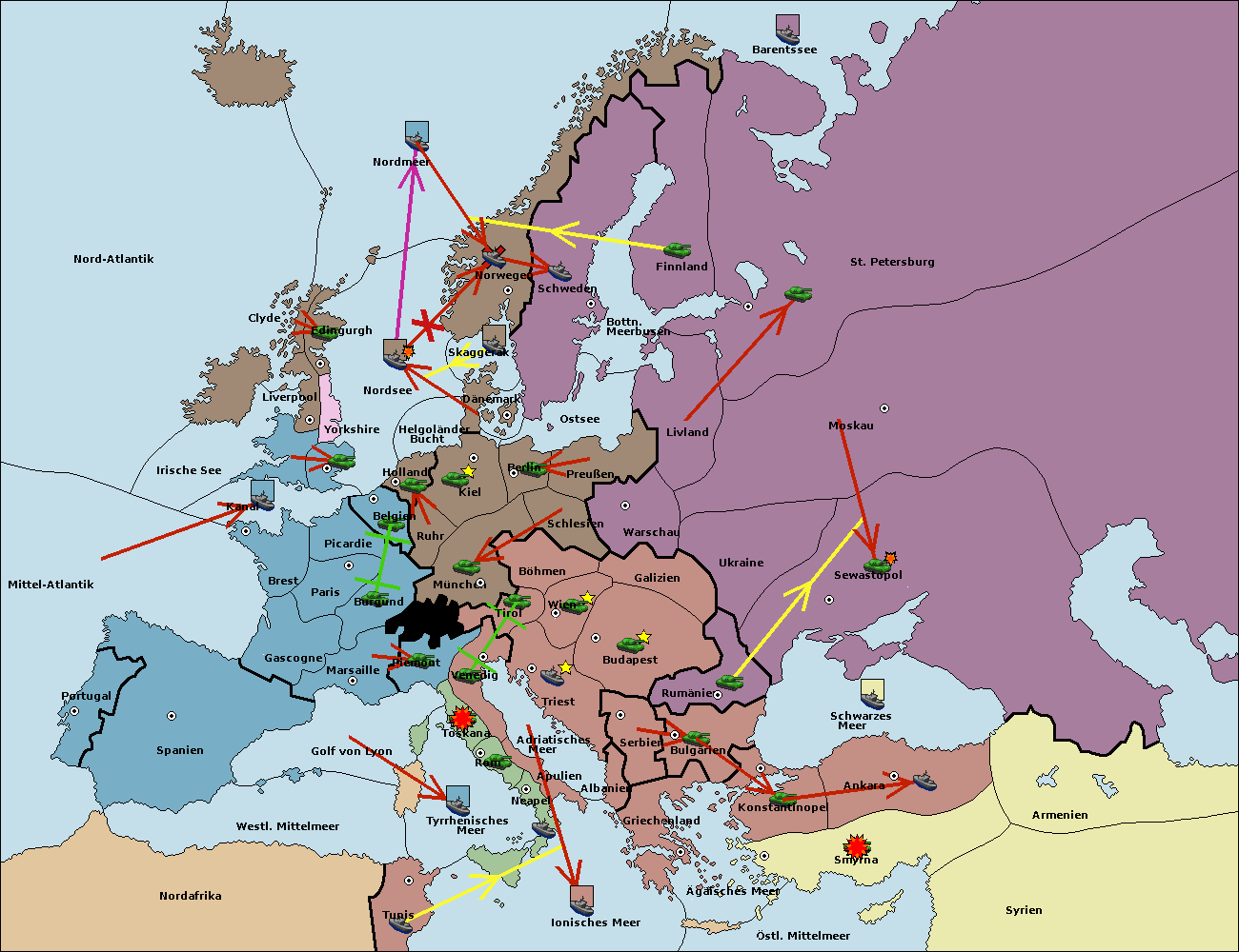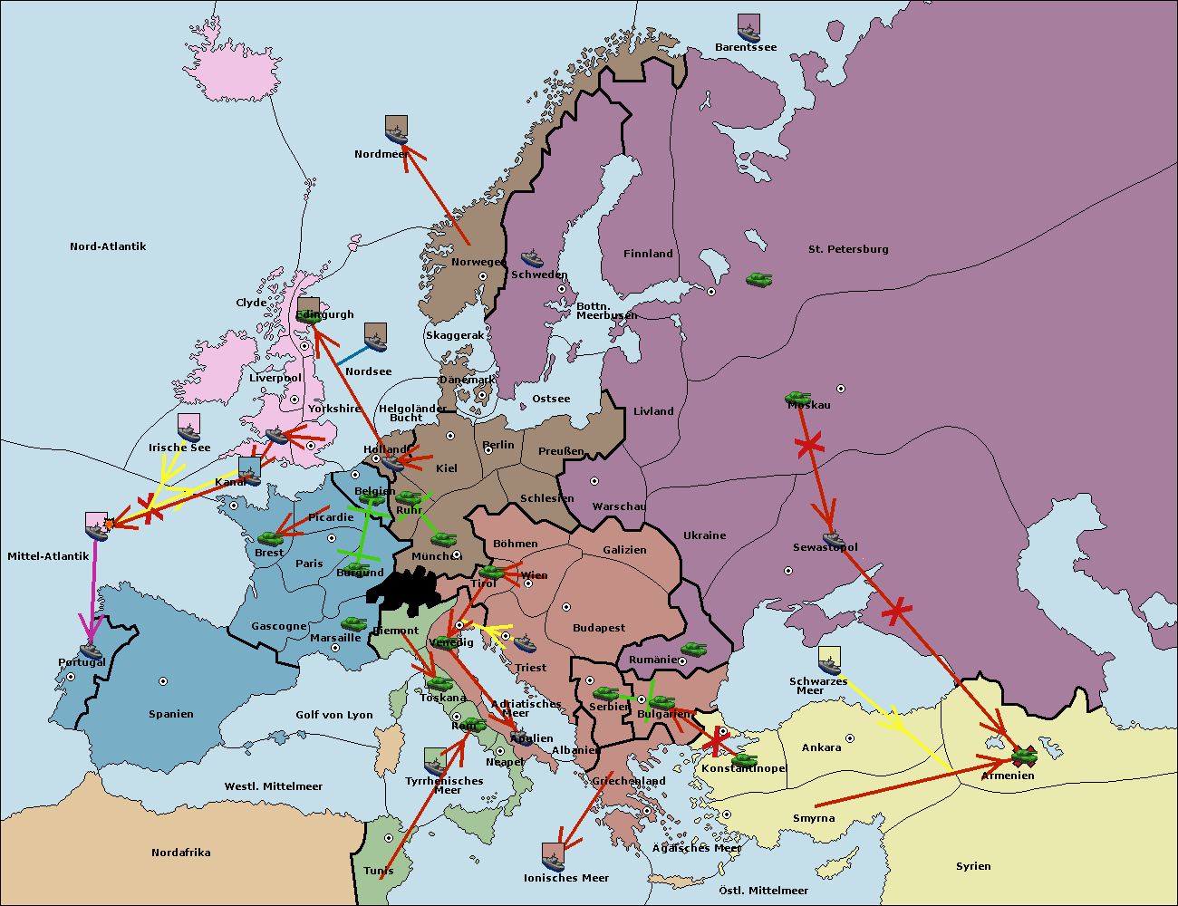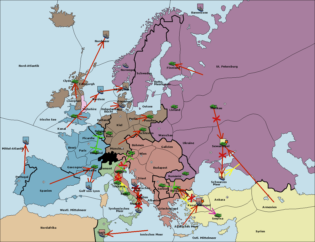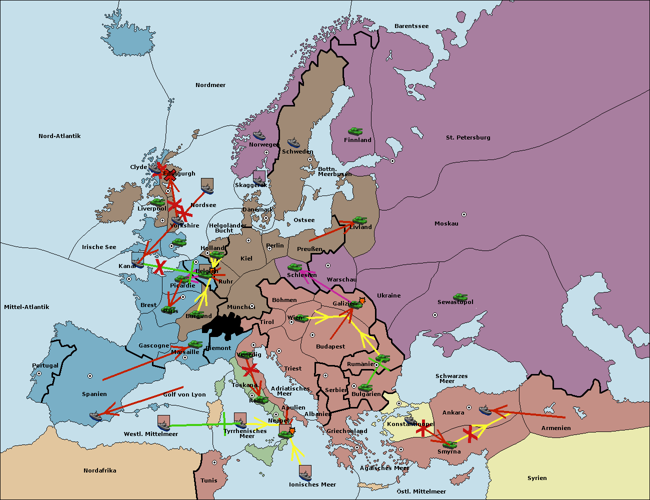 • Die Armee in Konstantinopel support hold nach Bulgarien.