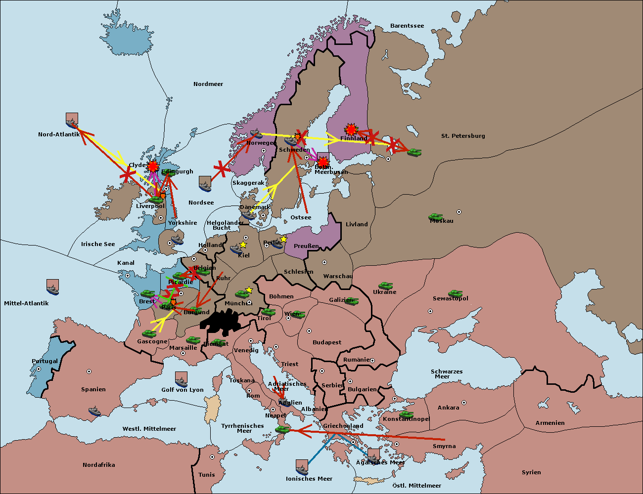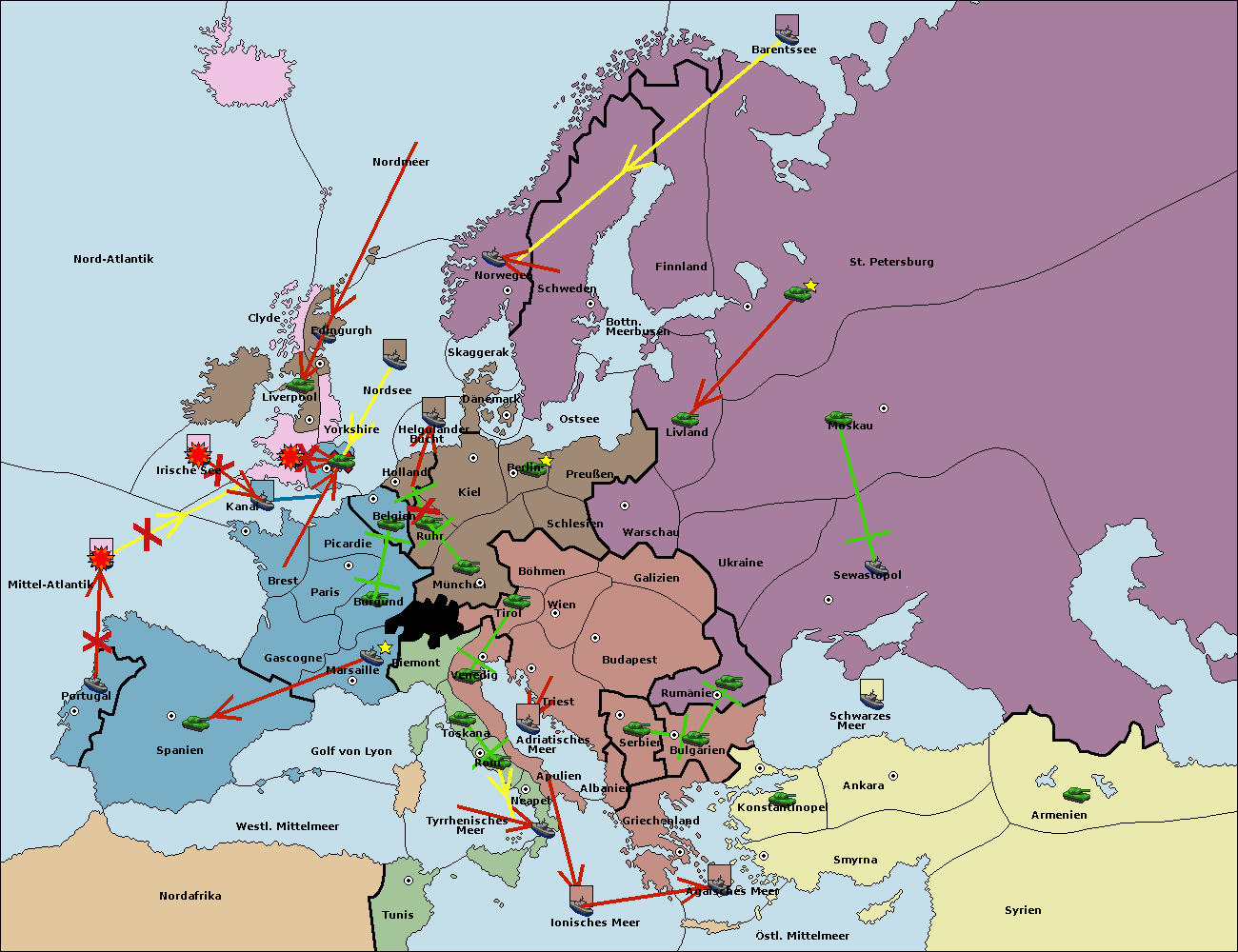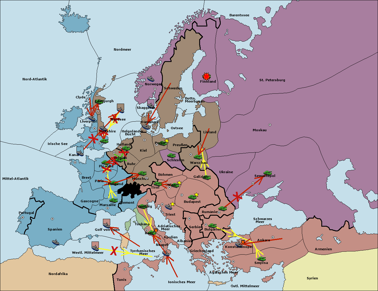 • Die Flotte in St. Petersburg (Nordküste) move nach Barentssee.