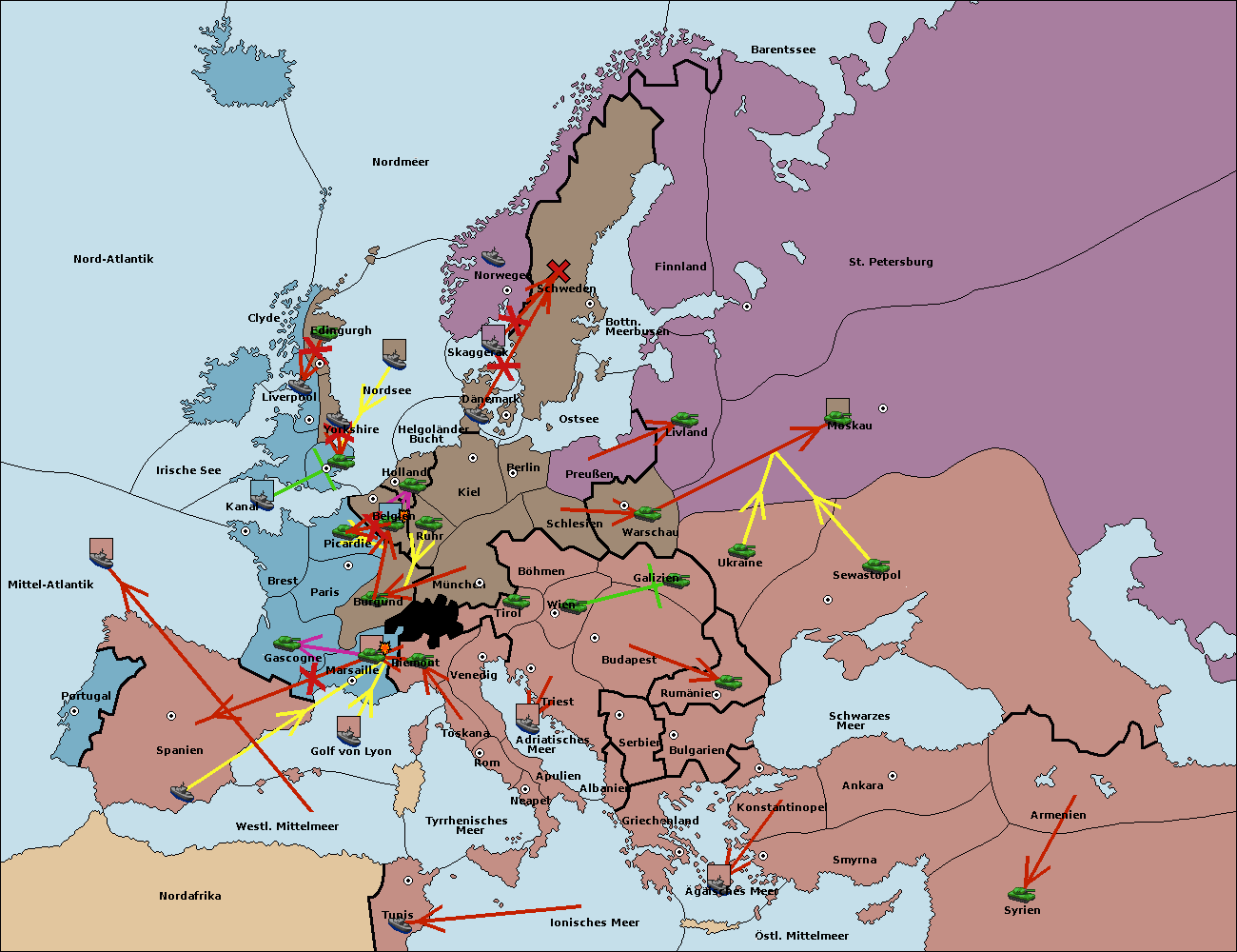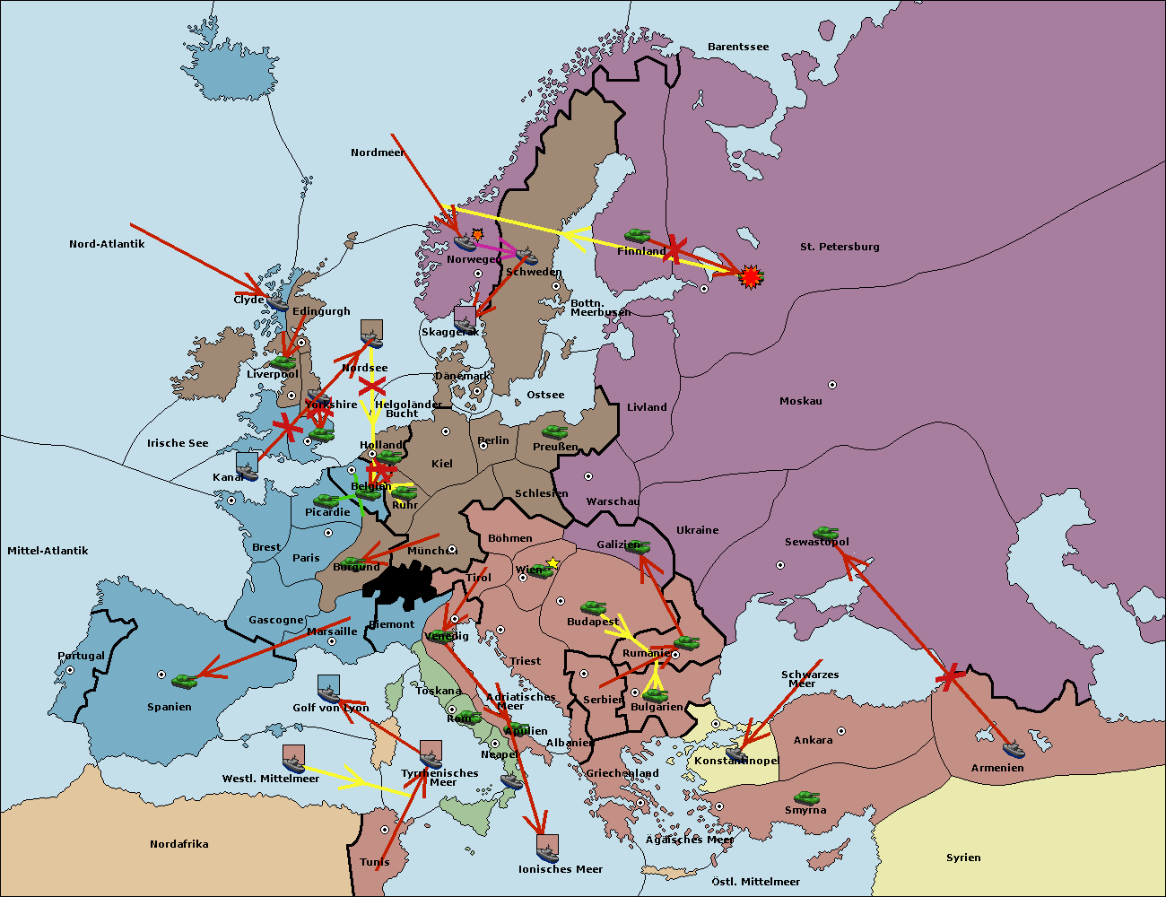 • Die Armee in Bulgarien wird zerstörtFlotte in Bulgarien gebaut.