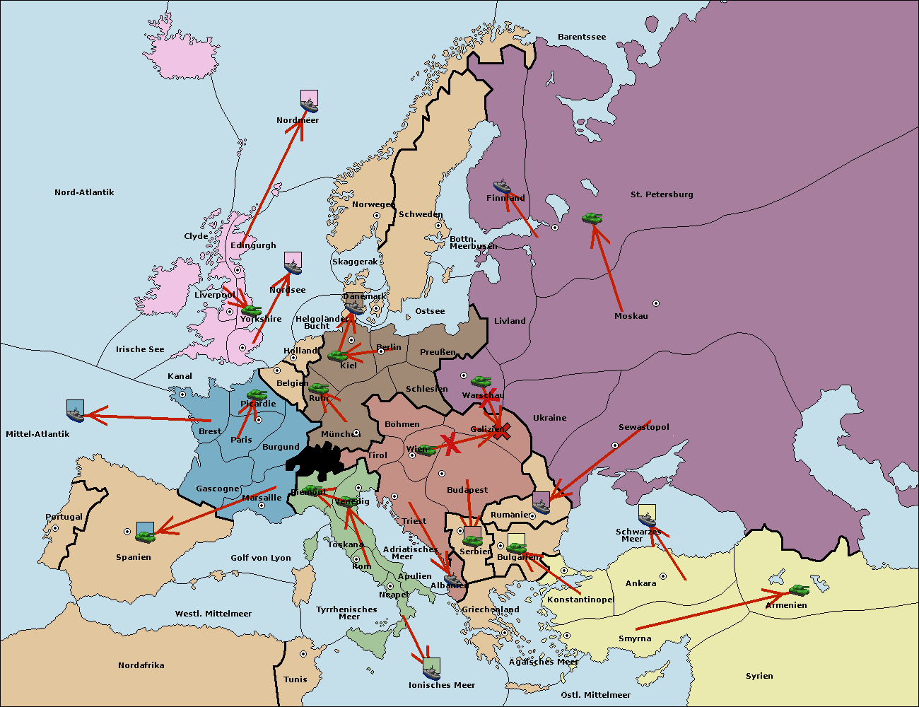 • Die Armee in Galizien move nach Wien. (gescheitert)
