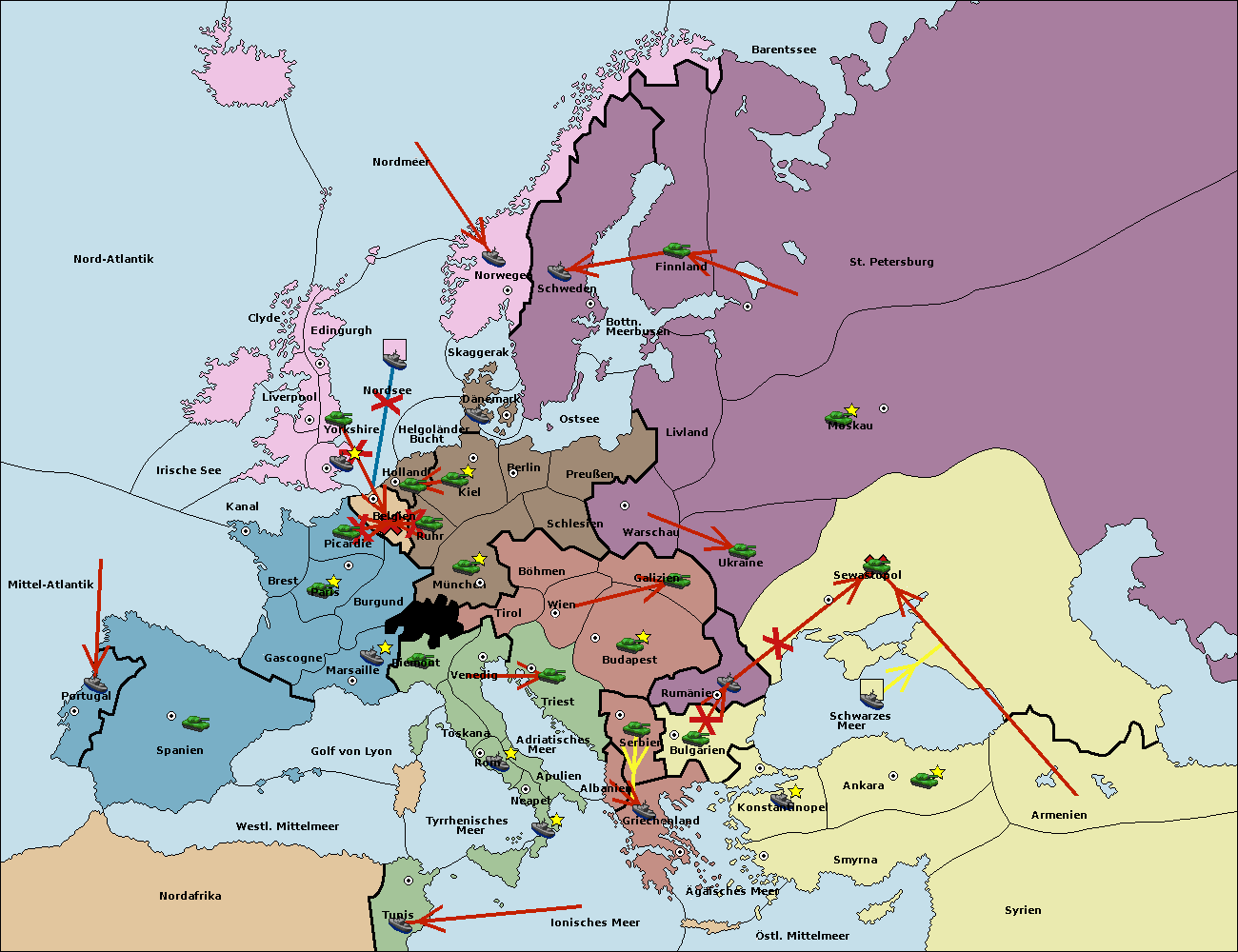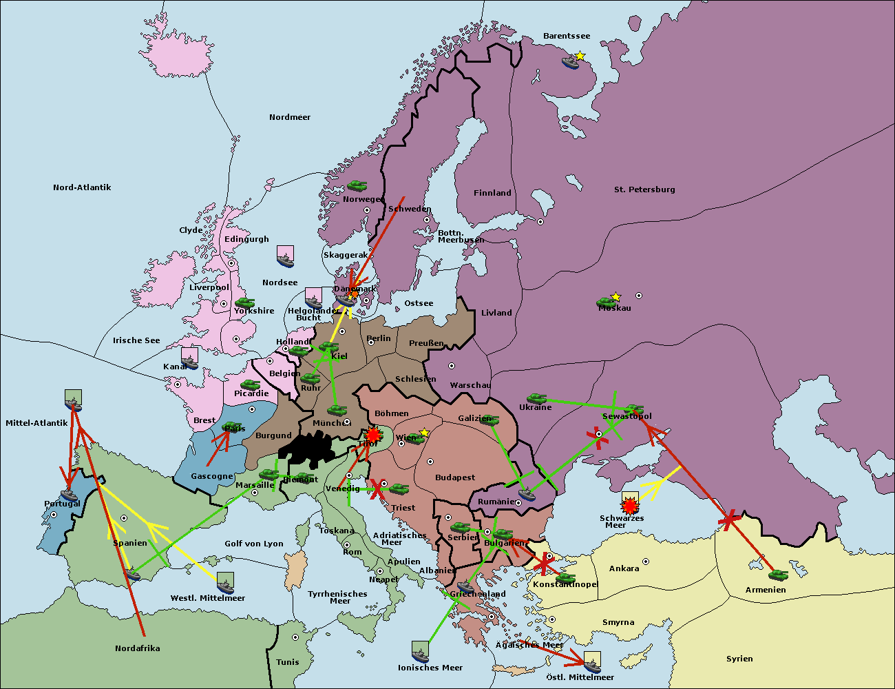 • Die Armee in Sewastopol support move nach Rumänien von Bulgarien. (gescheitert)