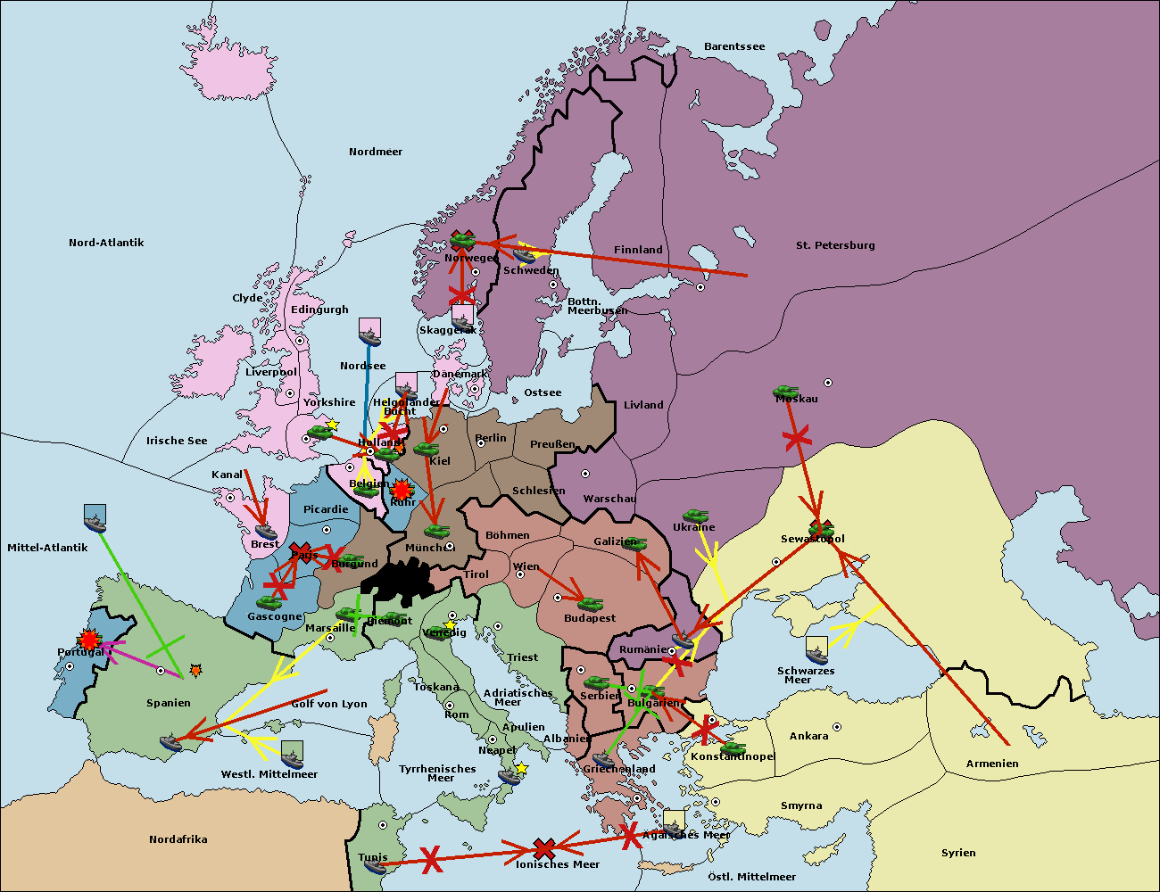 • Die Flotte in Portugal move nach Spanien (Südküste). (gescheitert)