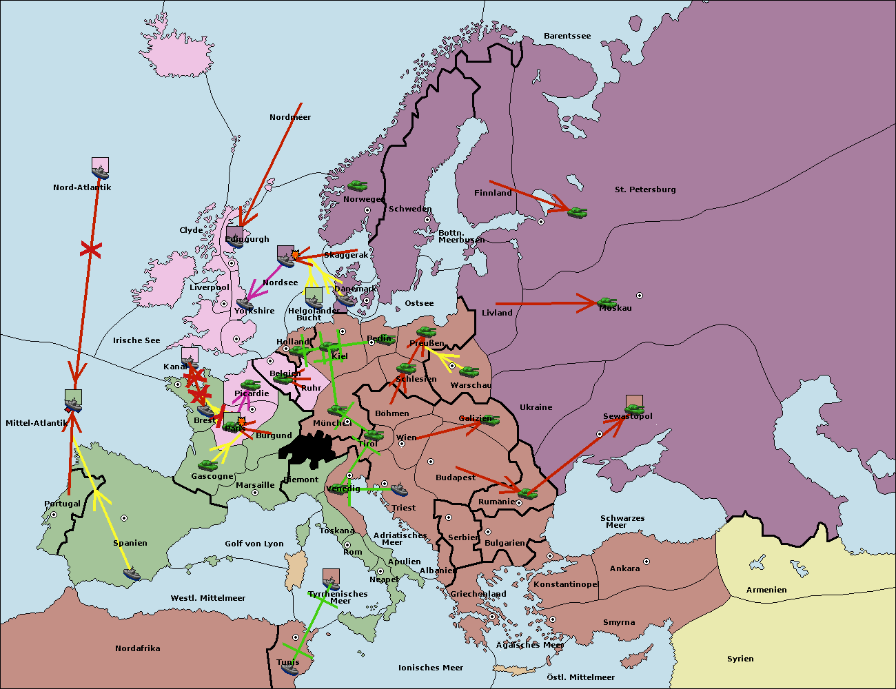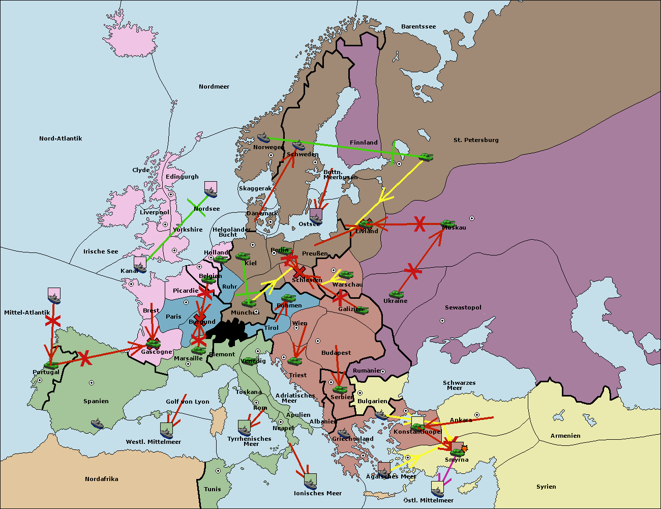 • Die Armee in Kiel support move nach München von Berlin. (gescheitert)