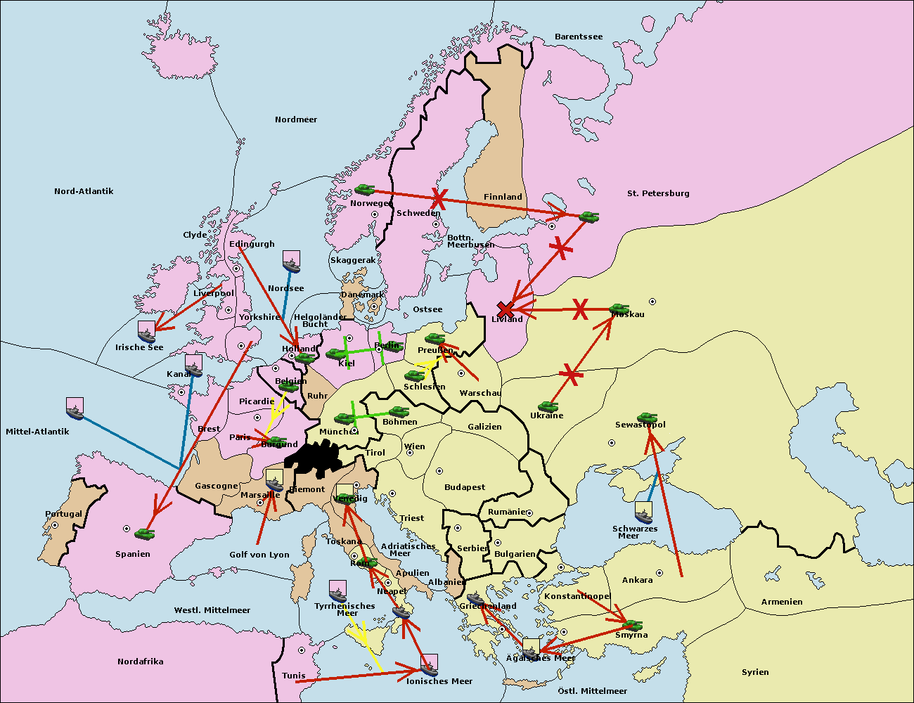 • Die Armee in Norwegen support move nach St. Petersburg von Livland.