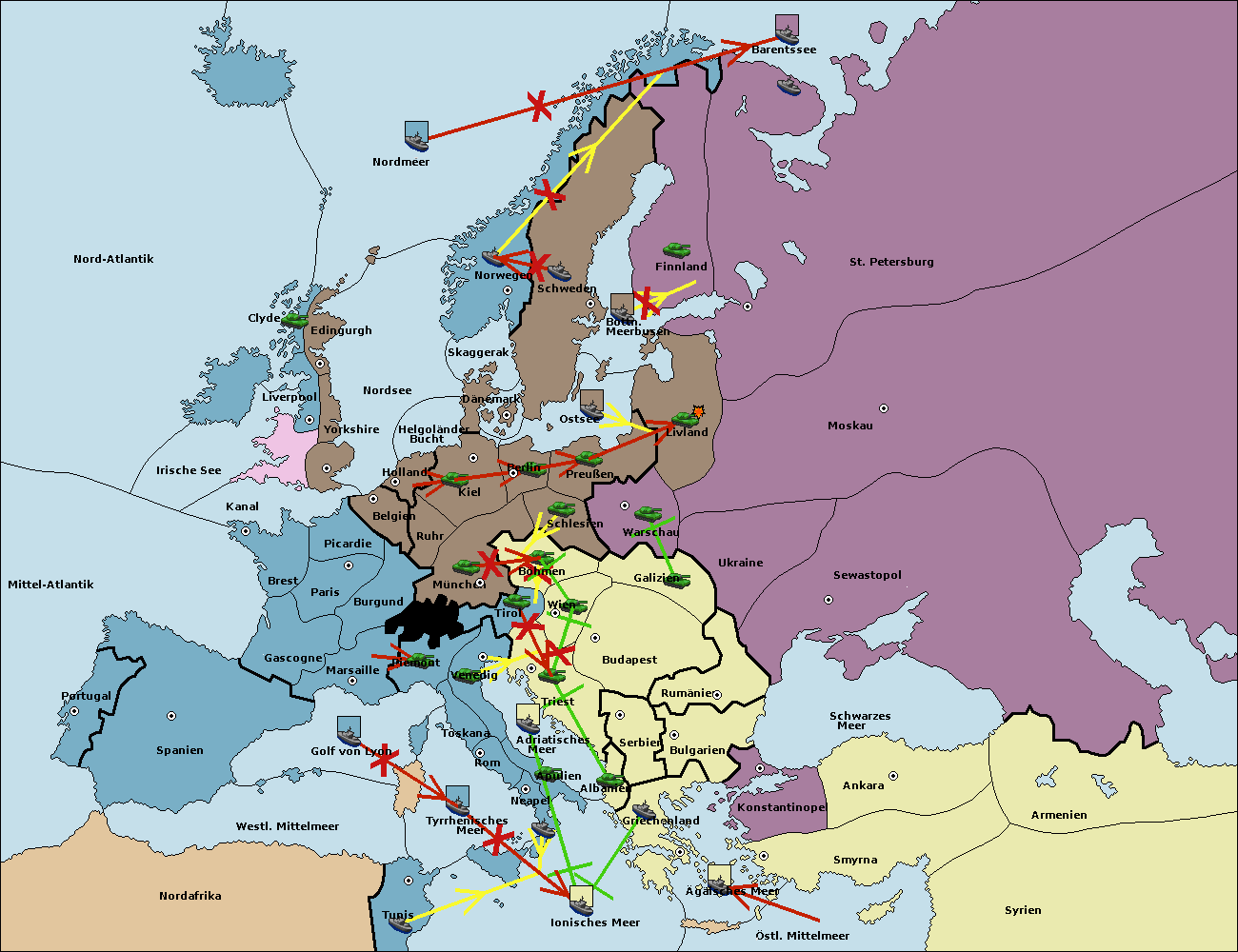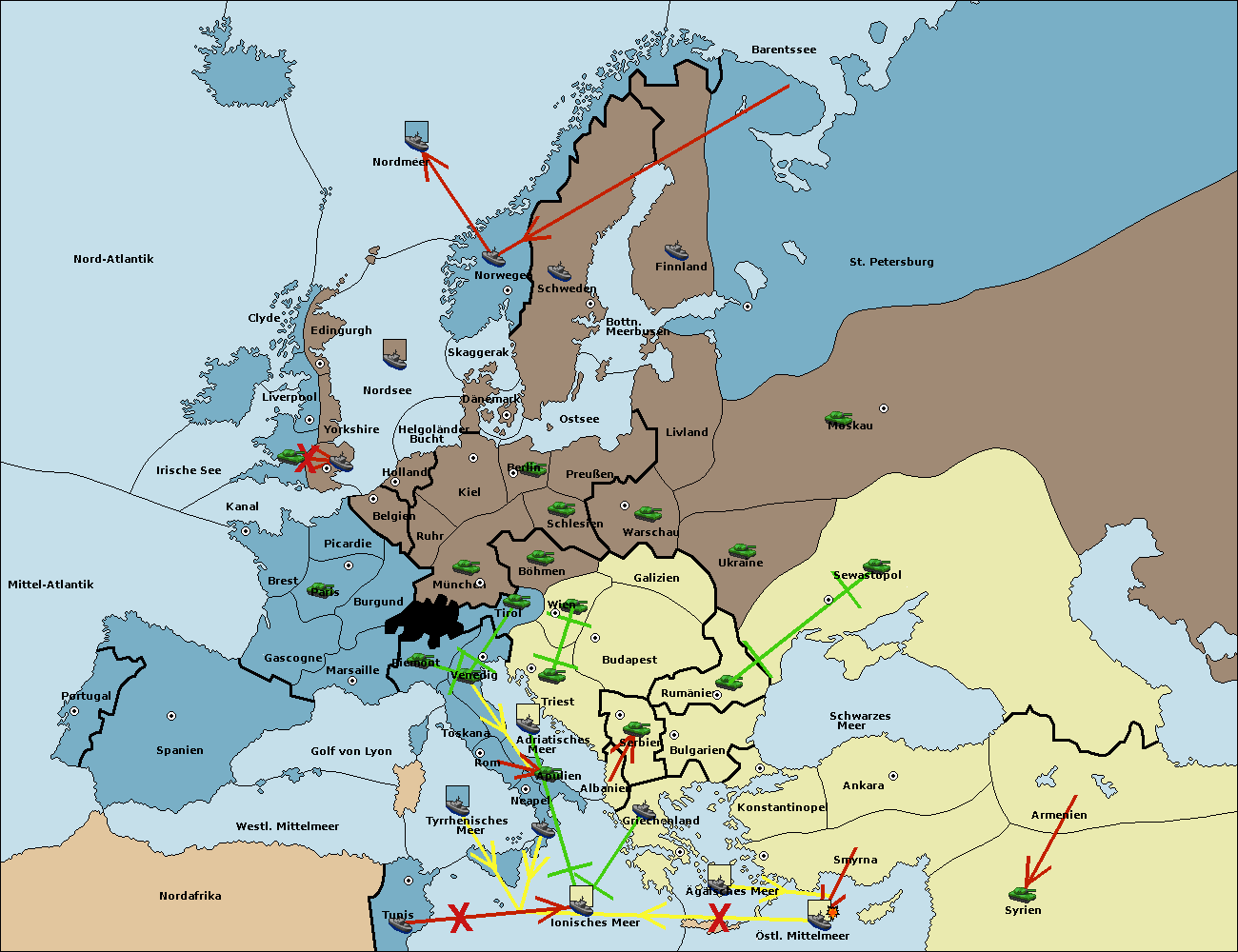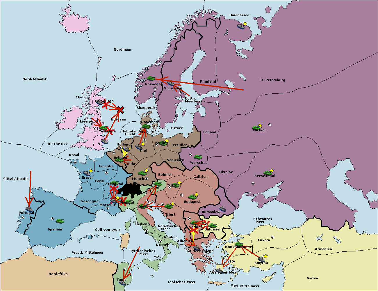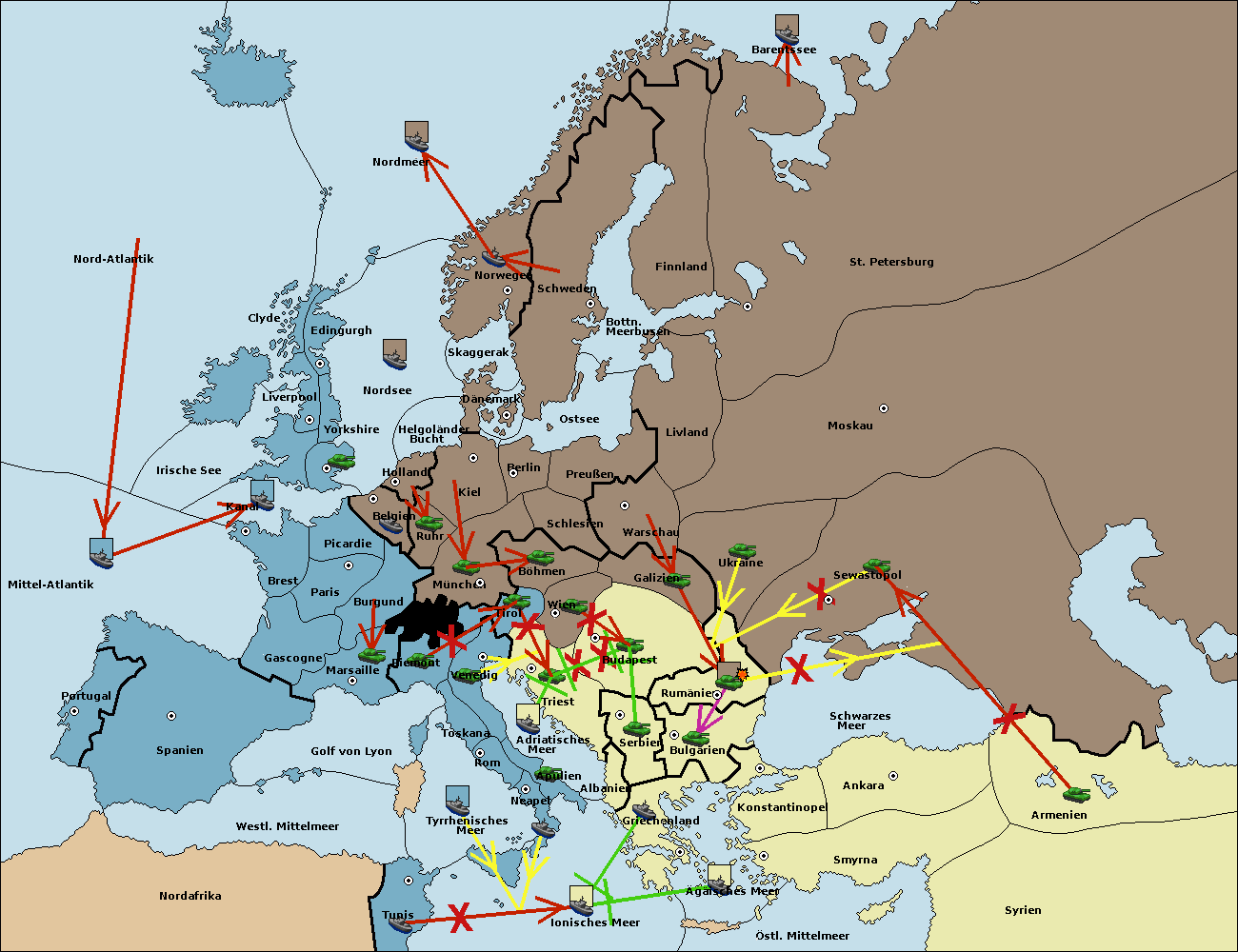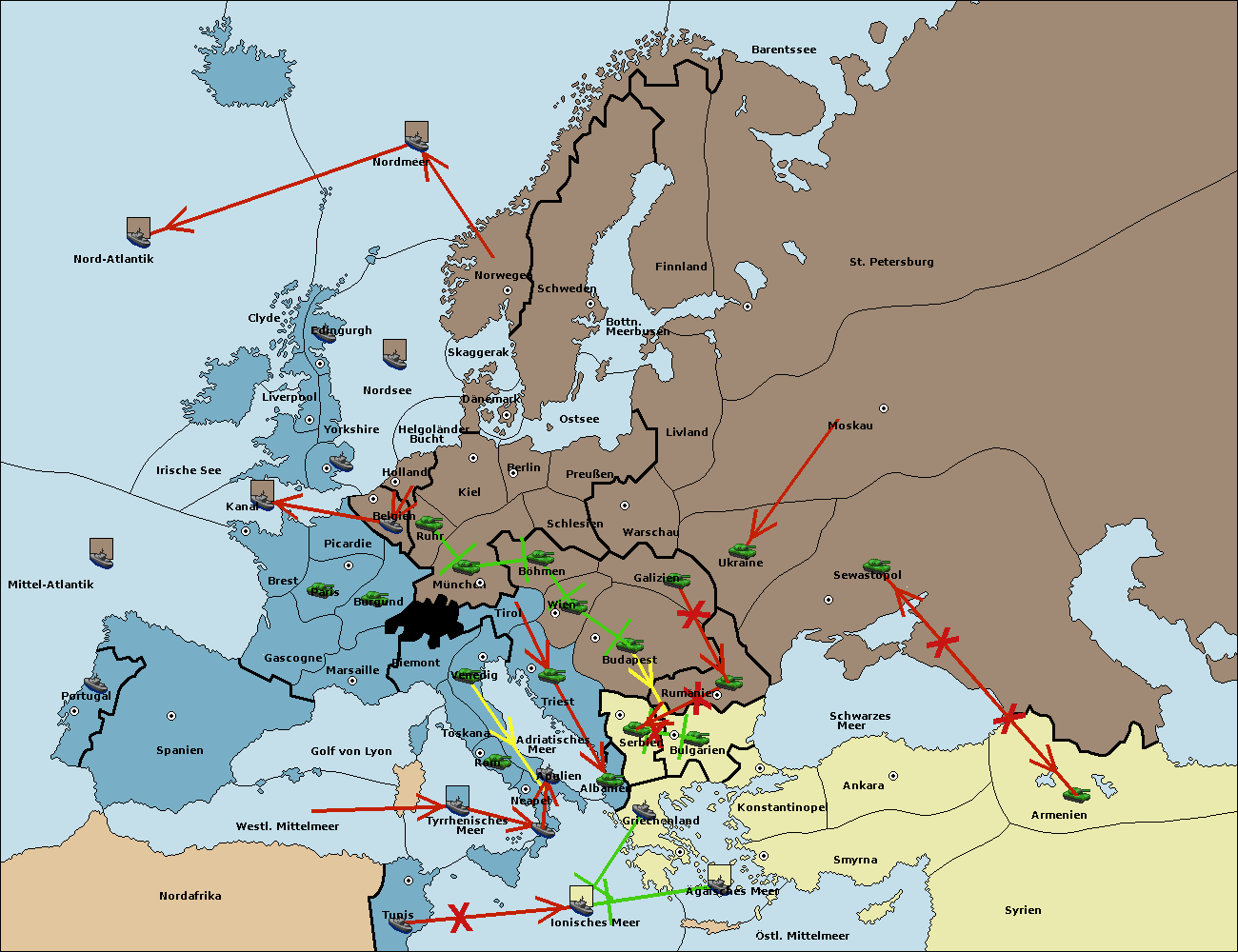 • Die Flotte in Griechenland support move nach Bulgarien von Rumänien. (gescheitert)
