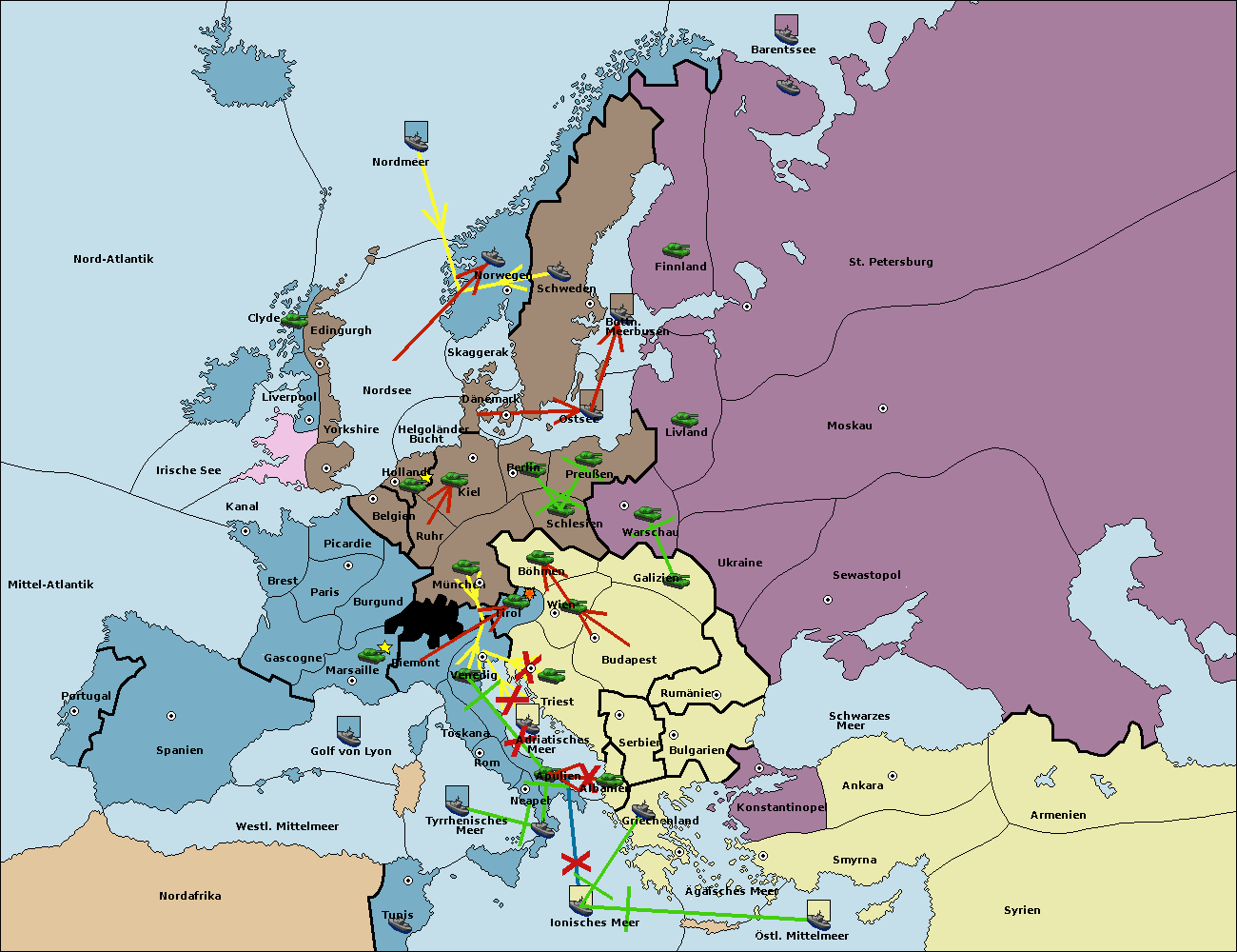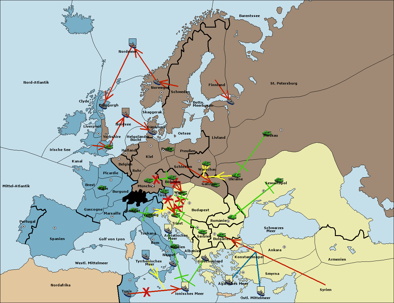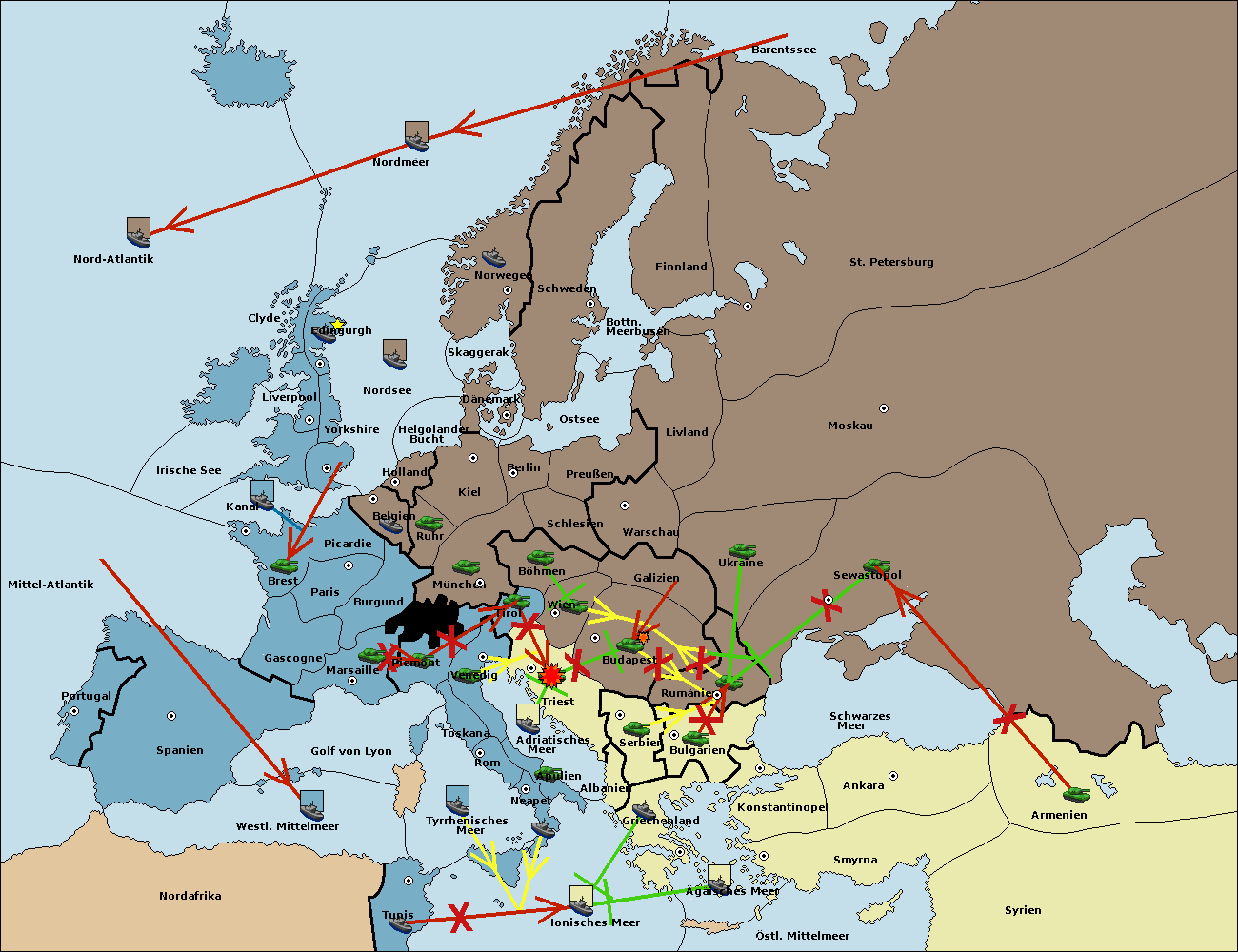 • Die Armee in Triest support move nach Tirol von Wien.