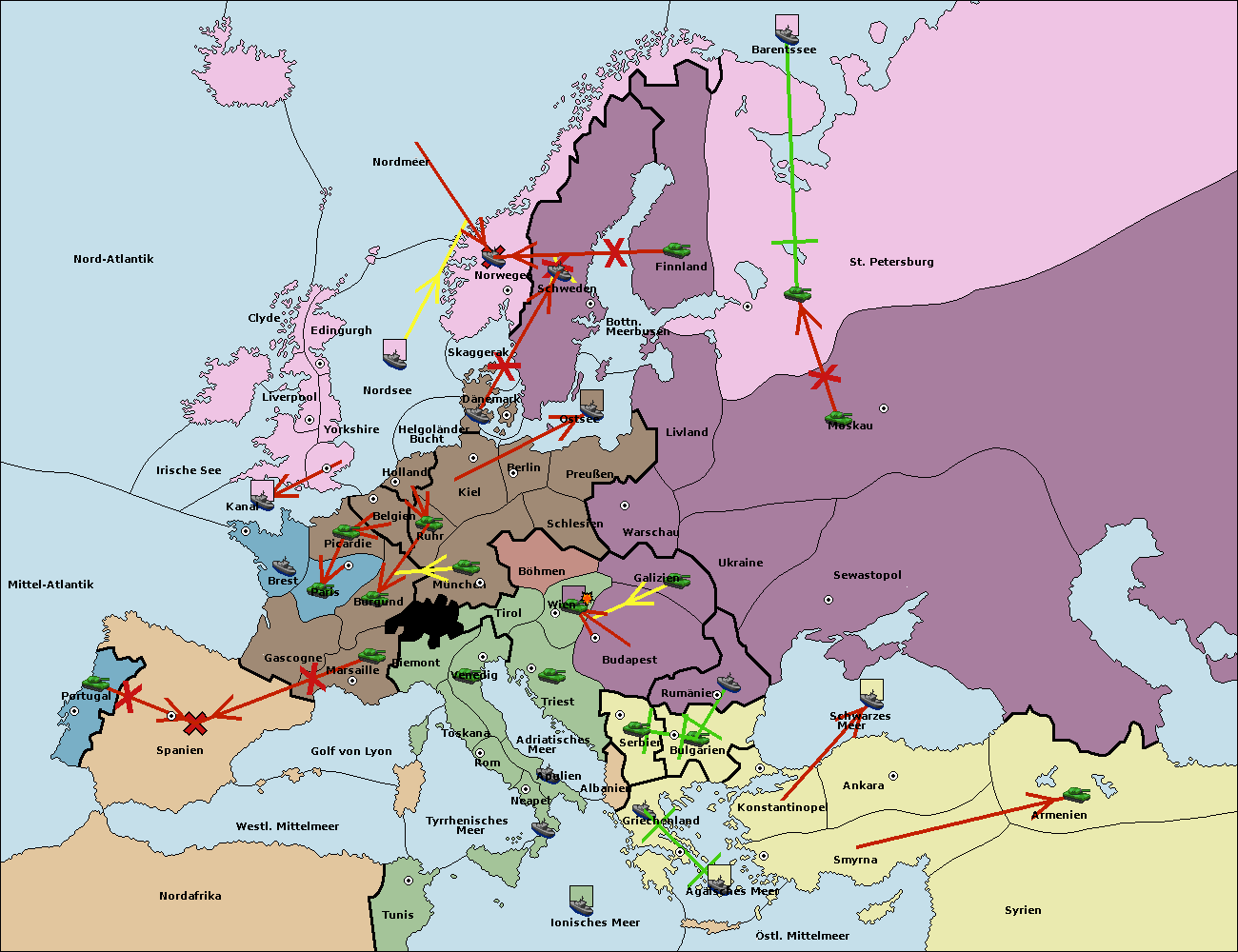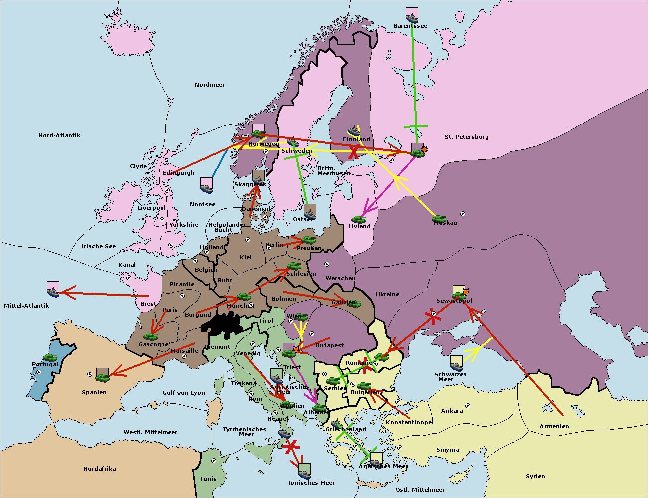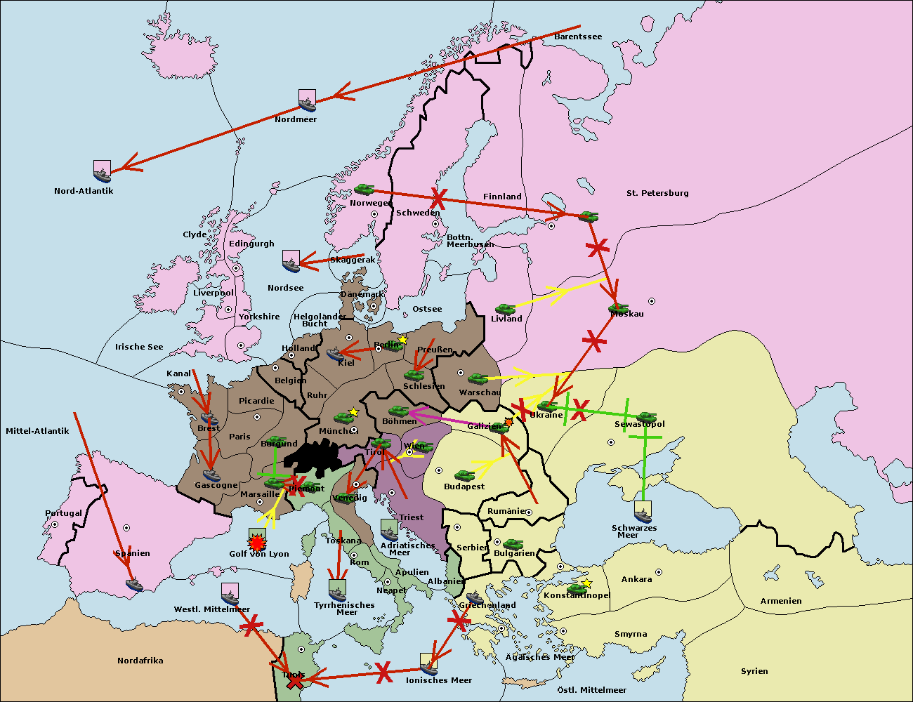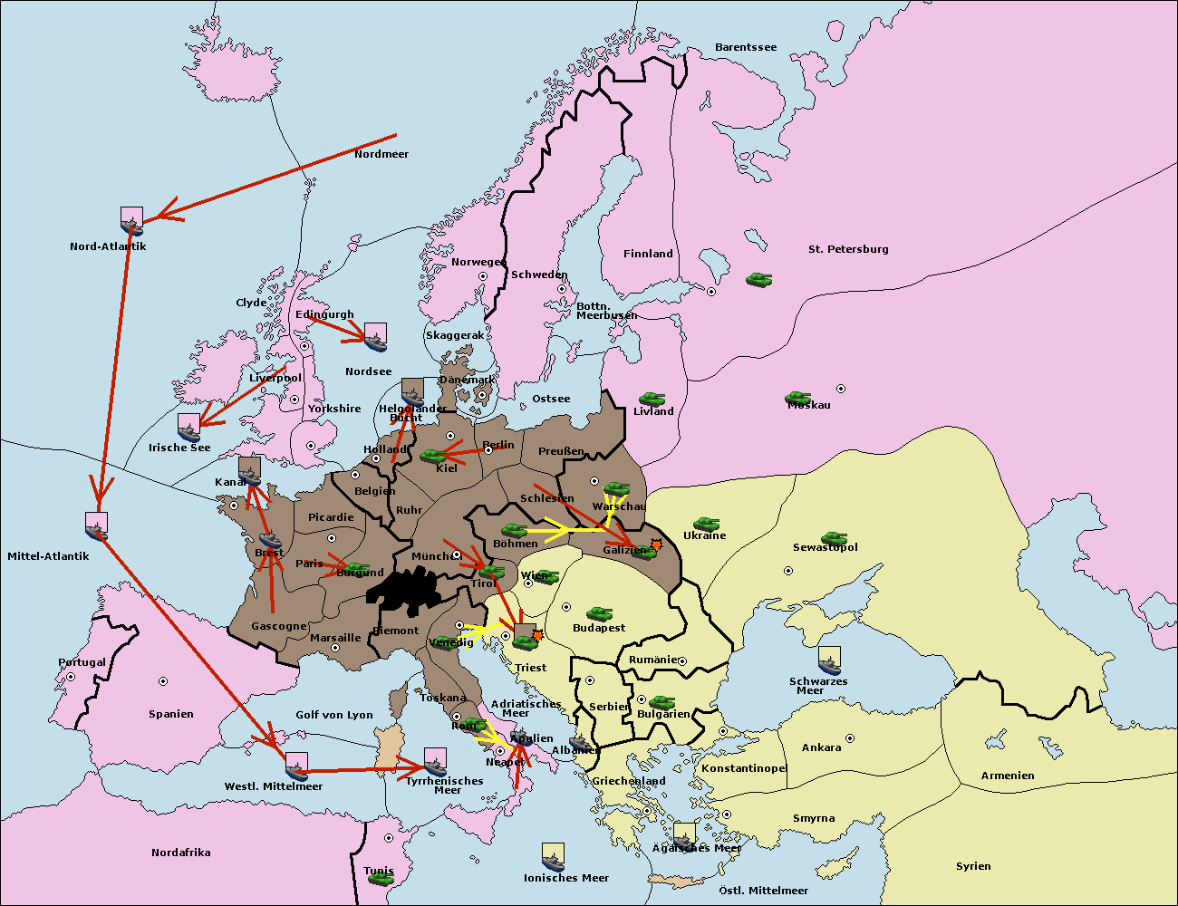 • Die Flotte in Bulgarien (Südküste) move nach Griechenland.