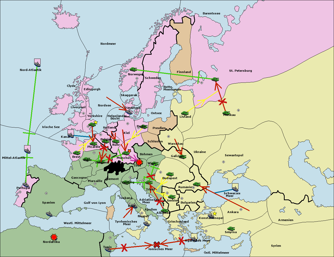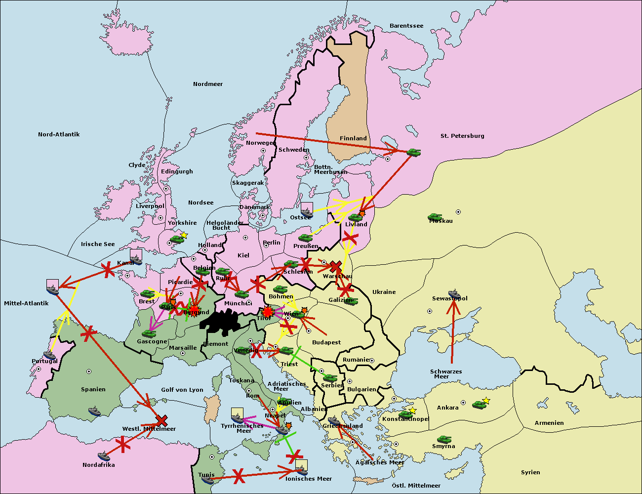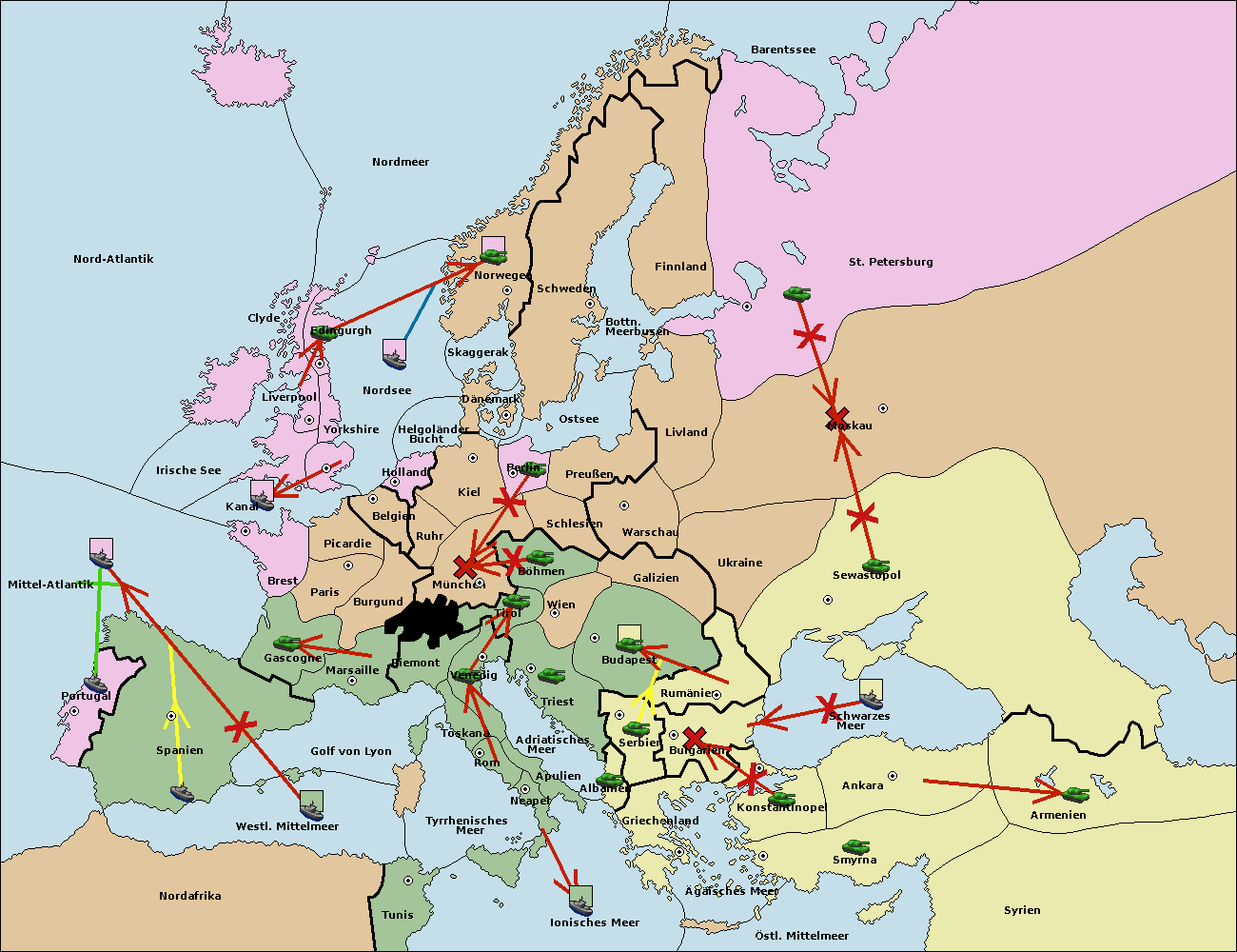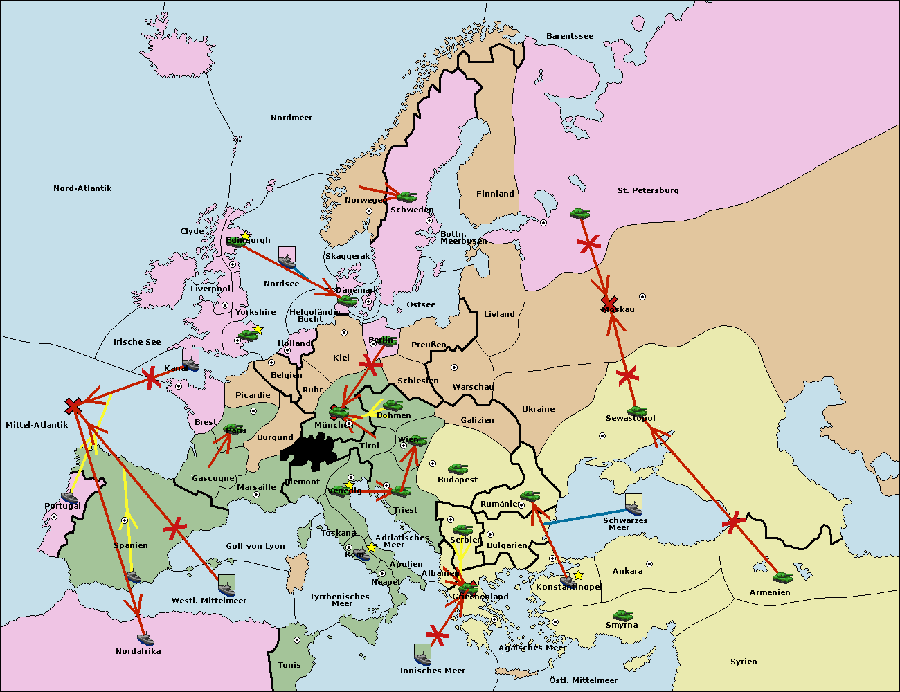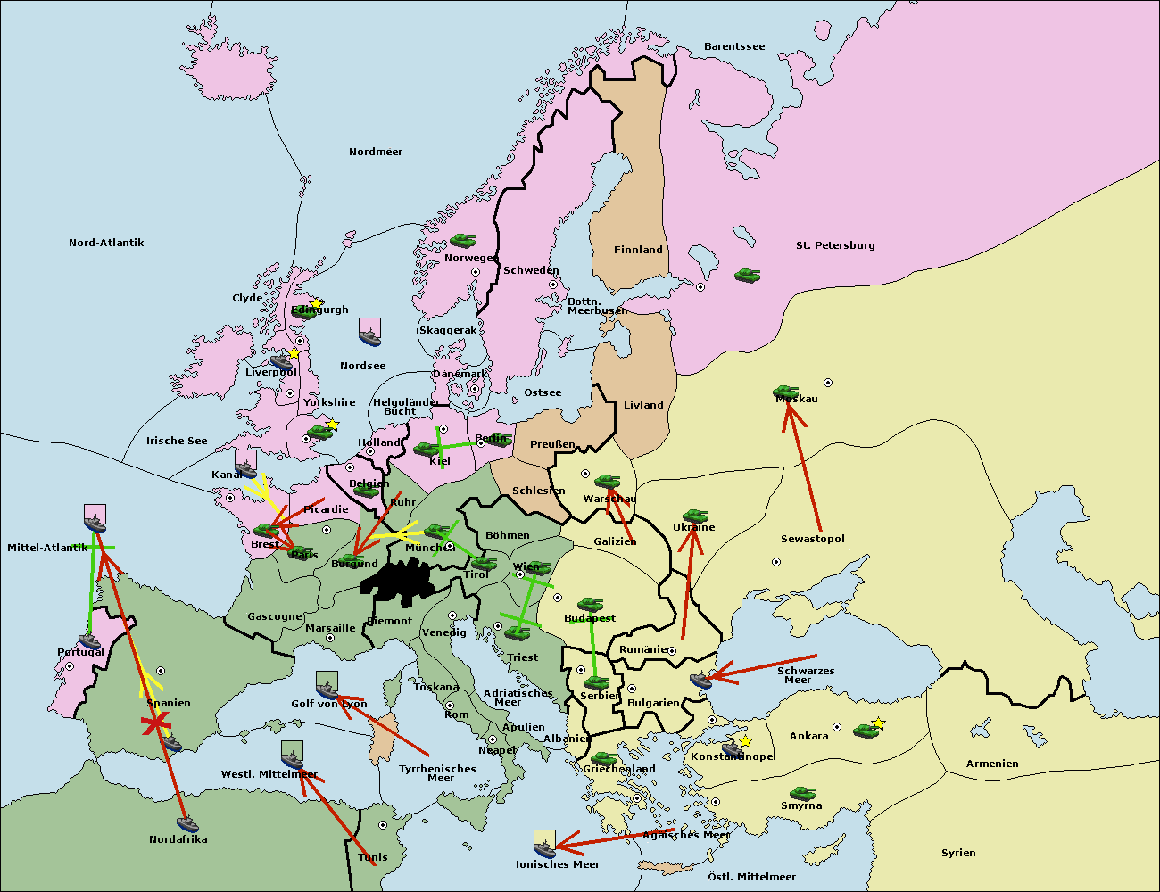 • Die Flotte in Spanien (Südküste) support move nach Mittel-Atlantik von westl. Mittelmeer.