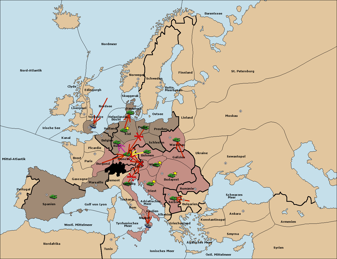 • Die Armee in München move nach Tirol. (gescheitert) (verdrängt)