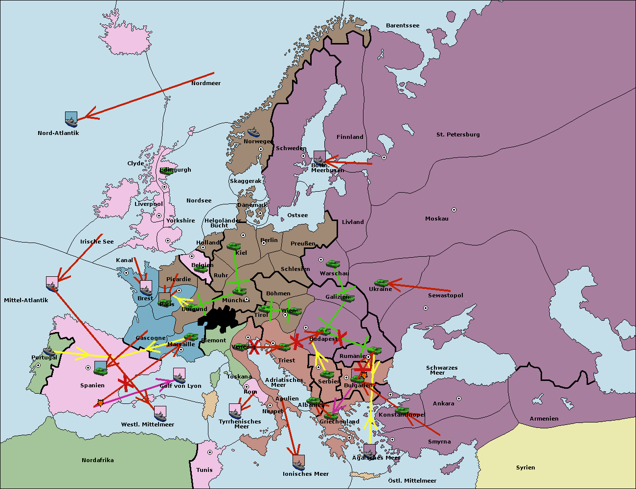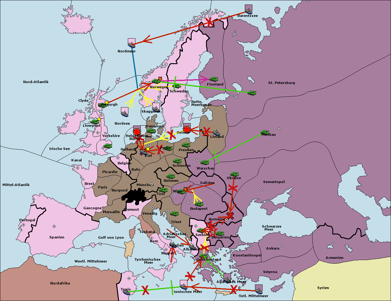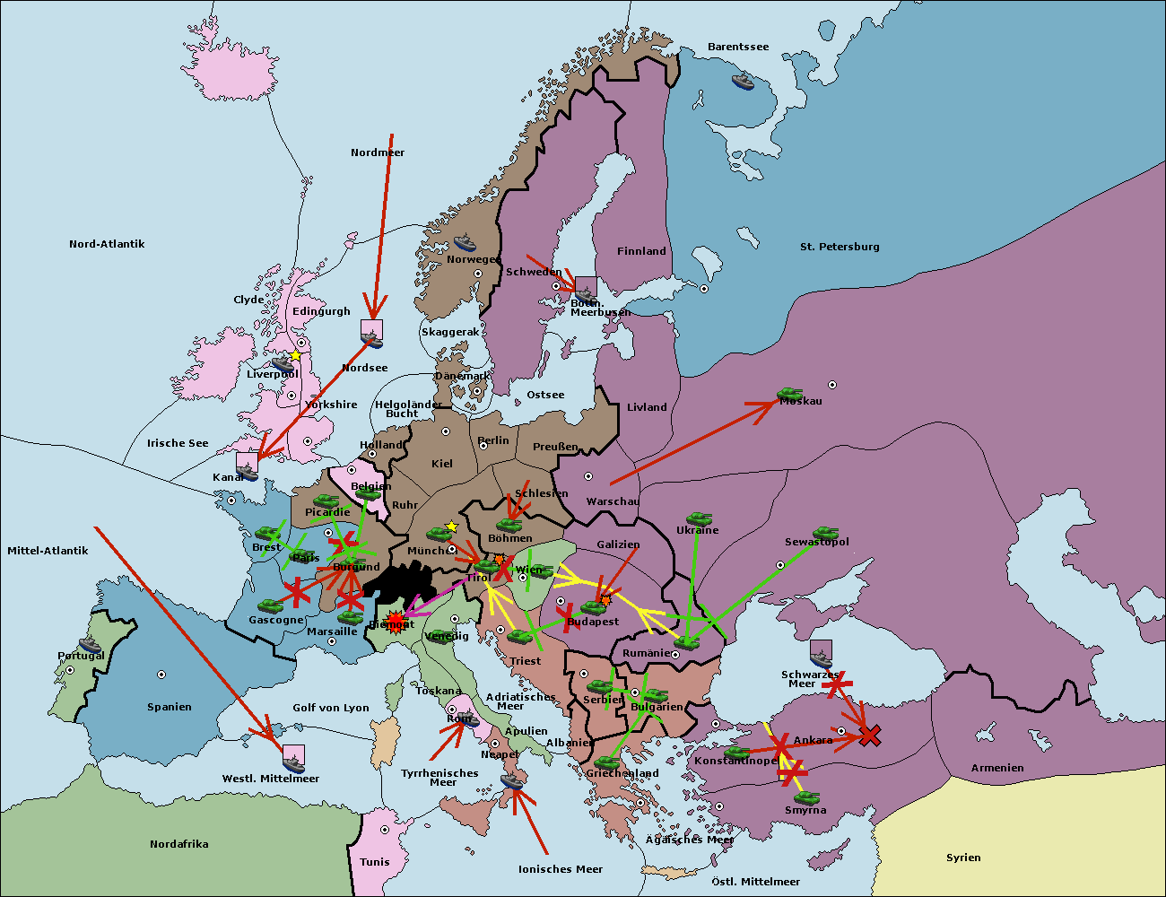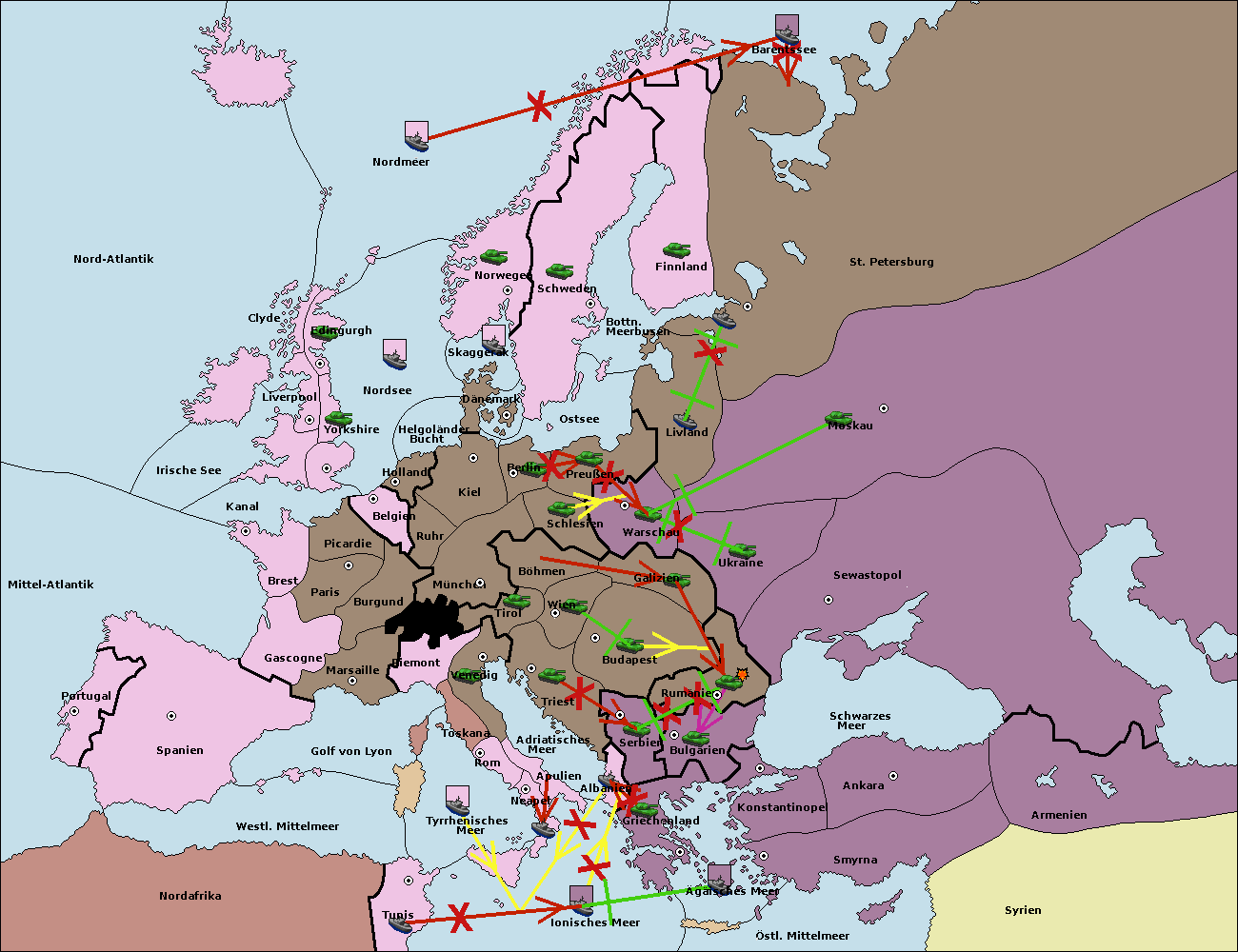 • Die Armee in Bulgarien wird zerstörtFlotte in Bulgarien gebaut.