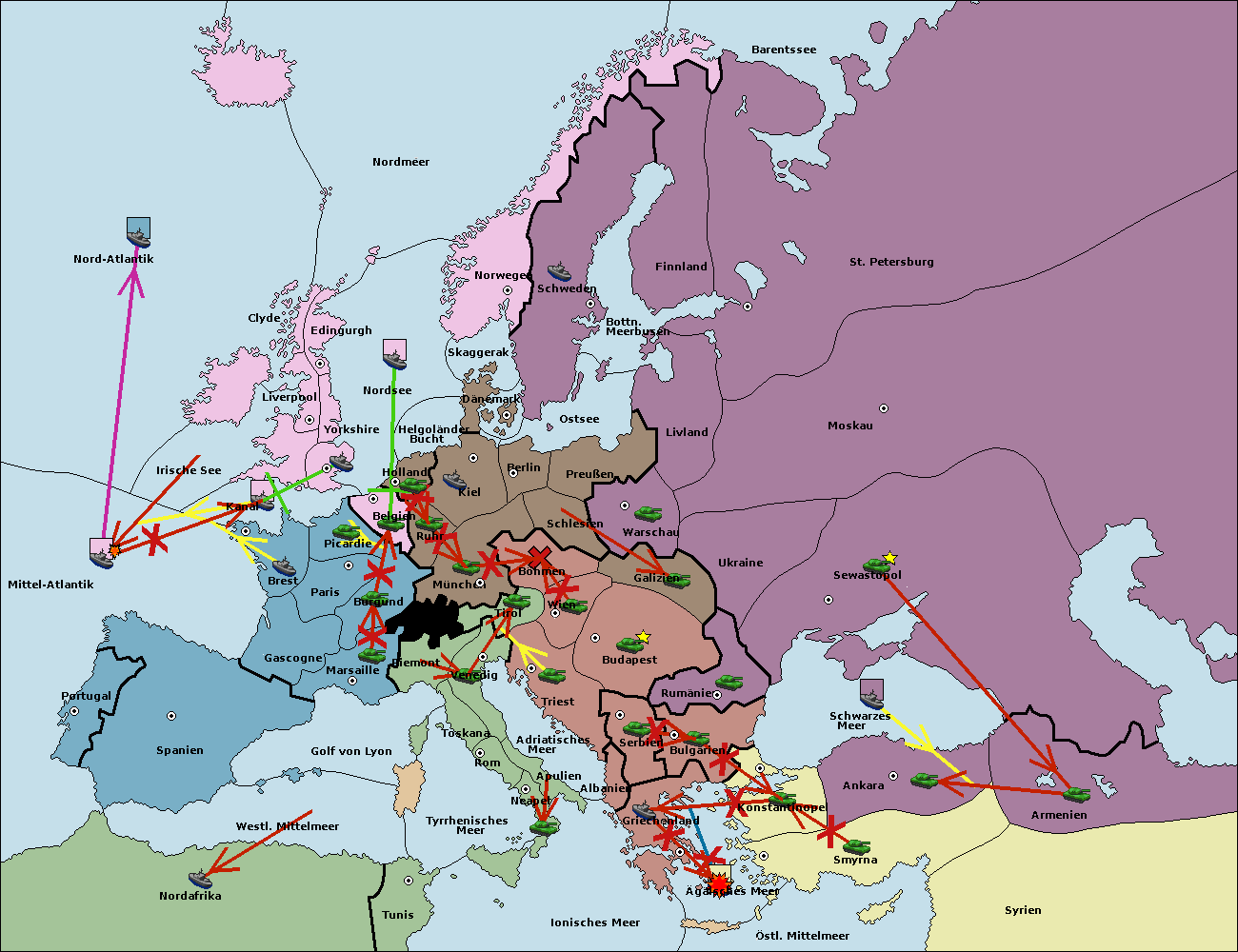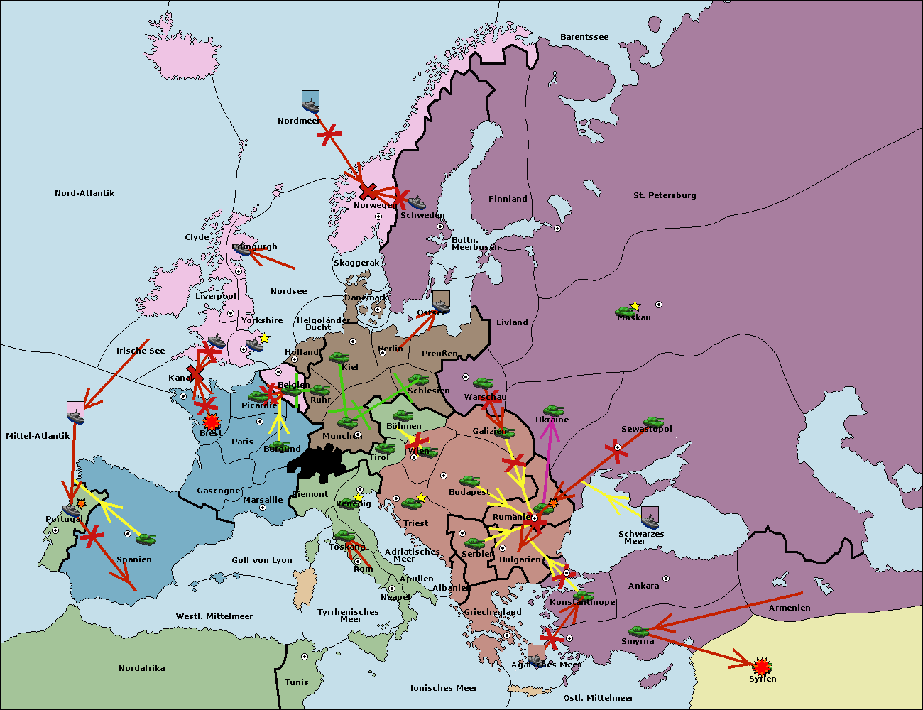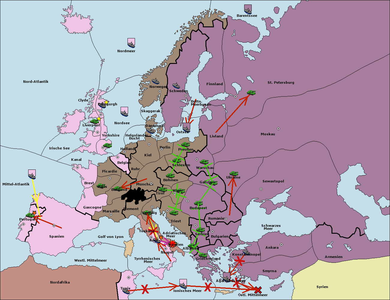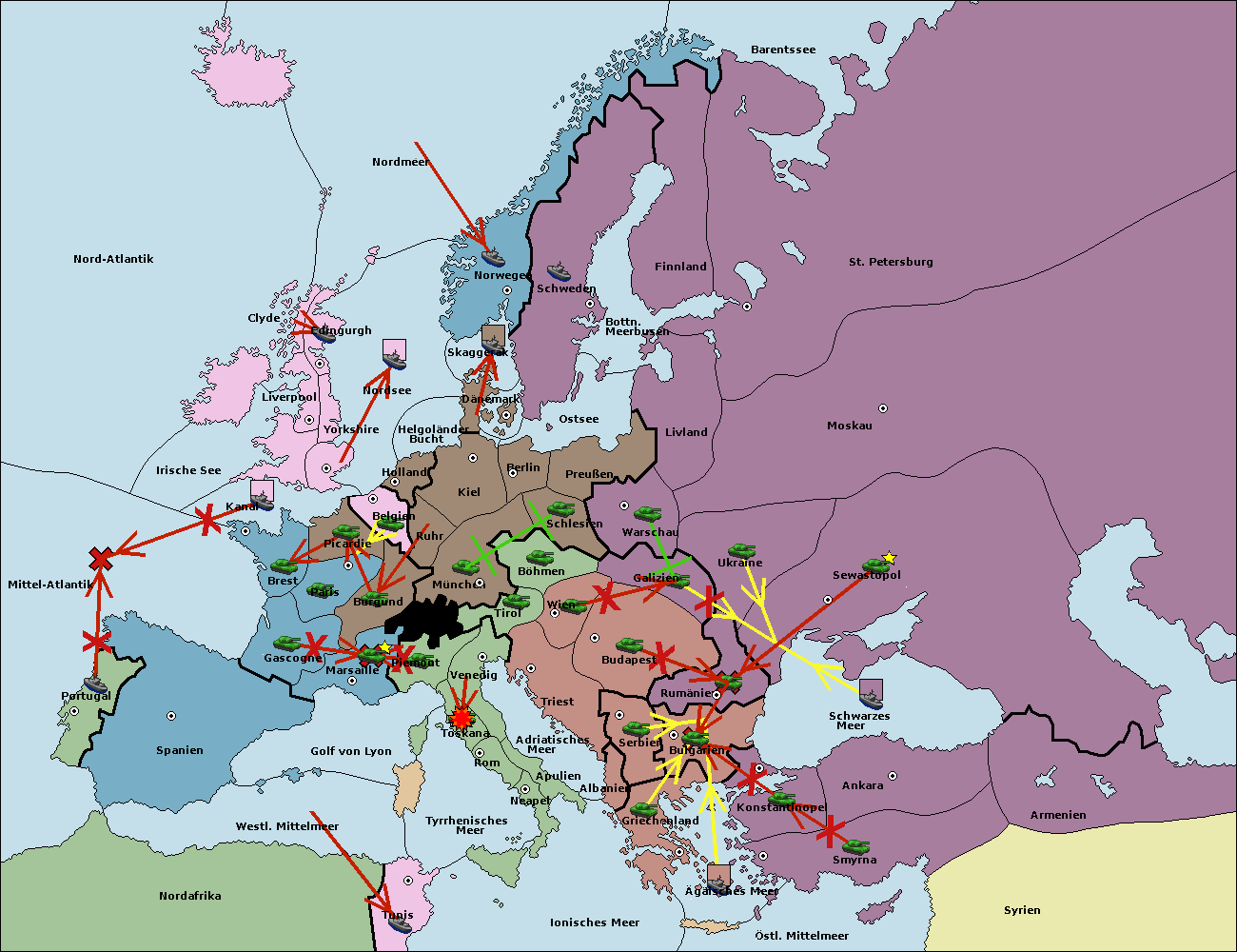 • Die Armee in Bulgarien wird zerstörtFlotte in Bulgarien gebaut.