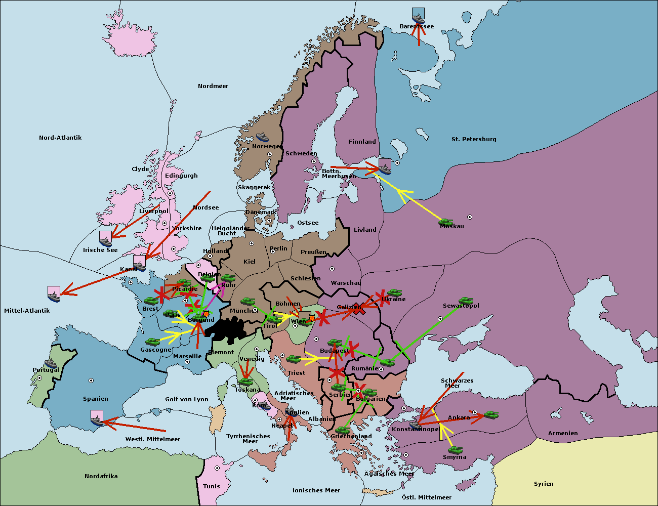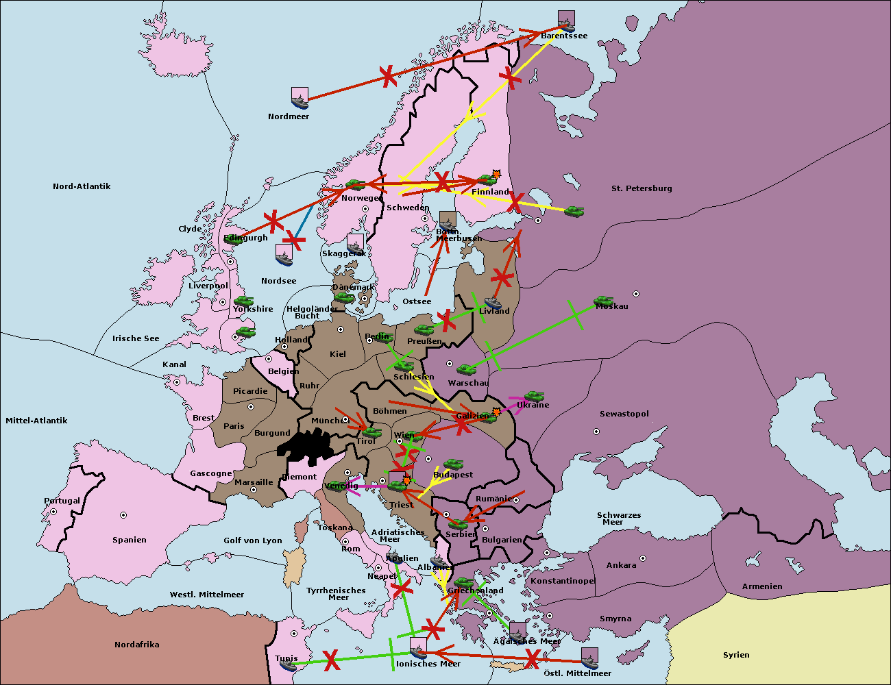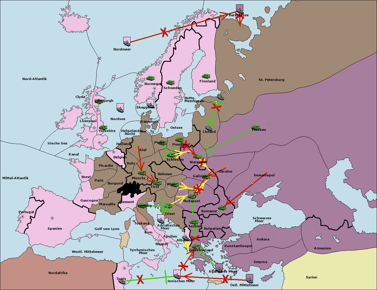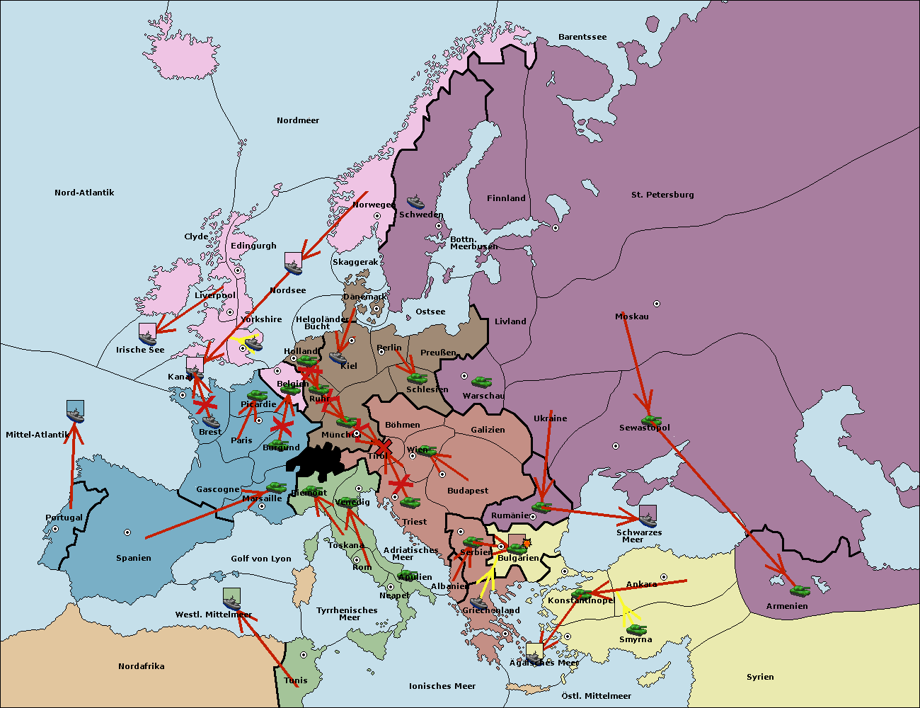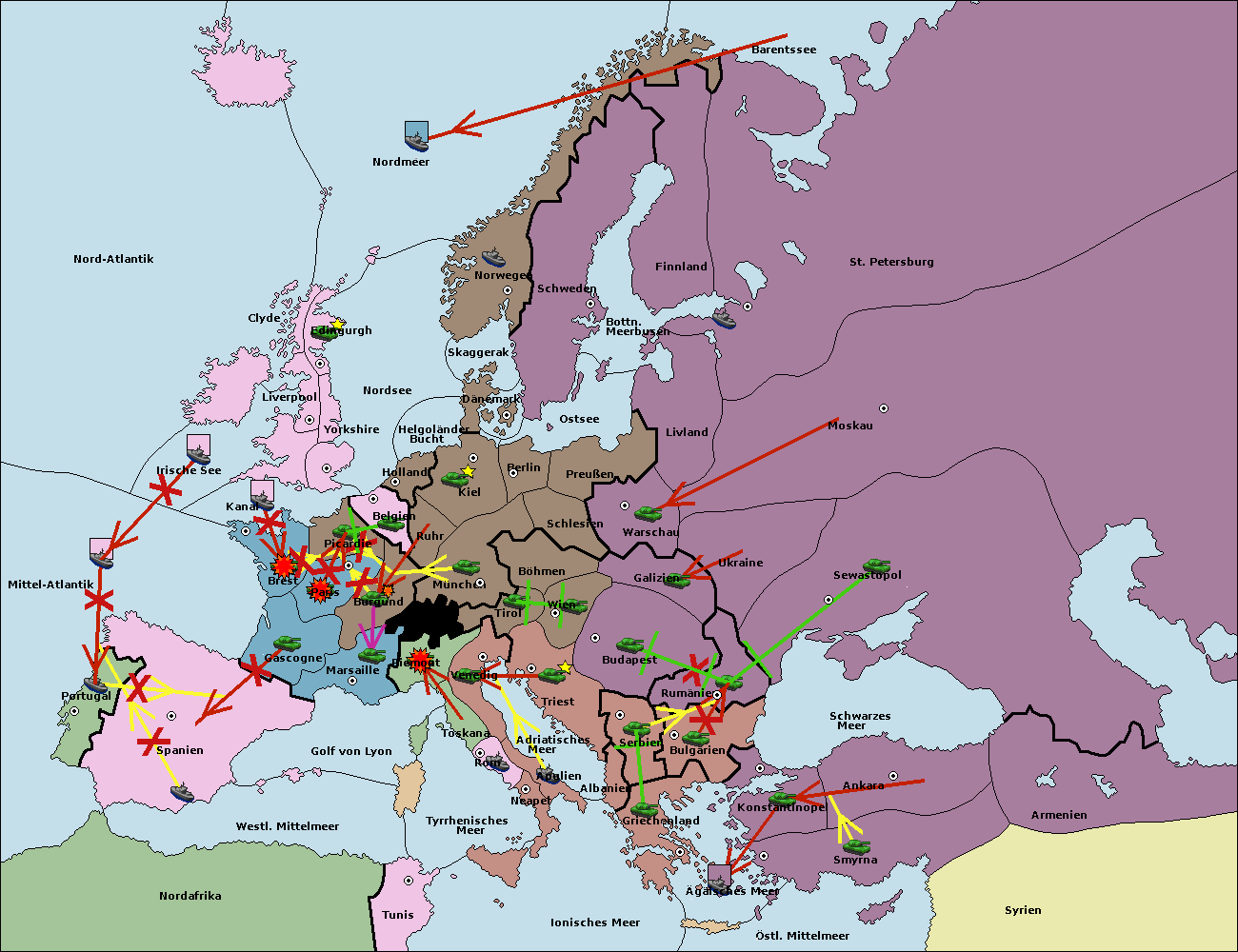 • Die Armee in Bulgarien wird zerstörtFlotte in Bulgarien gebaut.