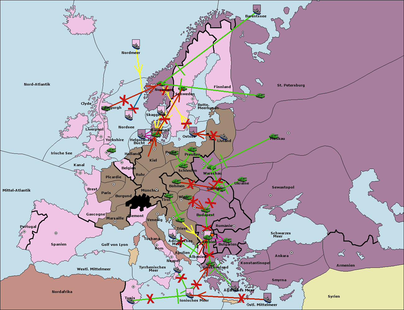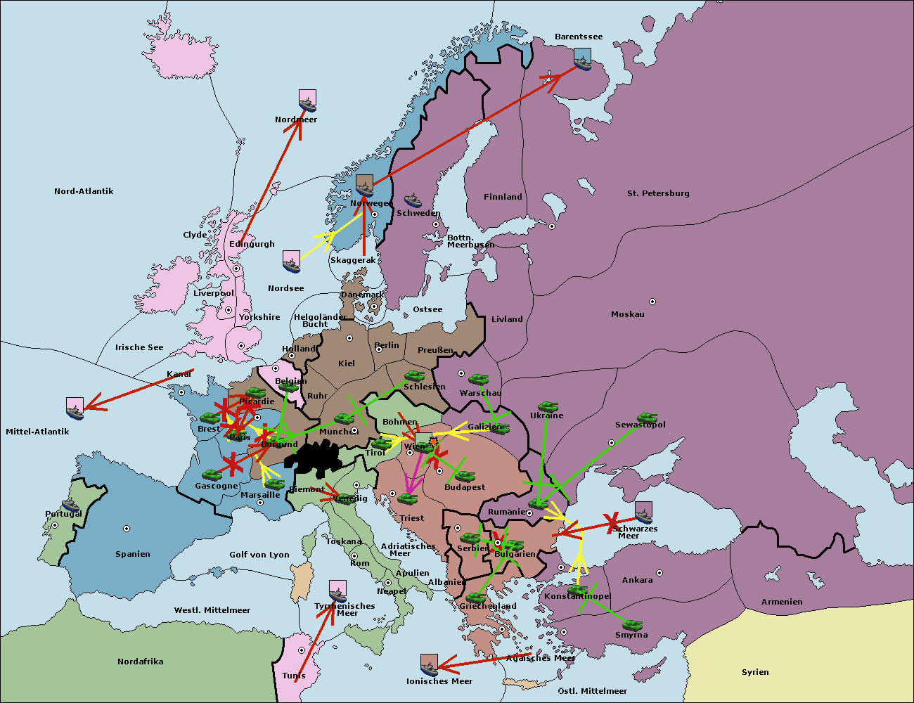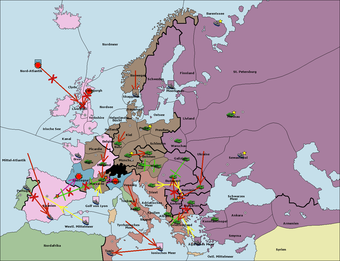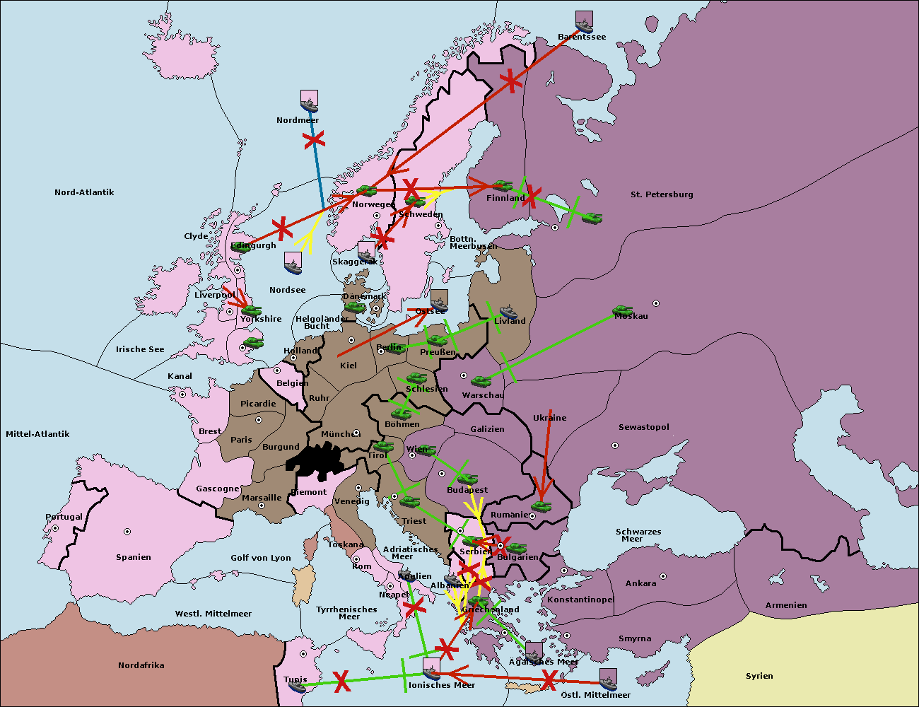 • Die Armee in Bulgarien wird zerstörtFlotte in Bulgarien gebaut.