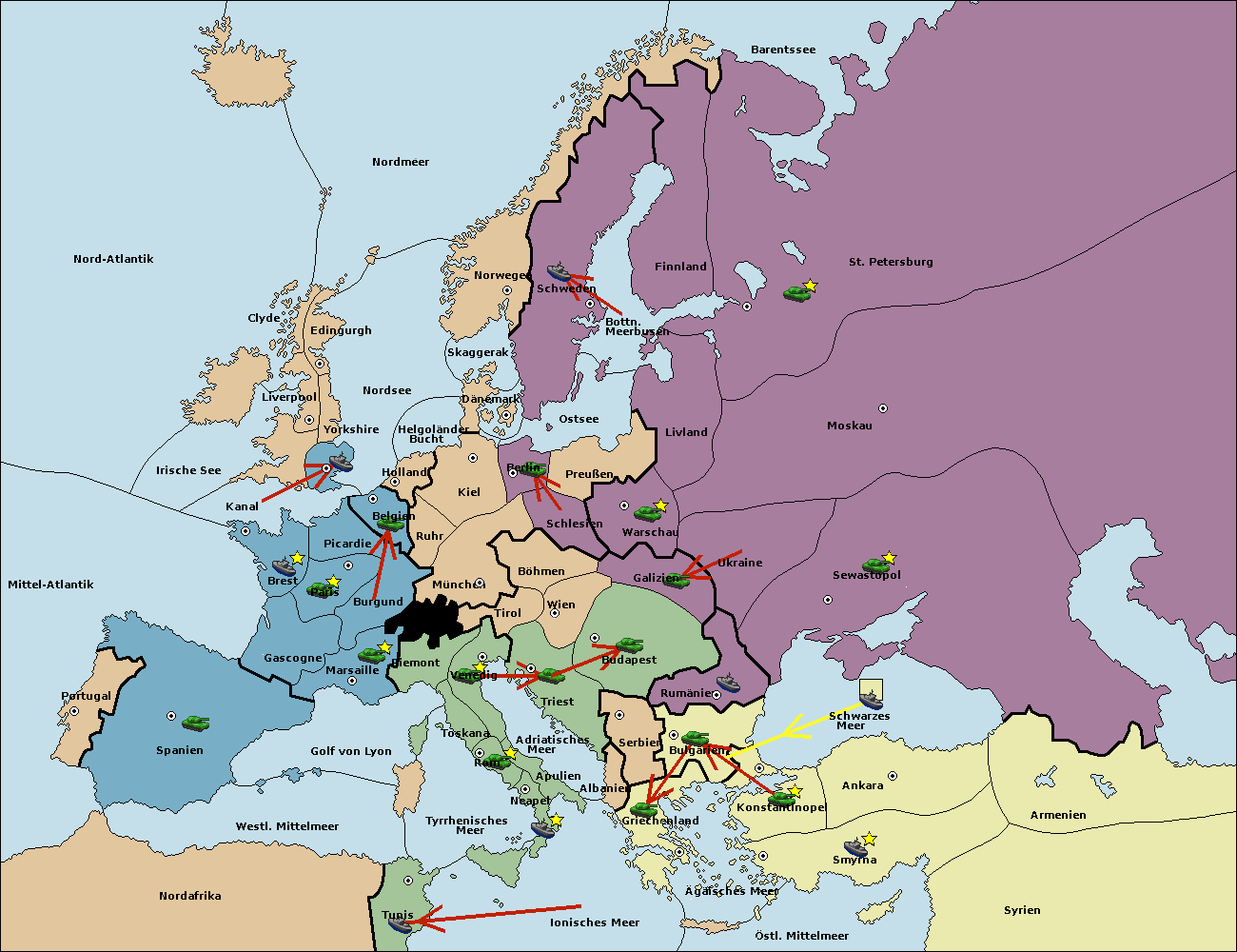 • Die Flotte in Konstantinopel support hold nach Bulgarien.