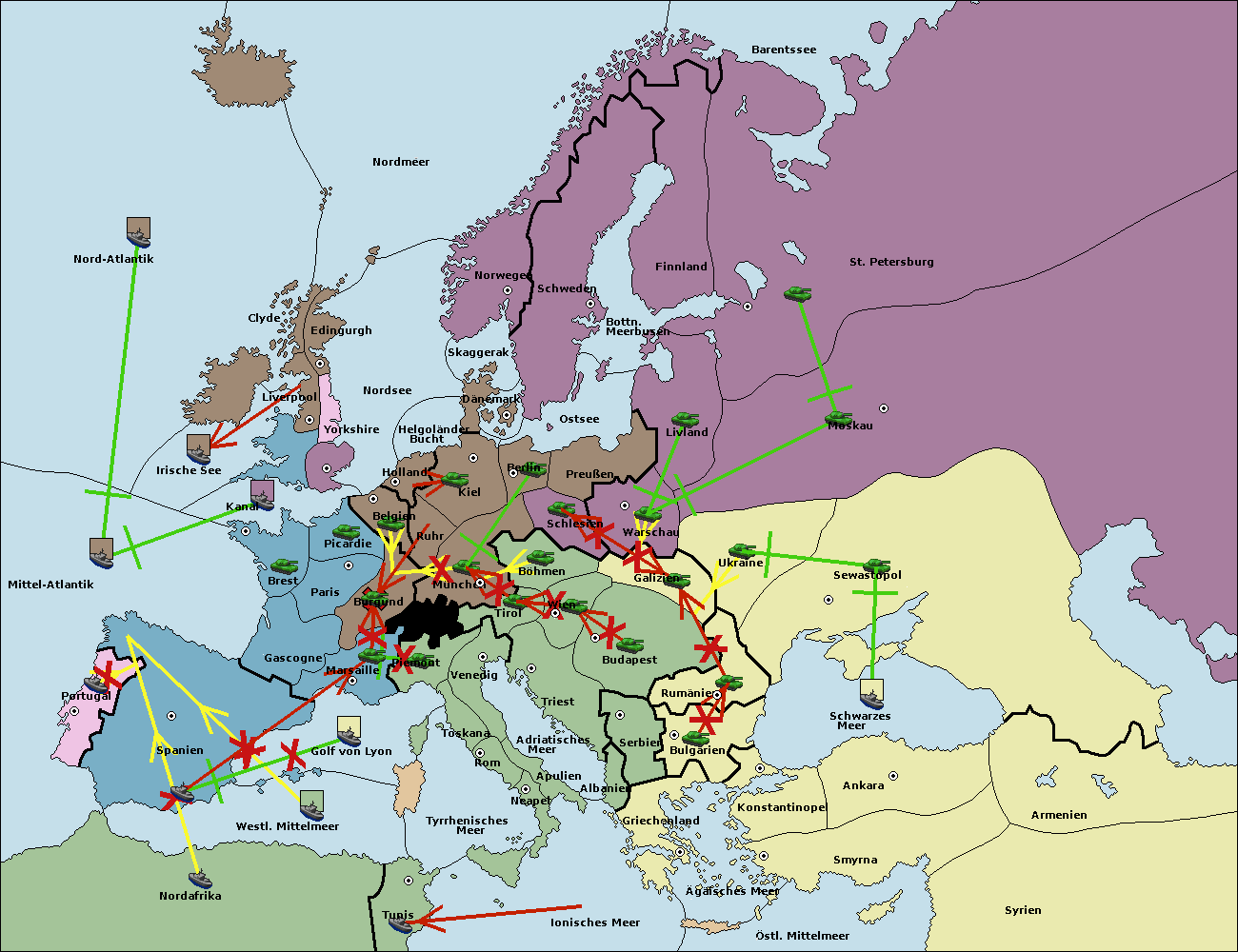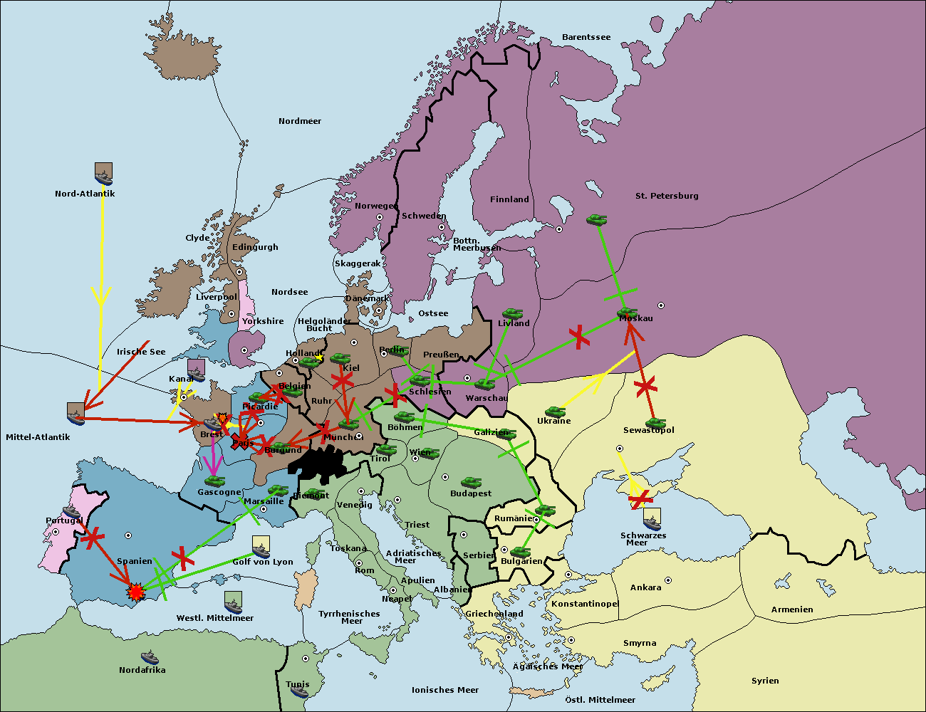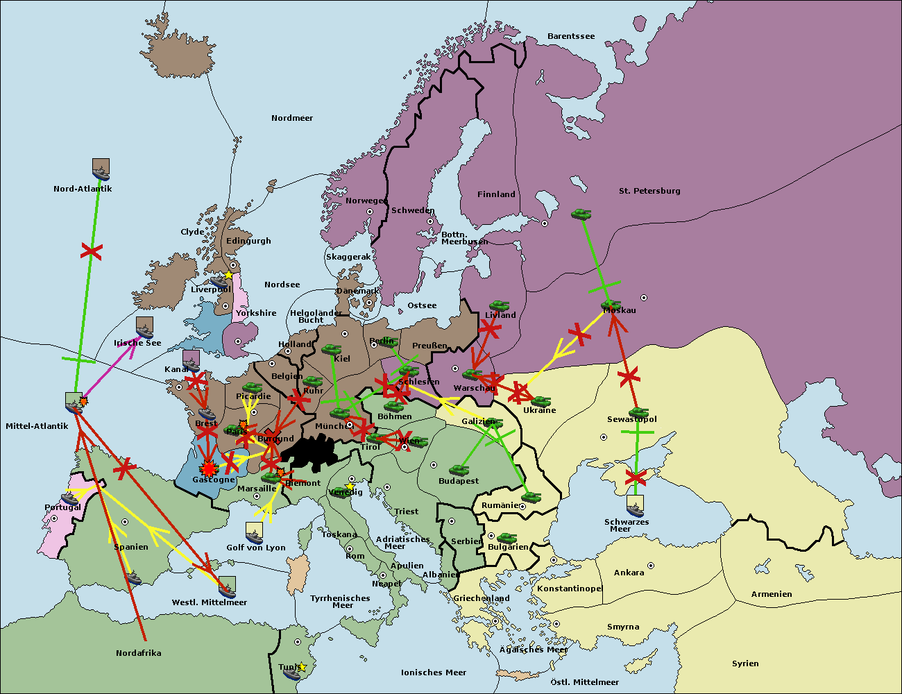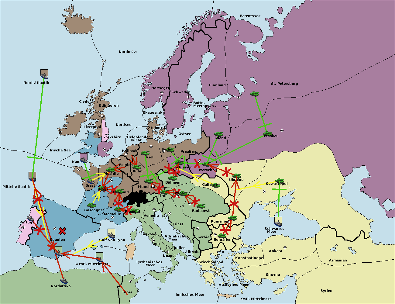 • Die Flotte in Spanien (Südküste) support move nach Mittel-Atlantik von westl. Mittelmeer.
