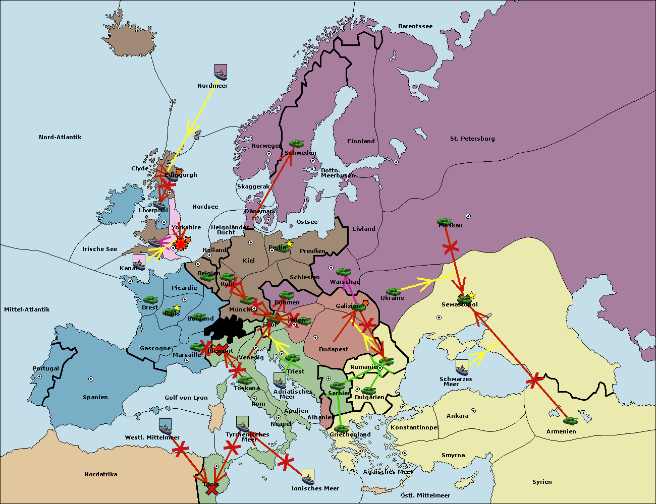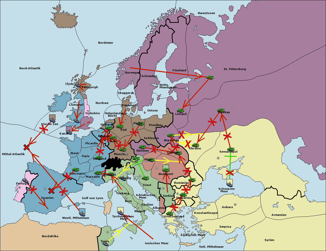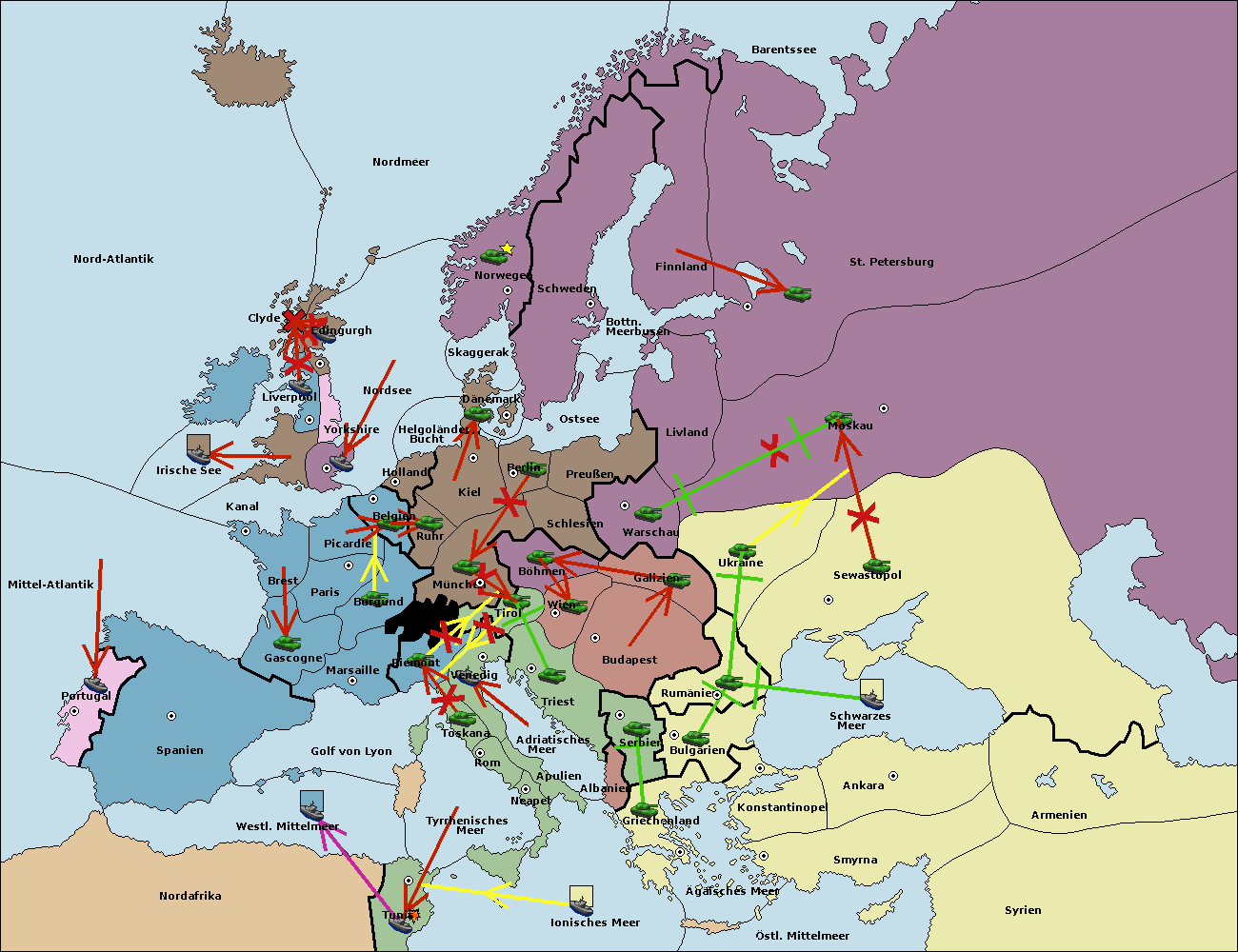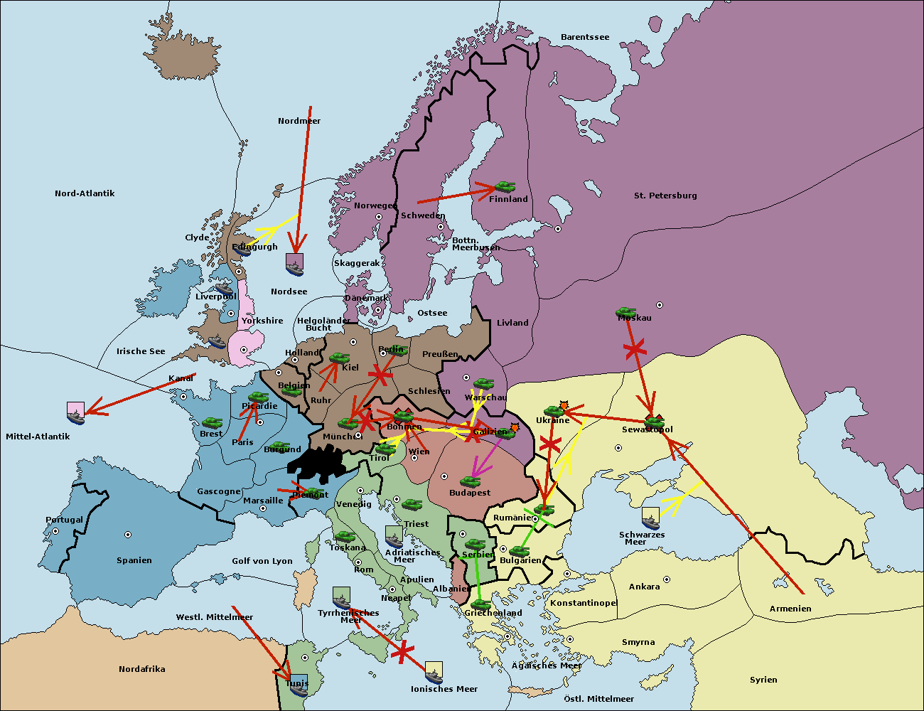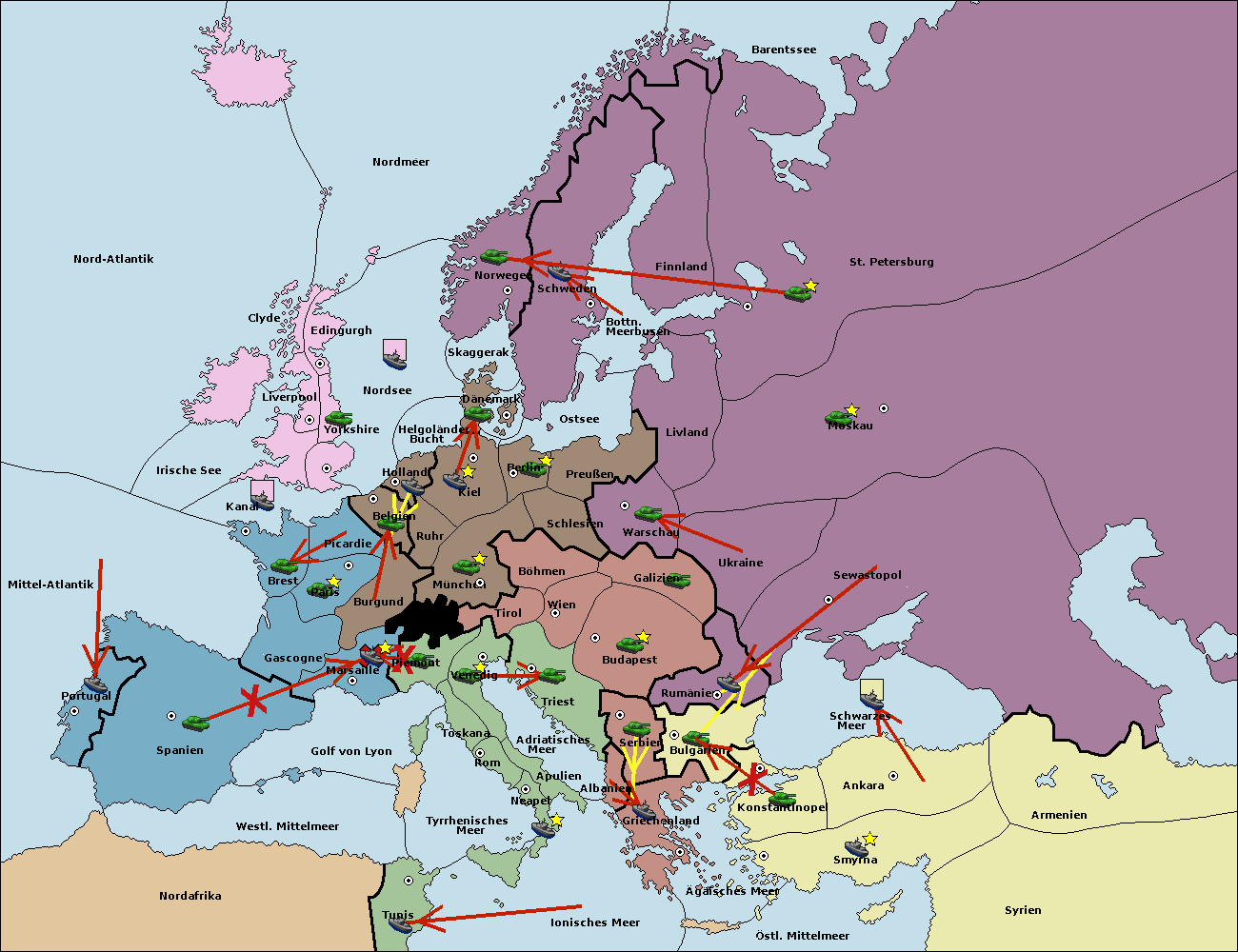 • Die Flotte in Spanien (Südküste) support move nach Mittel-Atlantik von westl. Mittelmeer.