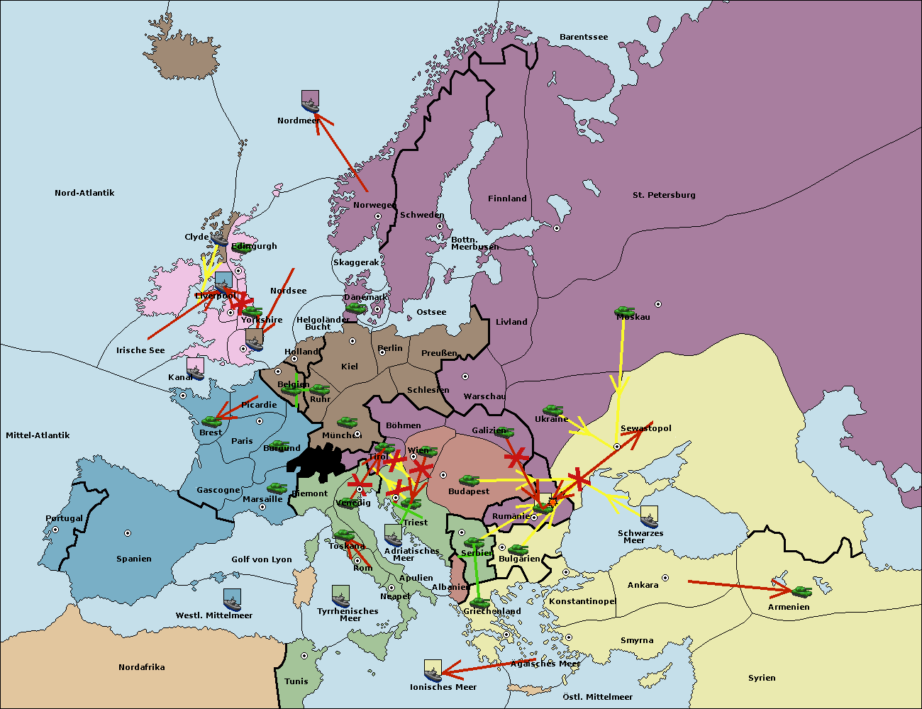 • Die Armee in Konstantinopel support hold nach Bulgarien.