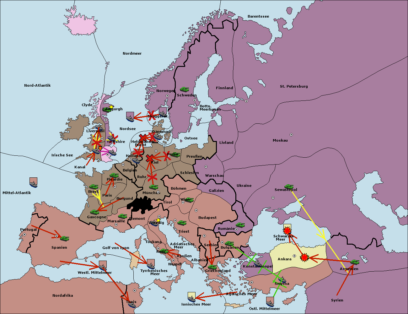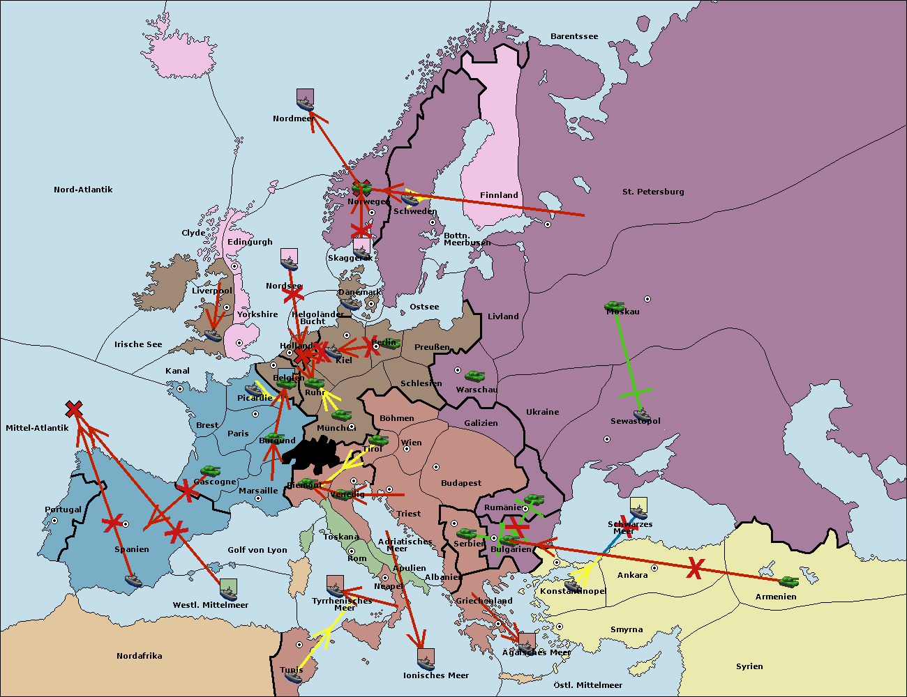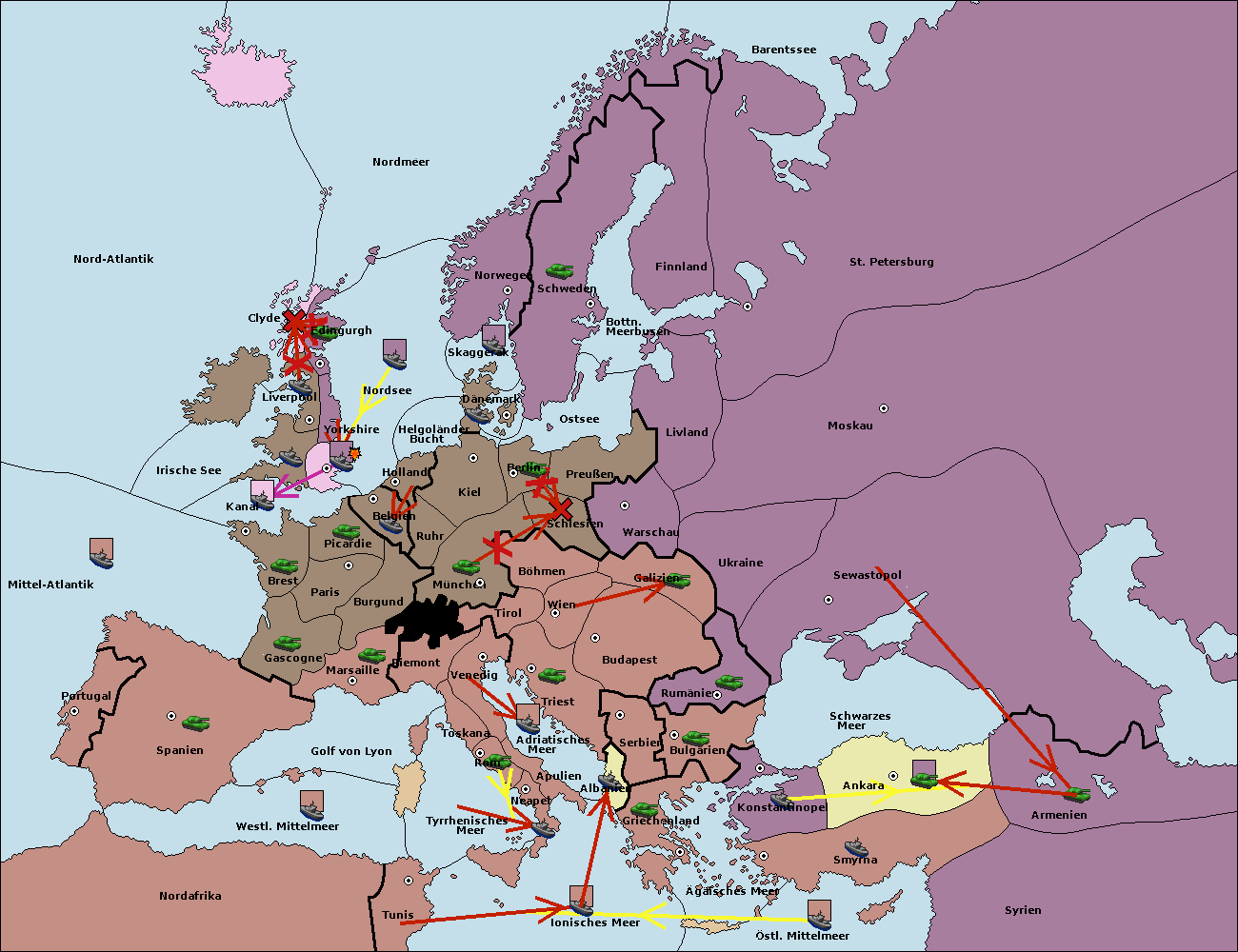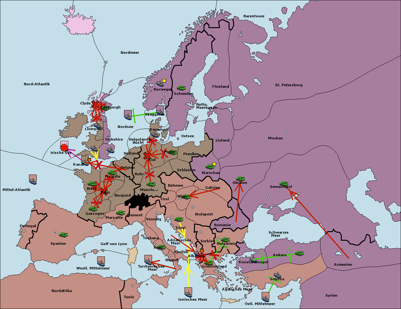 • Die Armee in Bulgarien wird zerstörtFlotte in Bulgarien gebaut.