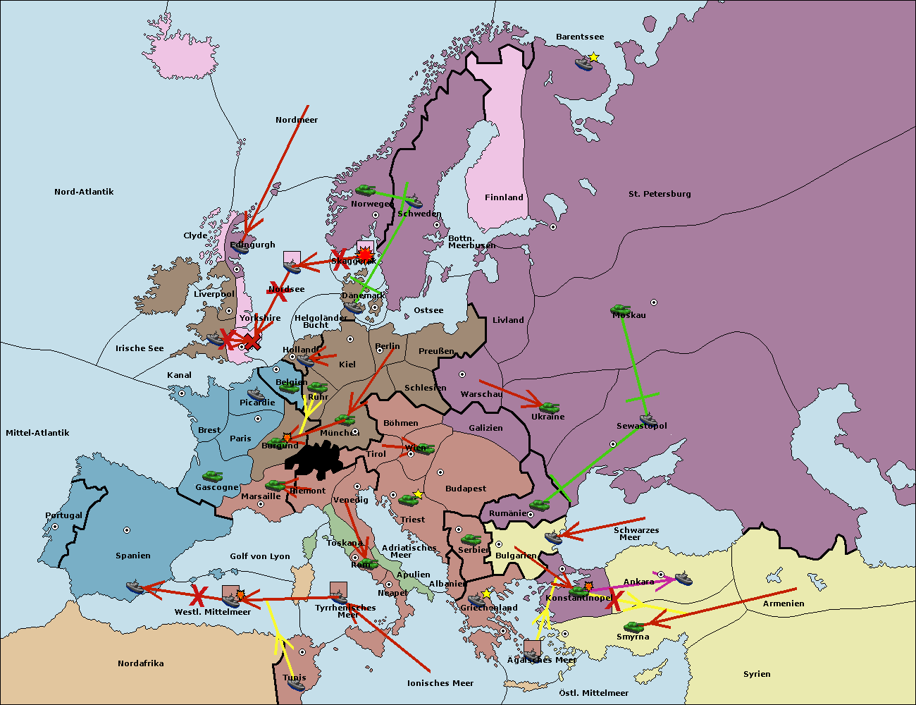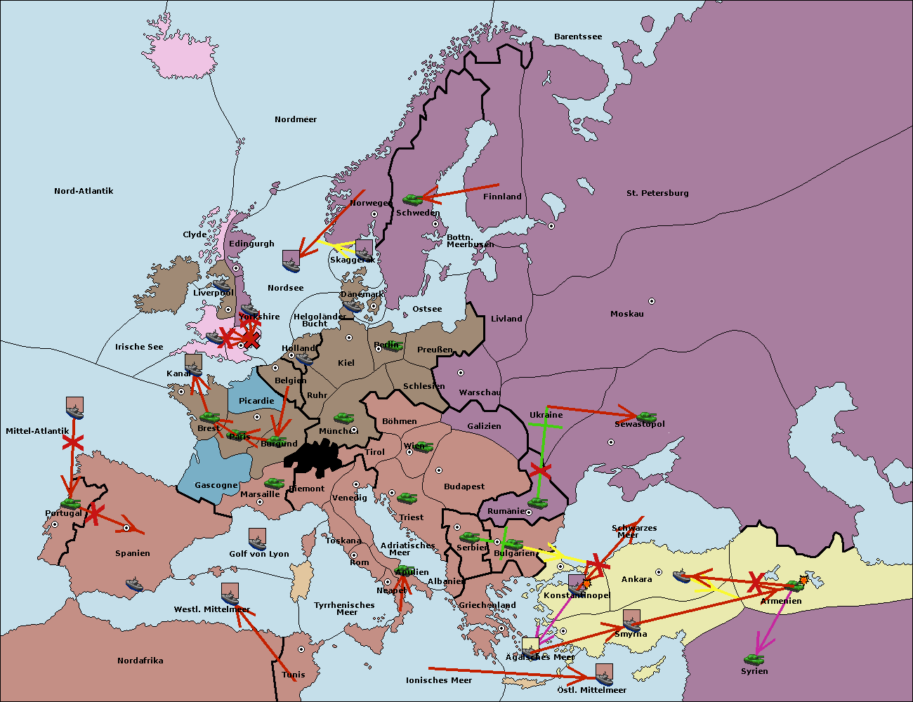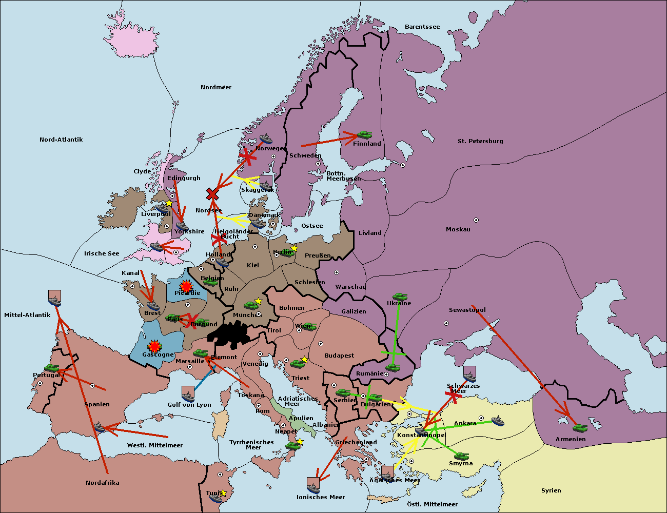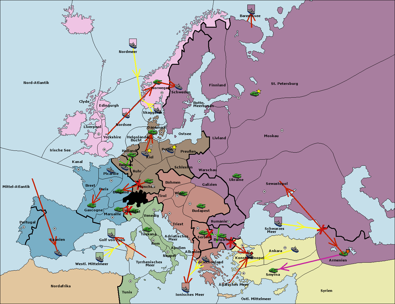 • Die Armee in Bulgarien wird zerstörtFlotte in Bulgarien gebaut.