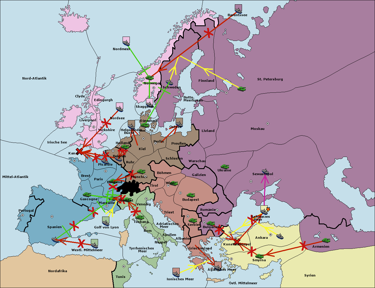 • Die Flotte in Schwarzes Meer support move nach Konstantinopel von Bulgarien. (gescheitert) (verdrängt)