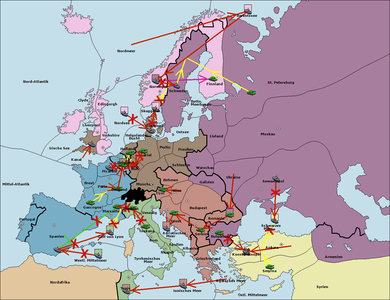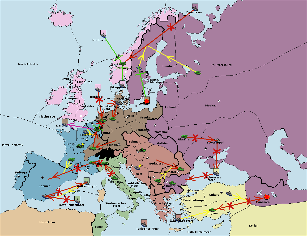 • Die Flotte in St. Petersburg (Nordküste) move nach Barentssee.
