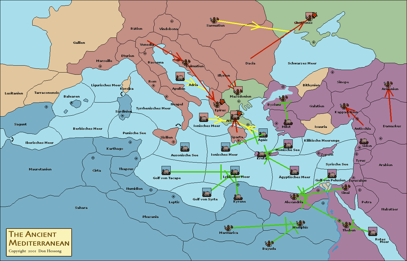 • Die Armee in Epirus wird zerstörtFlotte in Epirus gebaut.
