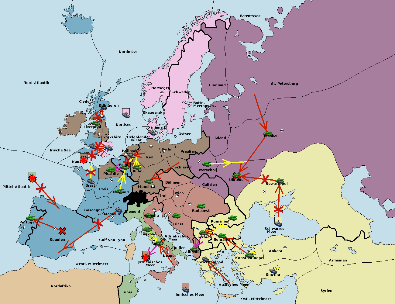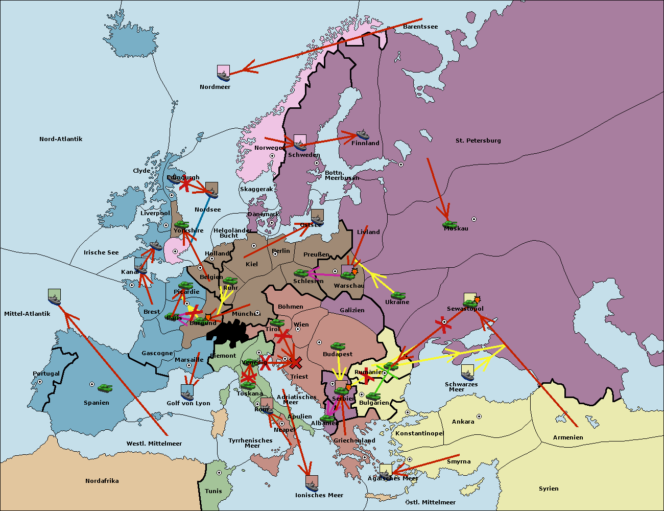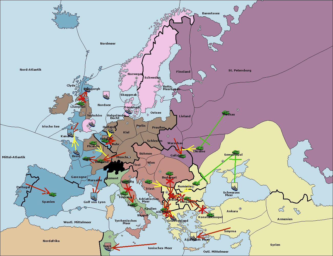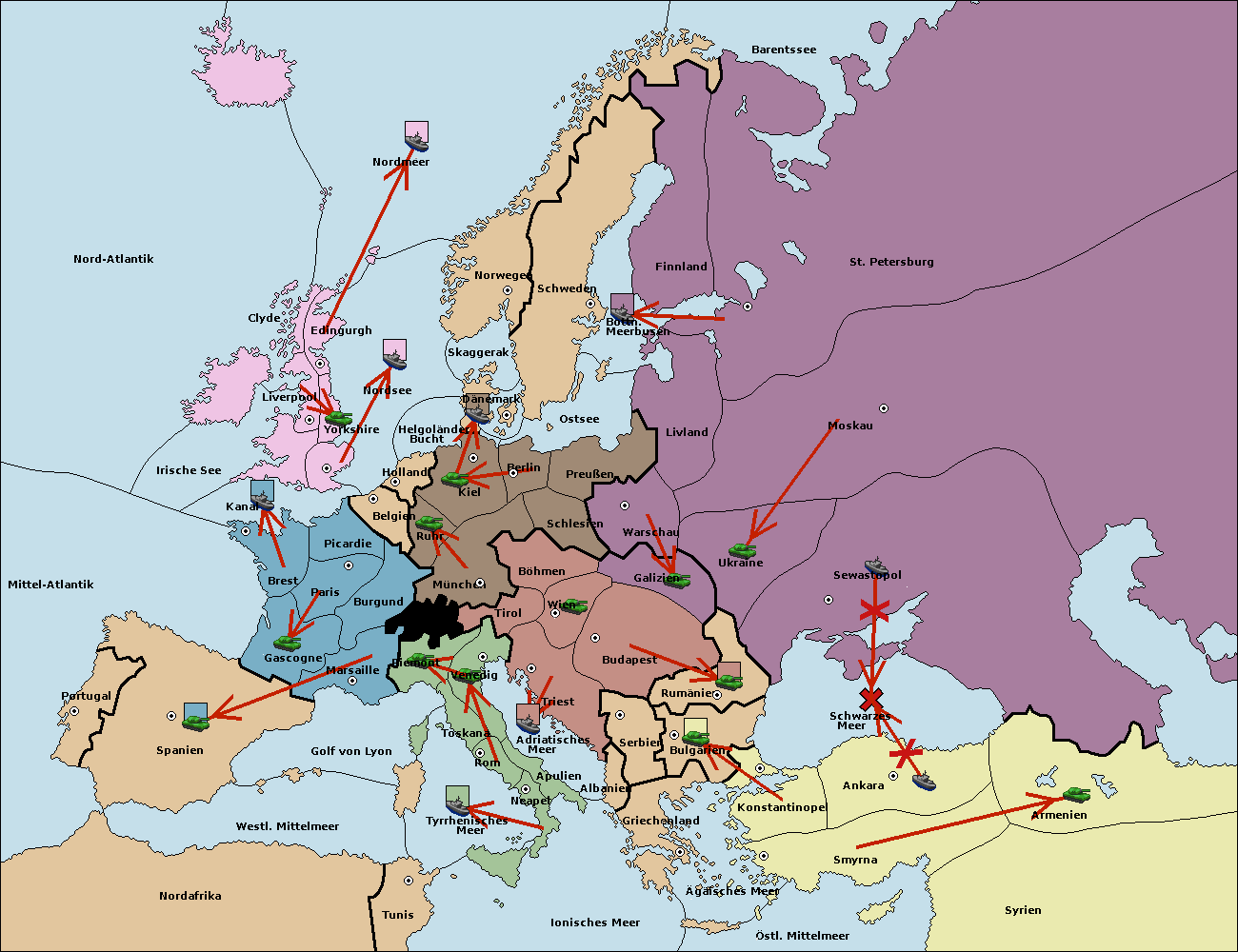 • Die Armee in Konstantinopel support hold nach Bulgarien.