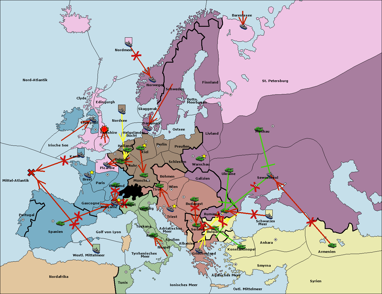 • Die Flotte in St. Petersburg (Nordküste) move nach Norwegen.