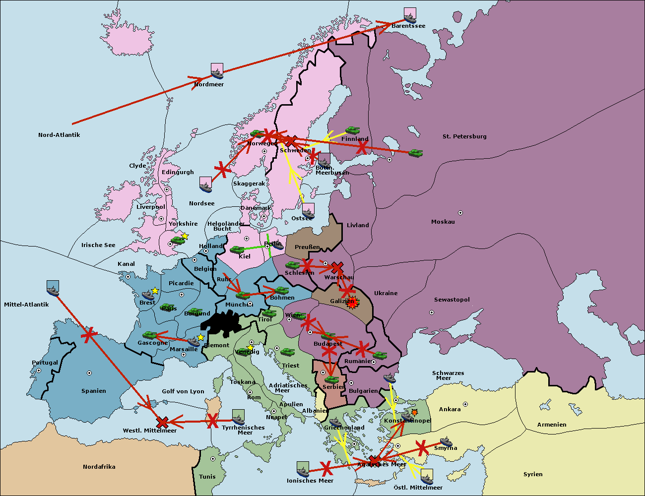 • Die Flotte in Bulgarien (Südküste) move nach Konstantinopel.