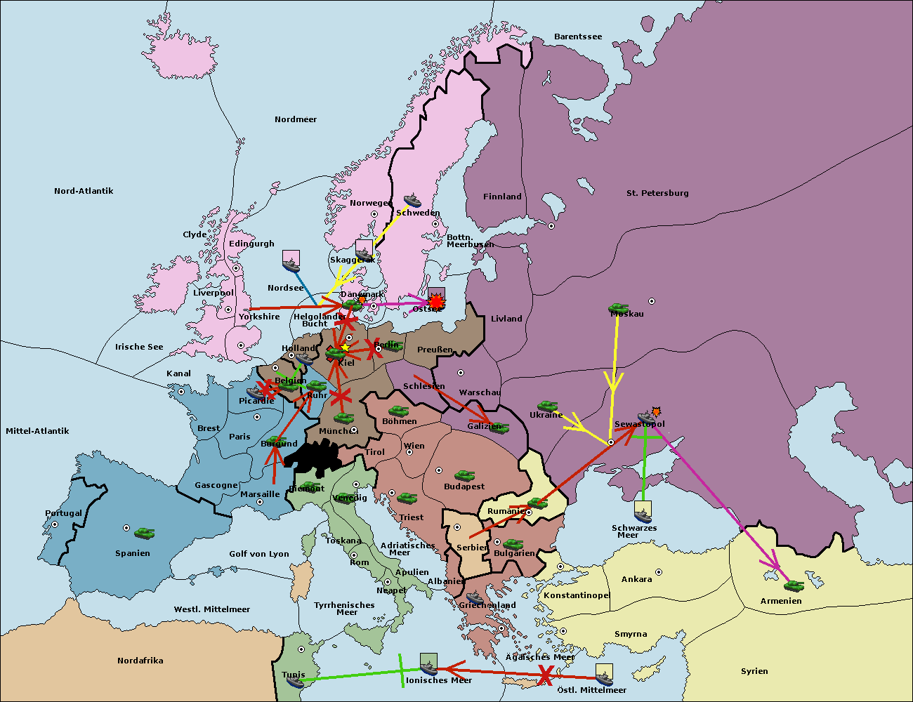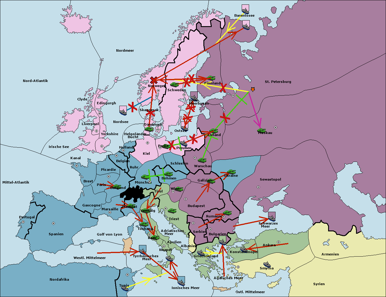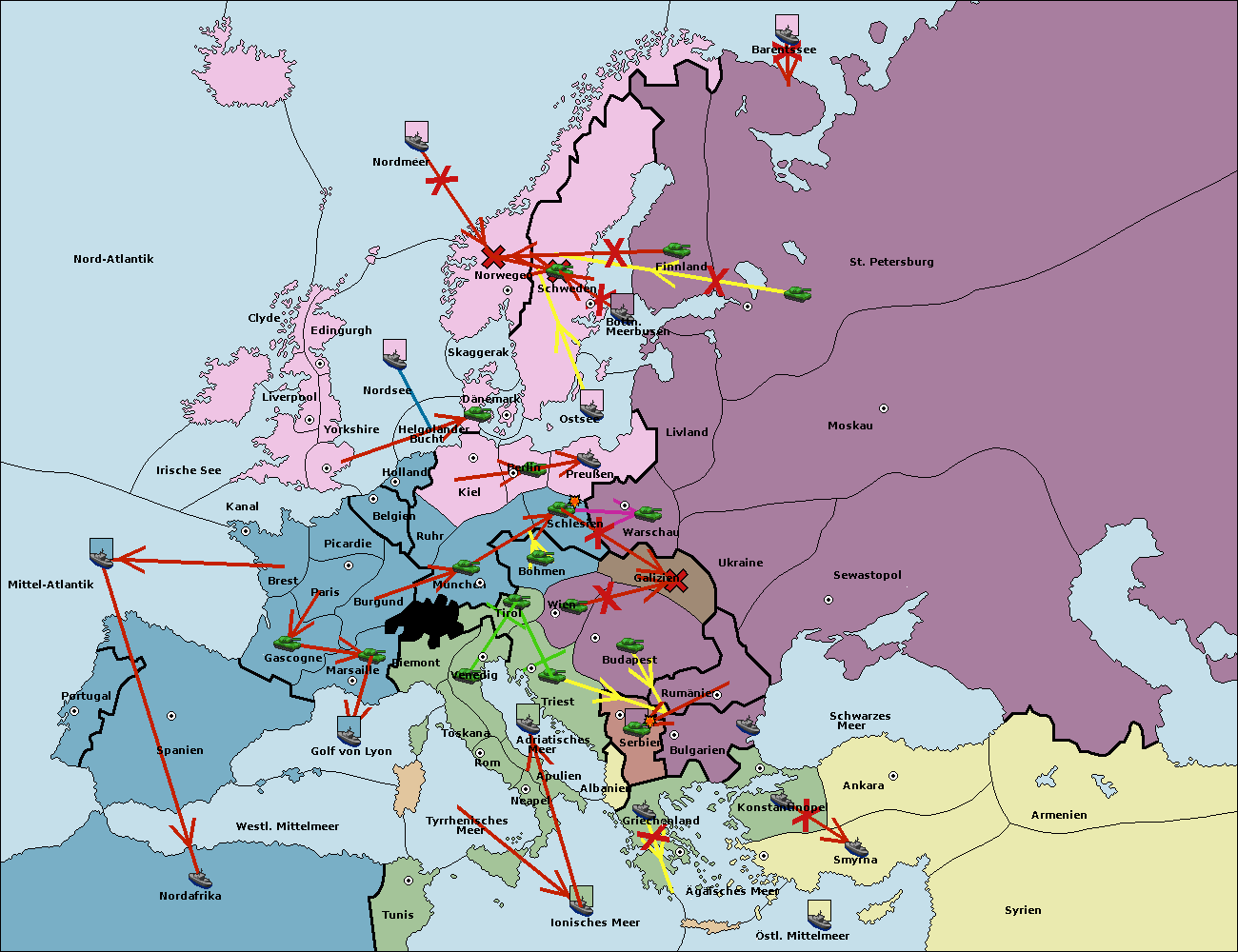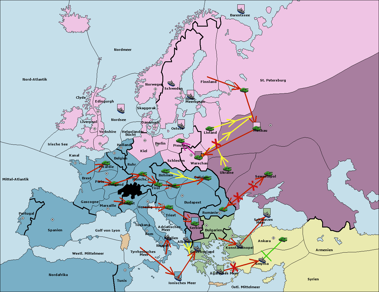 • Die Armee in Warschau support move nach Moskau von St. Petersburg.