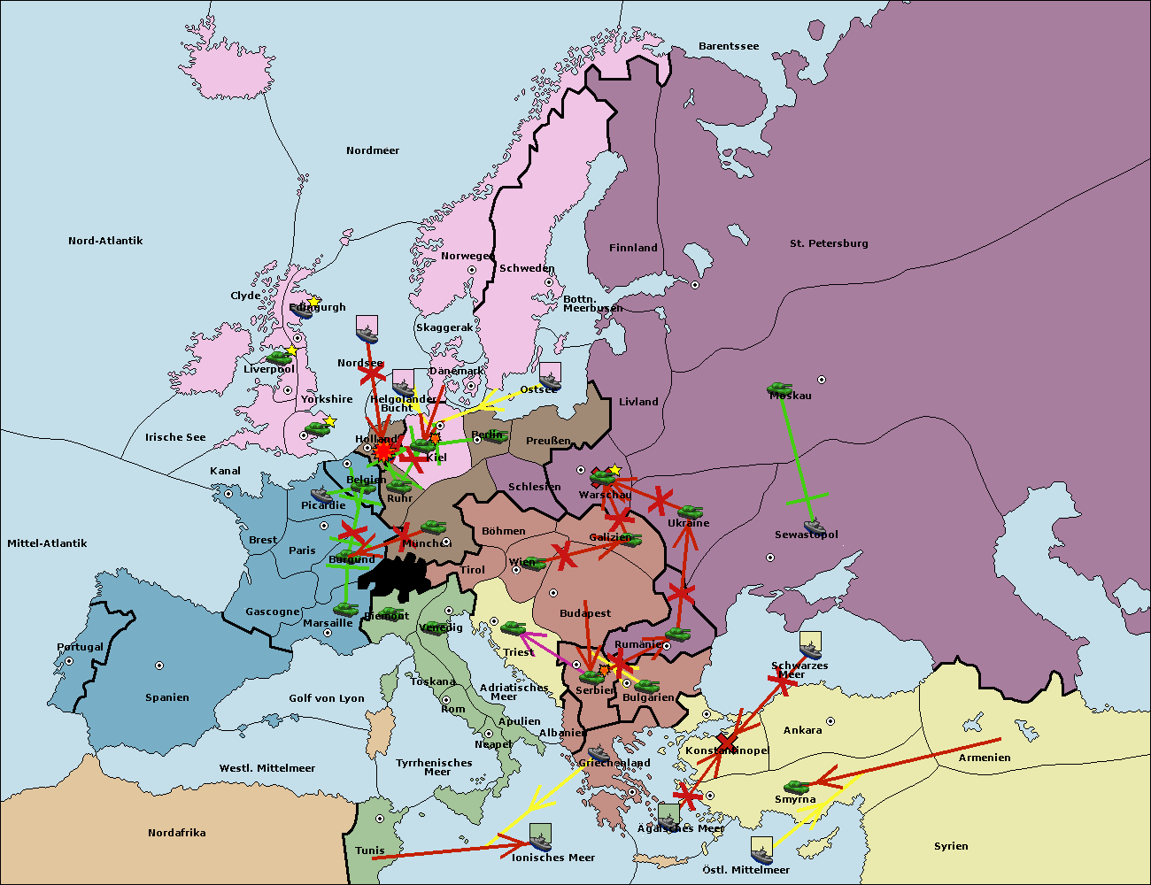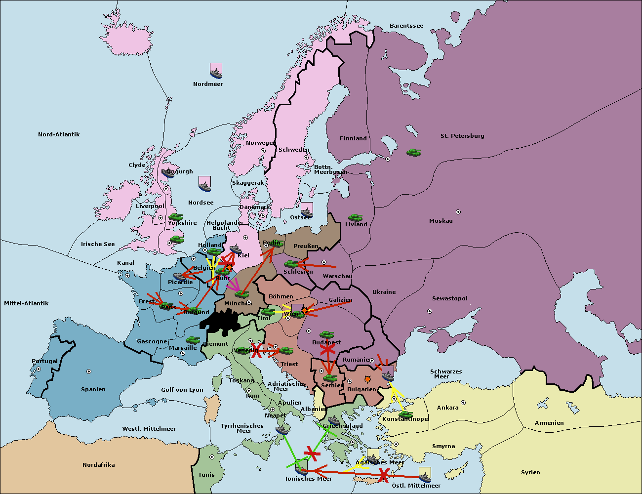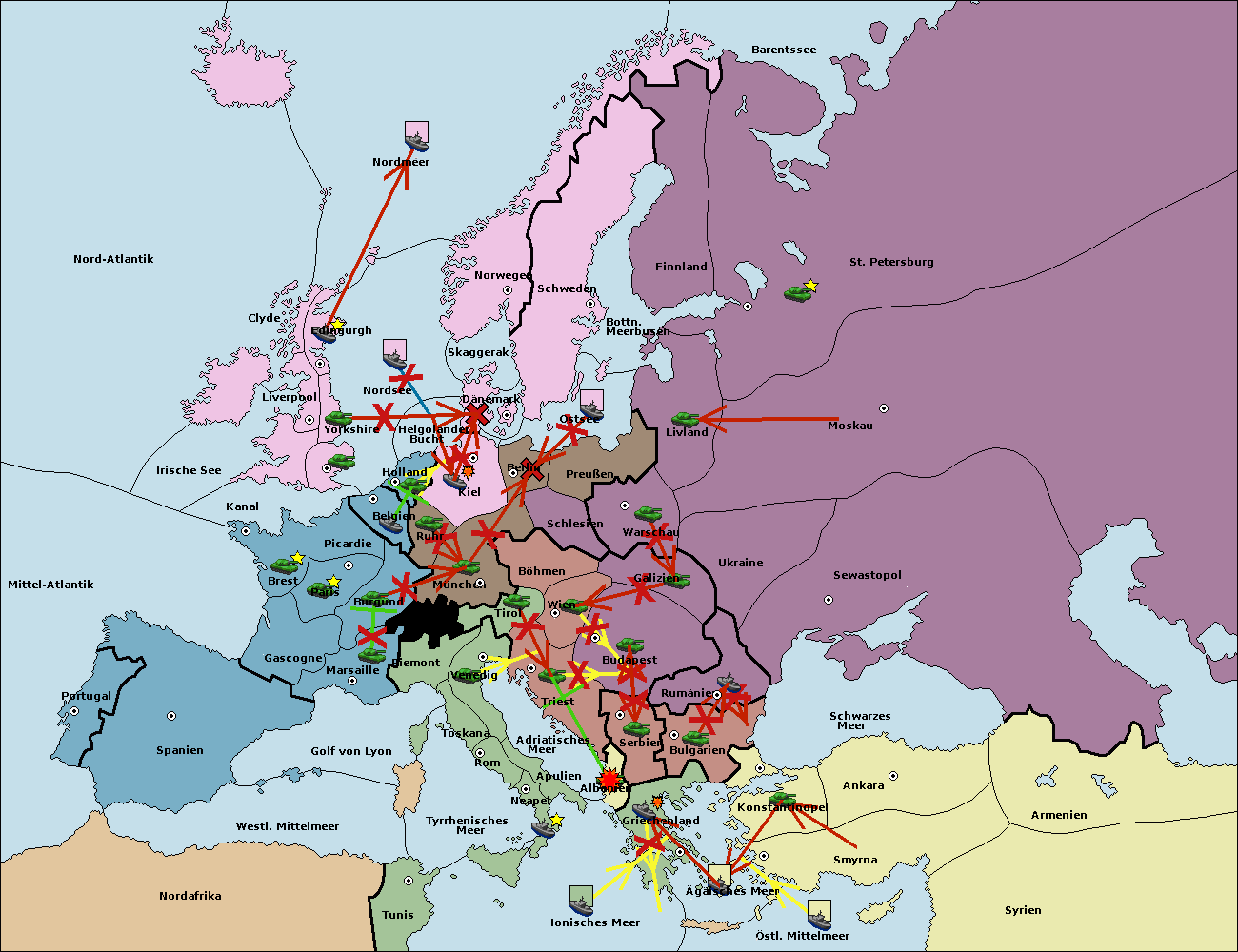 • Die Flotte in Bulgarien (Südküste) support hold nach Konstantinopel.