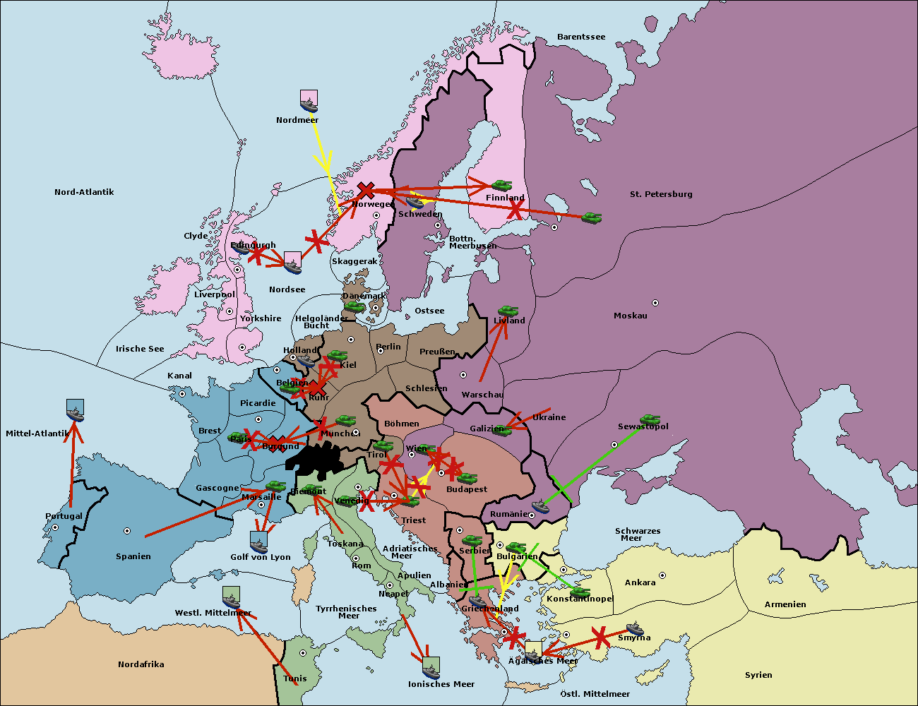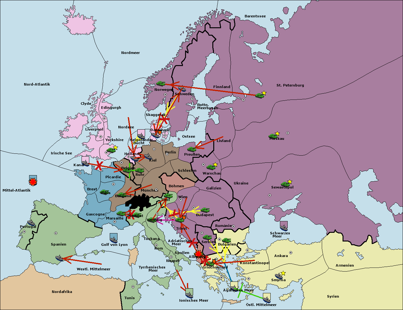 • Die Flotte in St. Petersburg (Nordküste) move nach Norwegen.