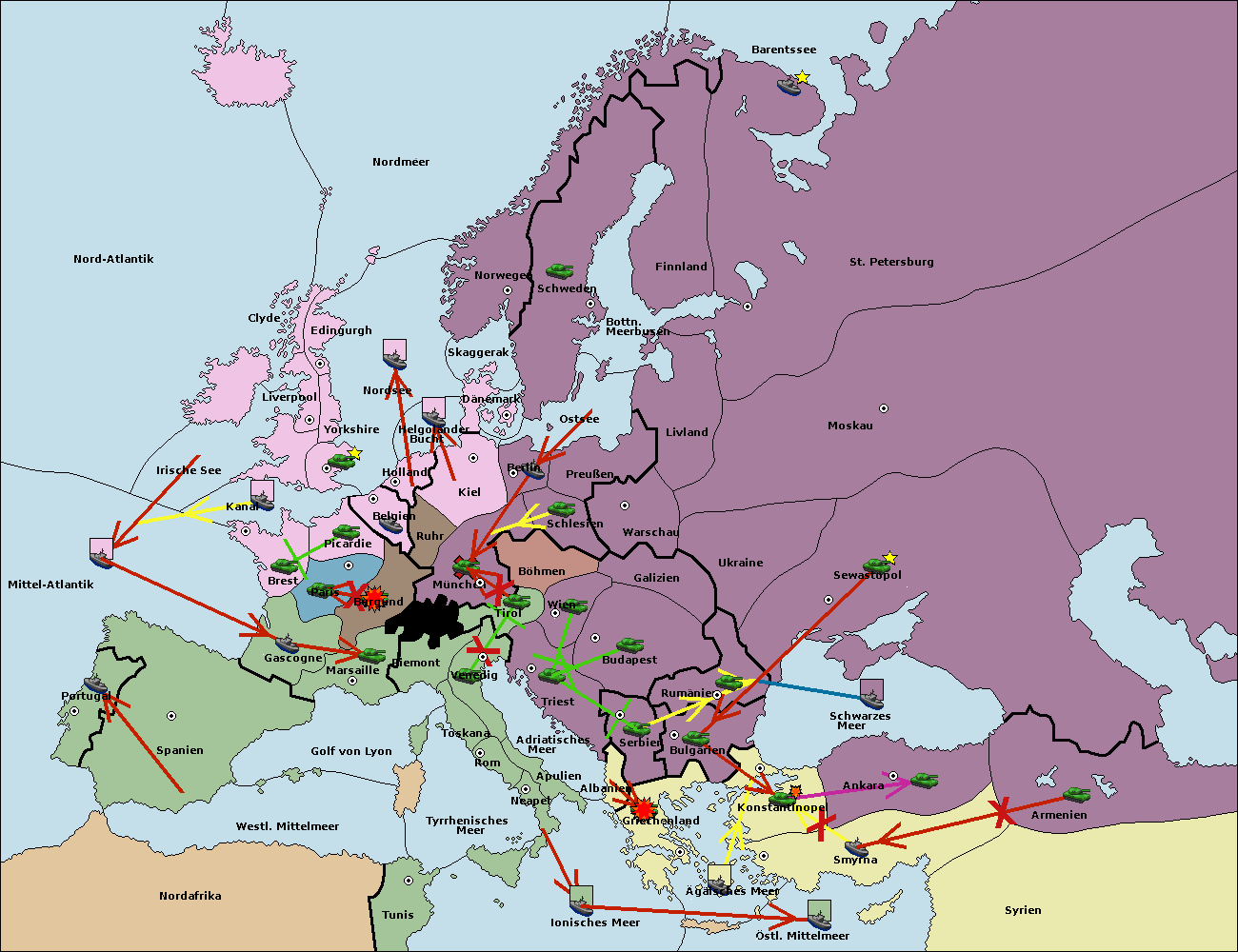 • Die Flotte in Smyrna support hold nach Konstantinopel. (gescheitert)