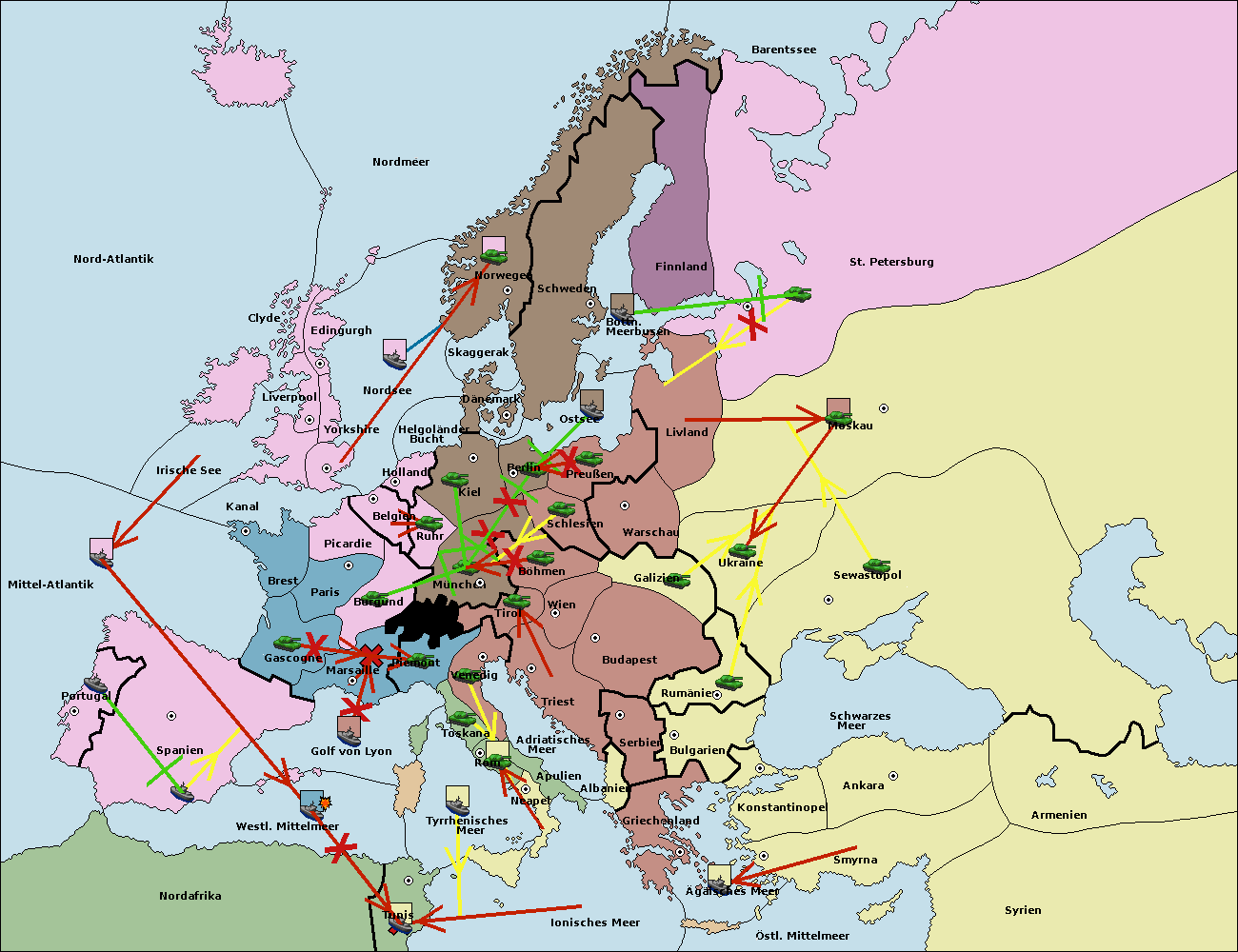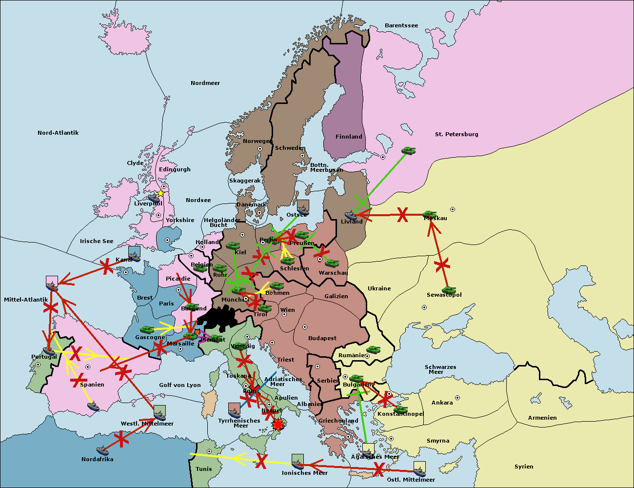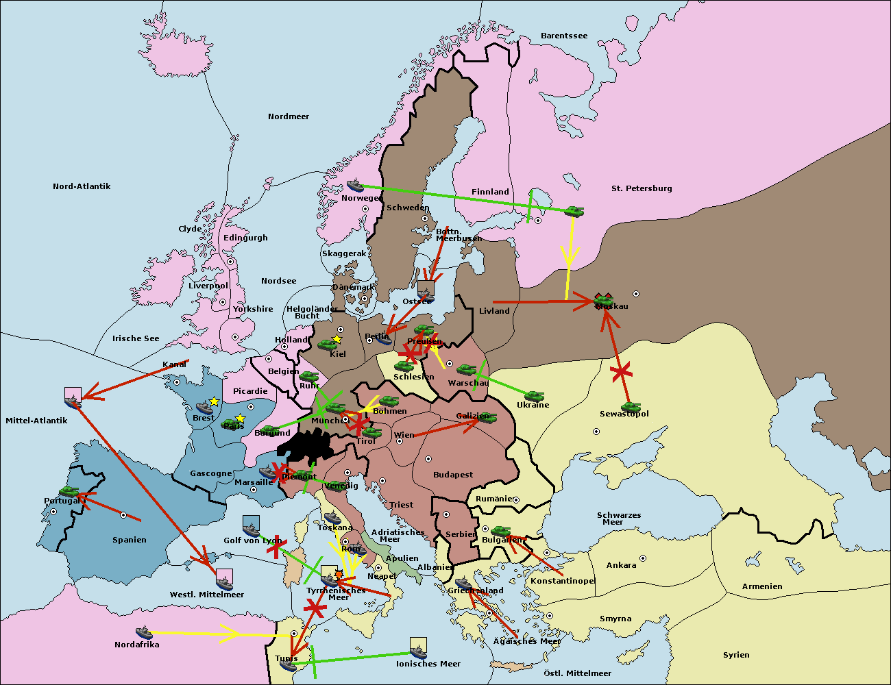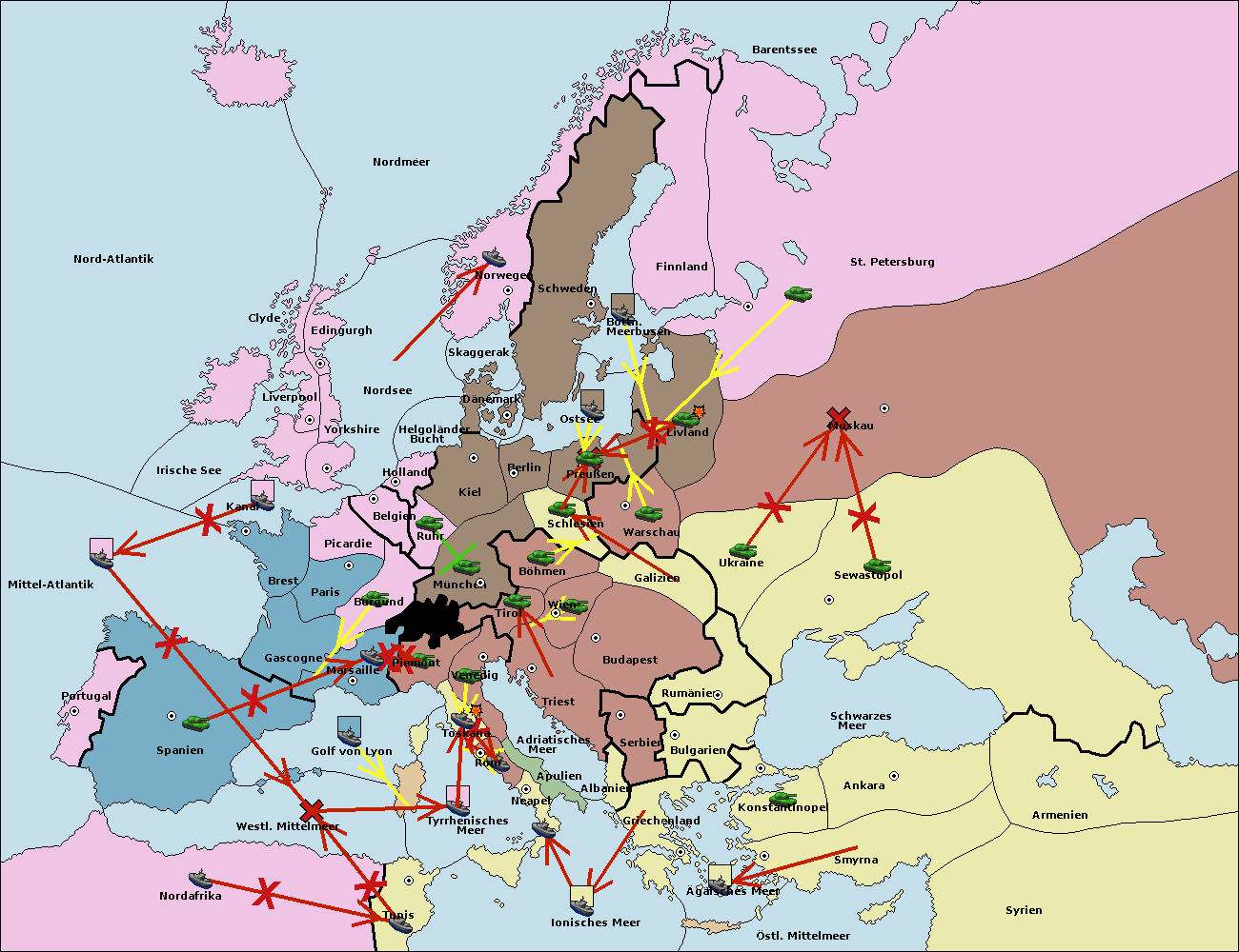 • Die Flotte in Nord Afrika move nach Tunis. (gescheitert)