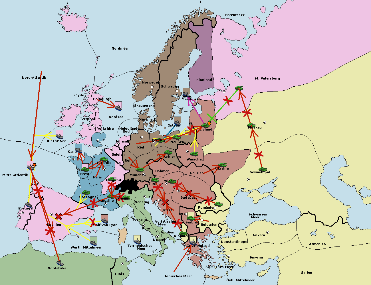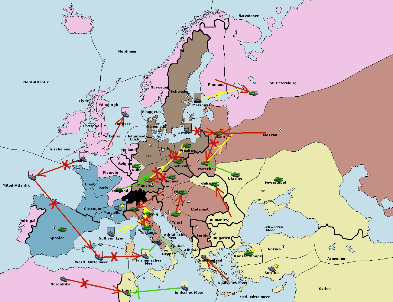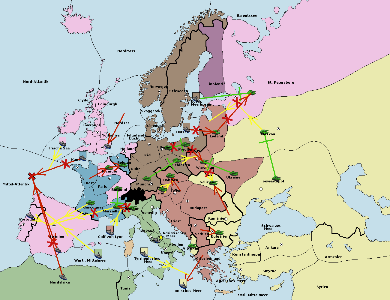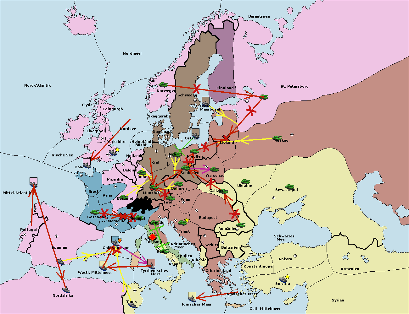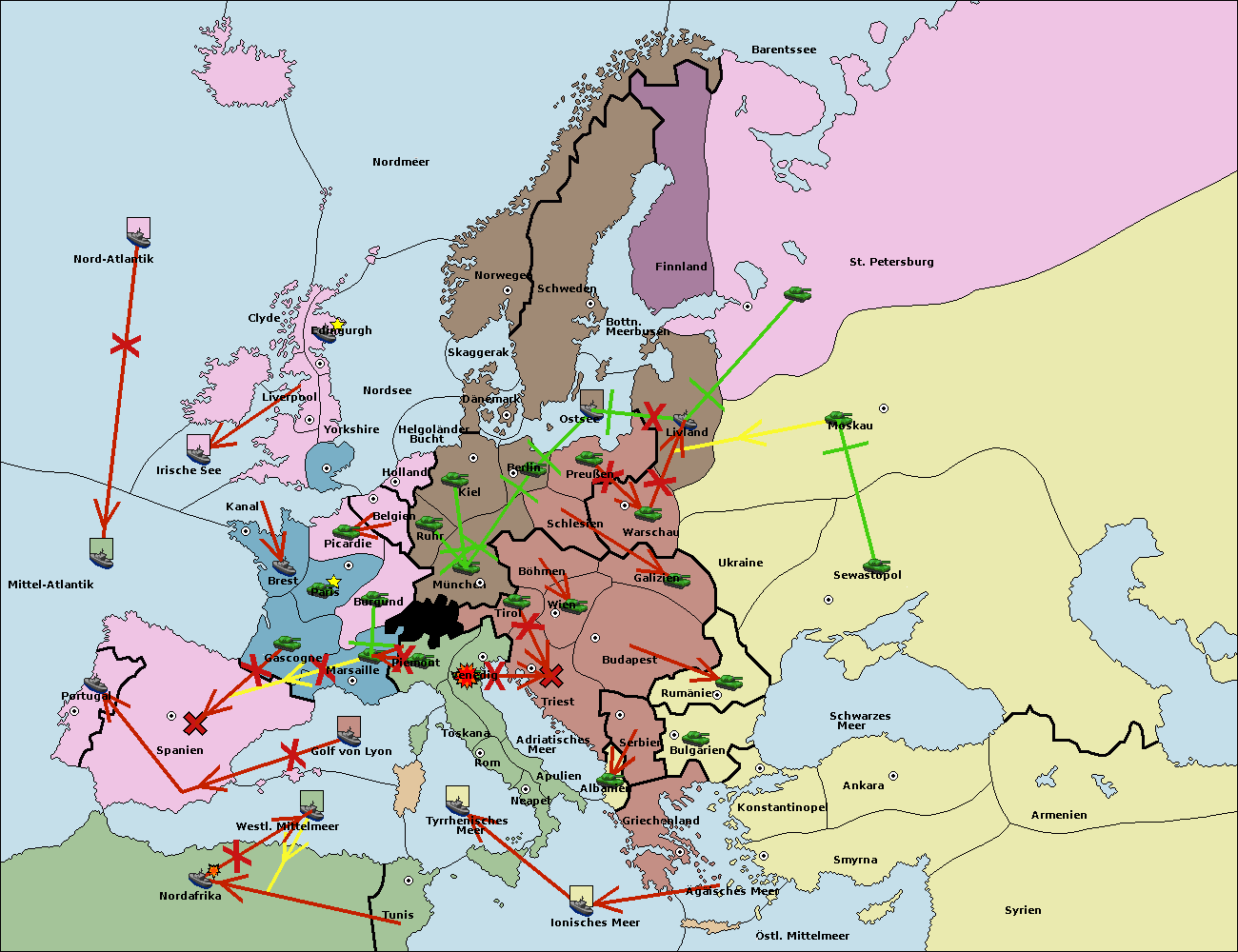 • Die Flotte in Nord Afrika move nach Tunis. (gescheitert)