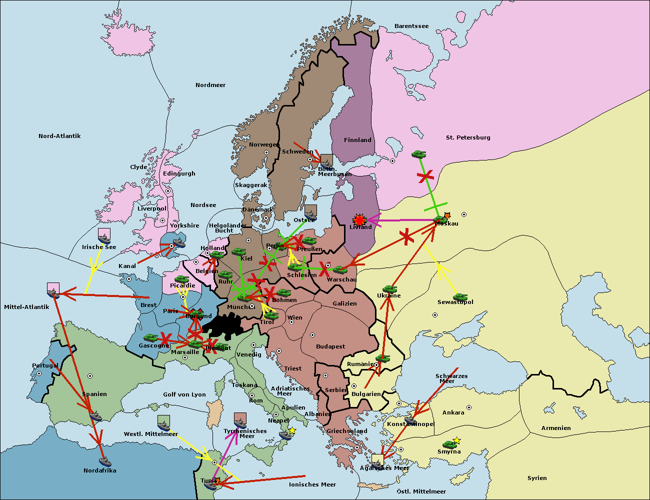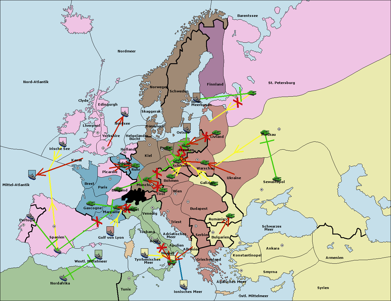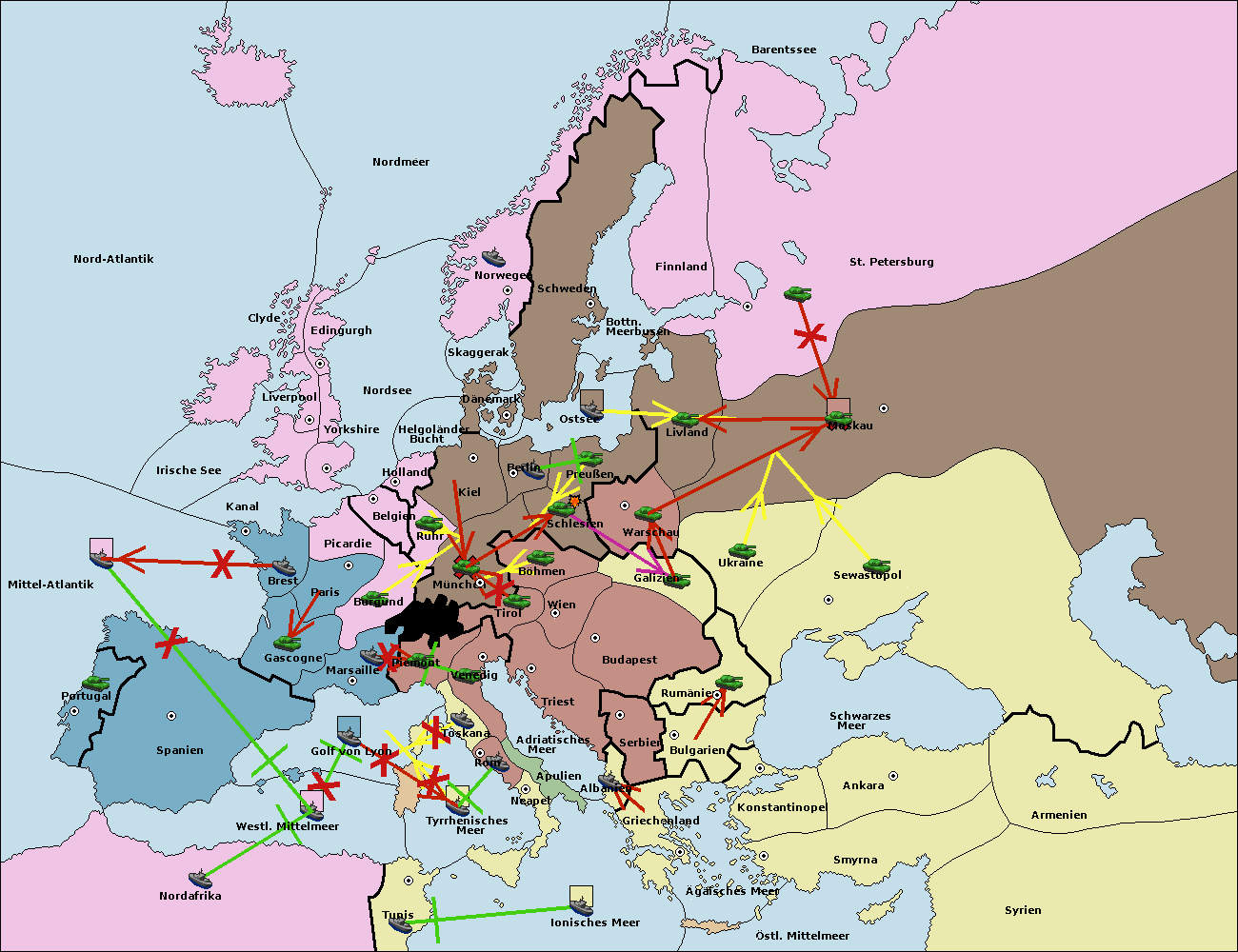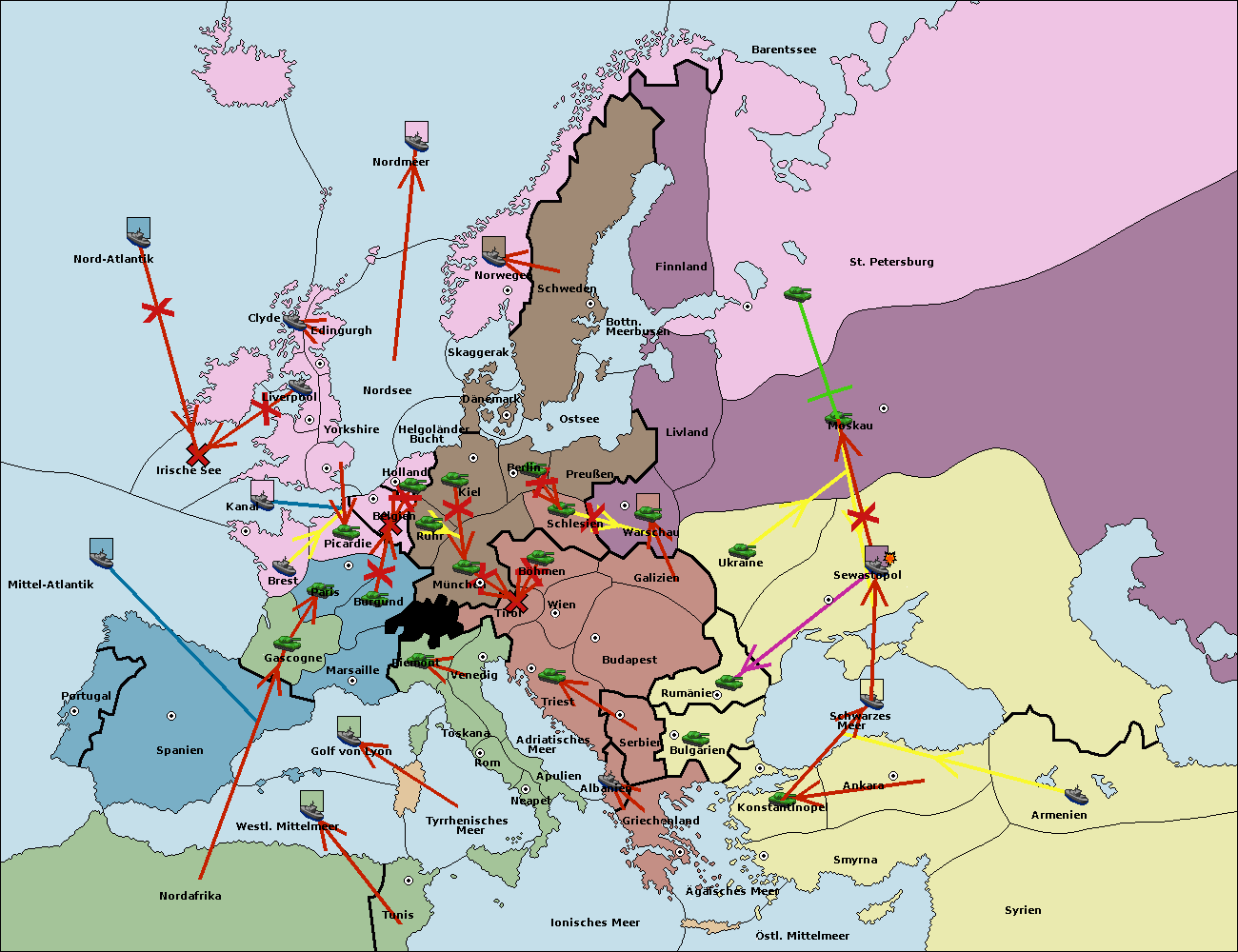 • Die Flotte in Nord Afrika move nach Tunis. (gescheitert)